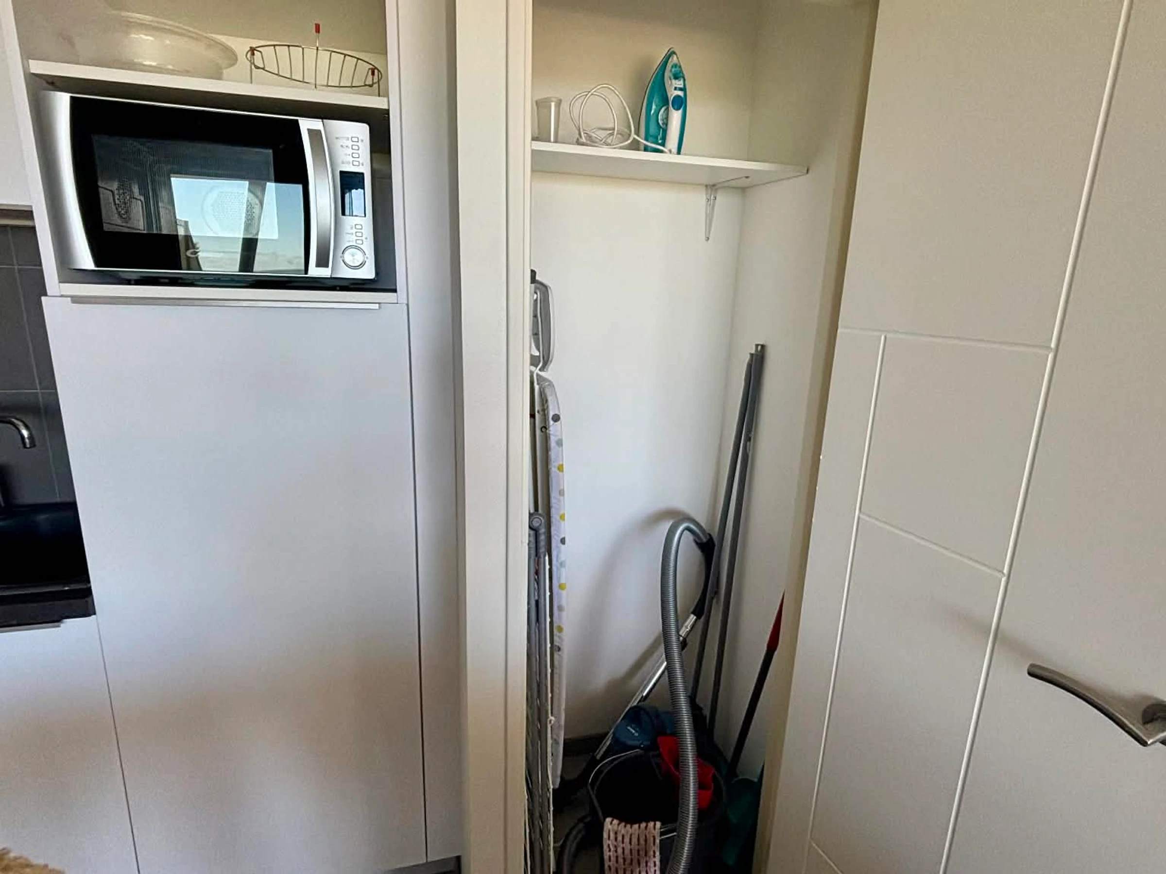 Placard de rangement avec nécessaire pour le nettoyage (aspirateur, serpillère, balais),