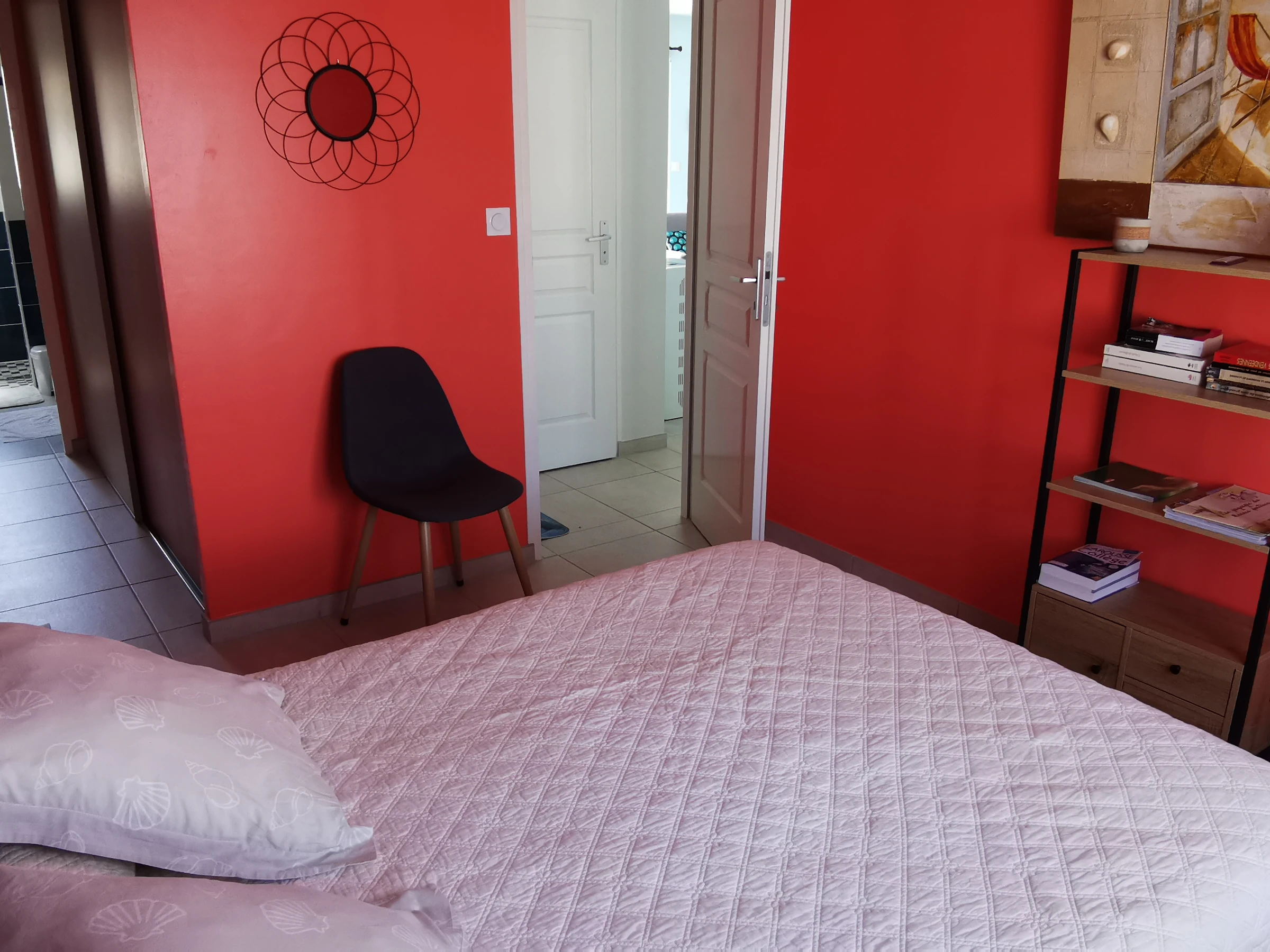 Une suite parentale avec 1 lit de 140 avec salle d'eau.