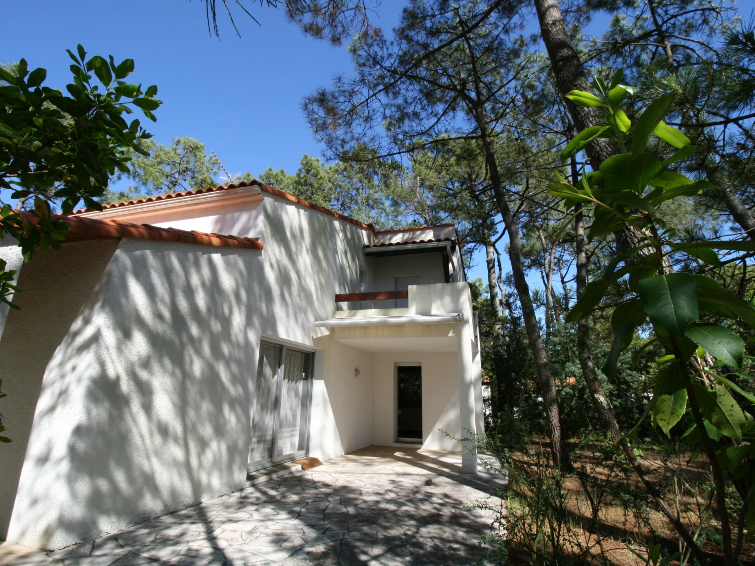 Dans un quartier résidentiel et boisé de pins à proximité de la plage.