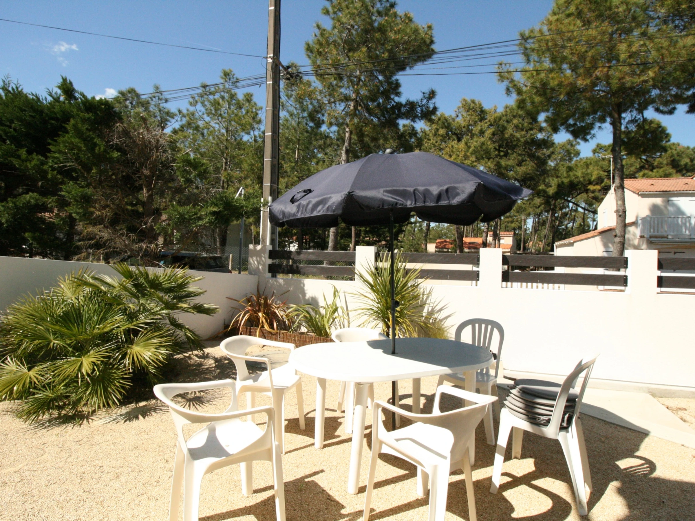 LA TRANCHE SUR MER, La Grière, un appartement au rez de chaussée d'une villa coté rue. L'appartement profite d'une terrasse privative bien agencée et entretenue, avec salon de jardin et transats. Une pièce principale avec coin cuisine et salon, 1 chambre avec 2 lits de 0.90 et 1 chambre avec 1 lit 180 cm. (oreillers grande taille). 1 salle d'eau avec douche, lavabo. 1 wc. Un emplacement voiture privatif devant le garage.