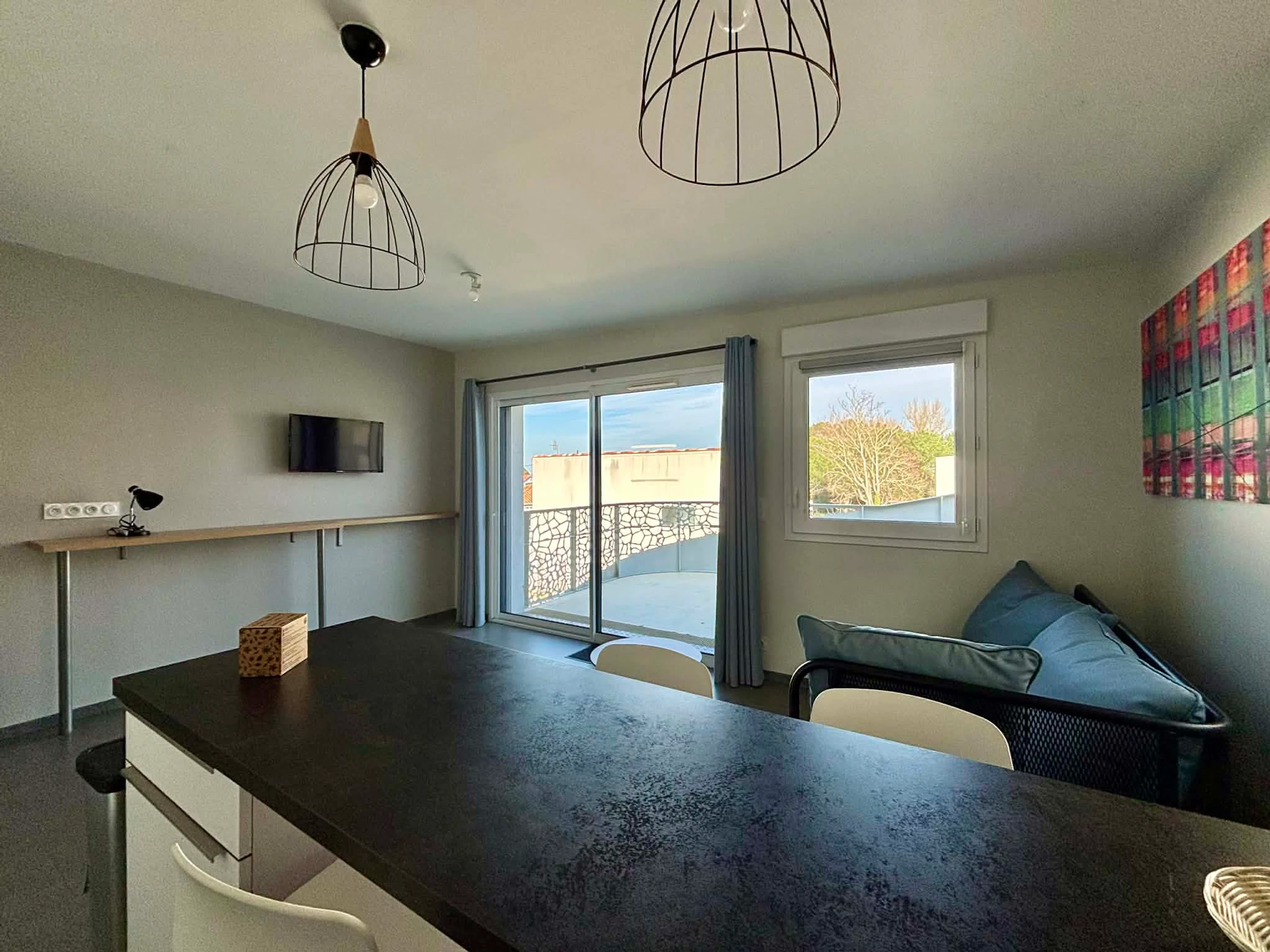 Salon/séjour avec îlot central, canapé convertible en 140, télévision écran plat,