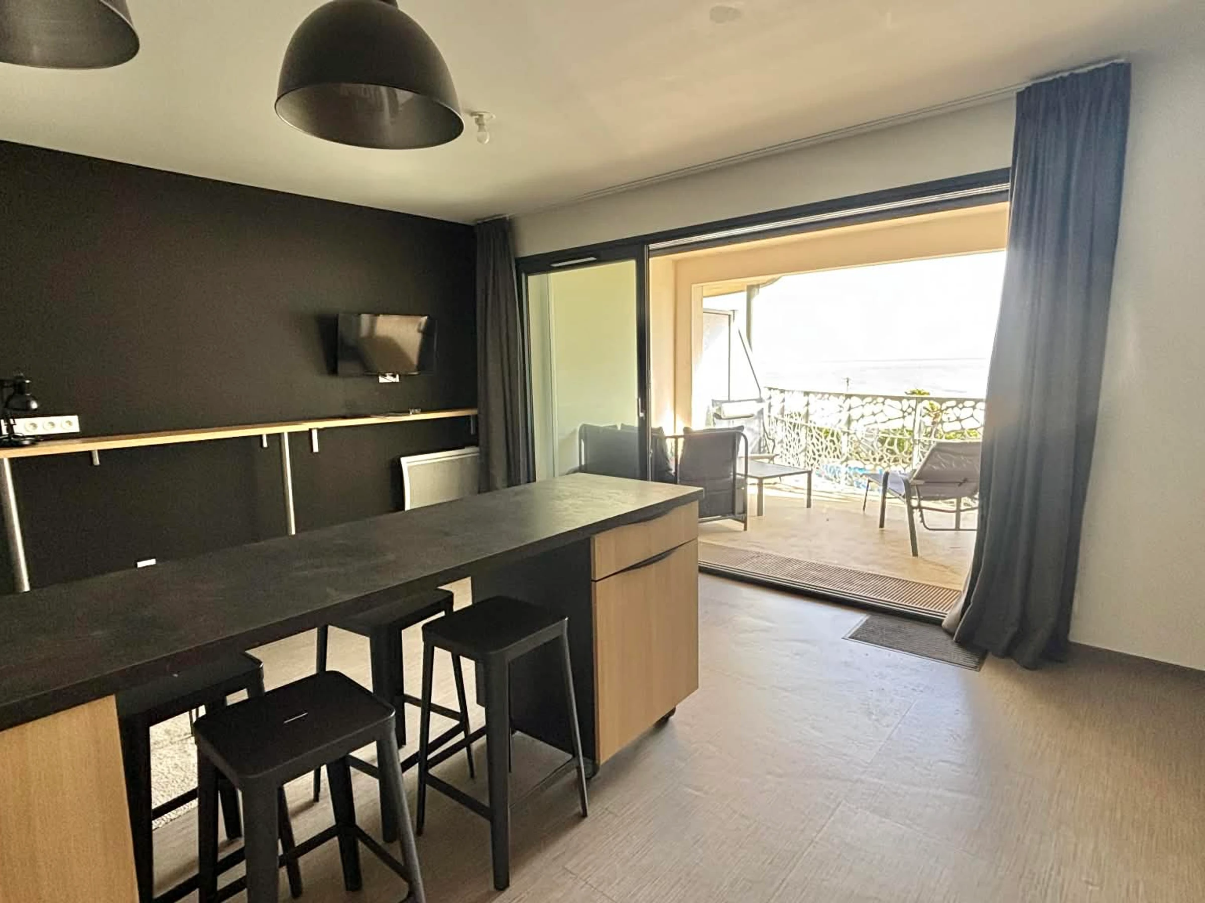 Salon/séjour avec îlot central, canapé convertible en 140, télévision écran plat,