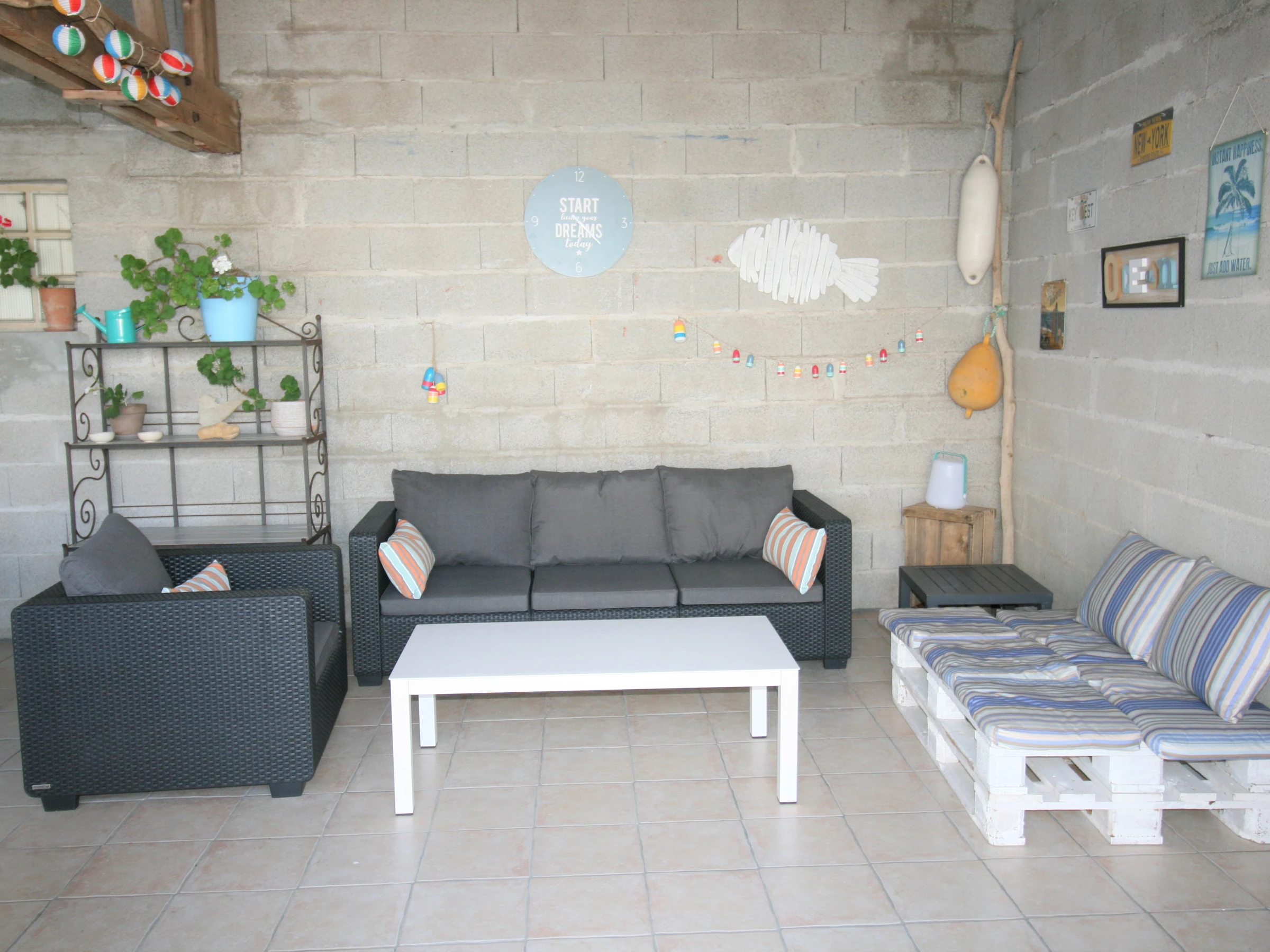 1 entrée avec son espace intimiste (télévison - canapé)1 cuisine - salle à manger donnant sur terrasse sud avec son salon de jardin et fauteuils , 1 chambre avec 1 lit 140 et rangements, 1 chambre avec 1 lit 160/200 avec 1 armoire, 1 chambre avec 2 lits 0,80/200 et rangements. 1 arrière cuisine,1 salle d'eau avec lavabo et douche, 1 wc séparé, En rez de jardin, 1 préau avec salon de jardin, fauteuils, plancha pour des moments de convivialité.
