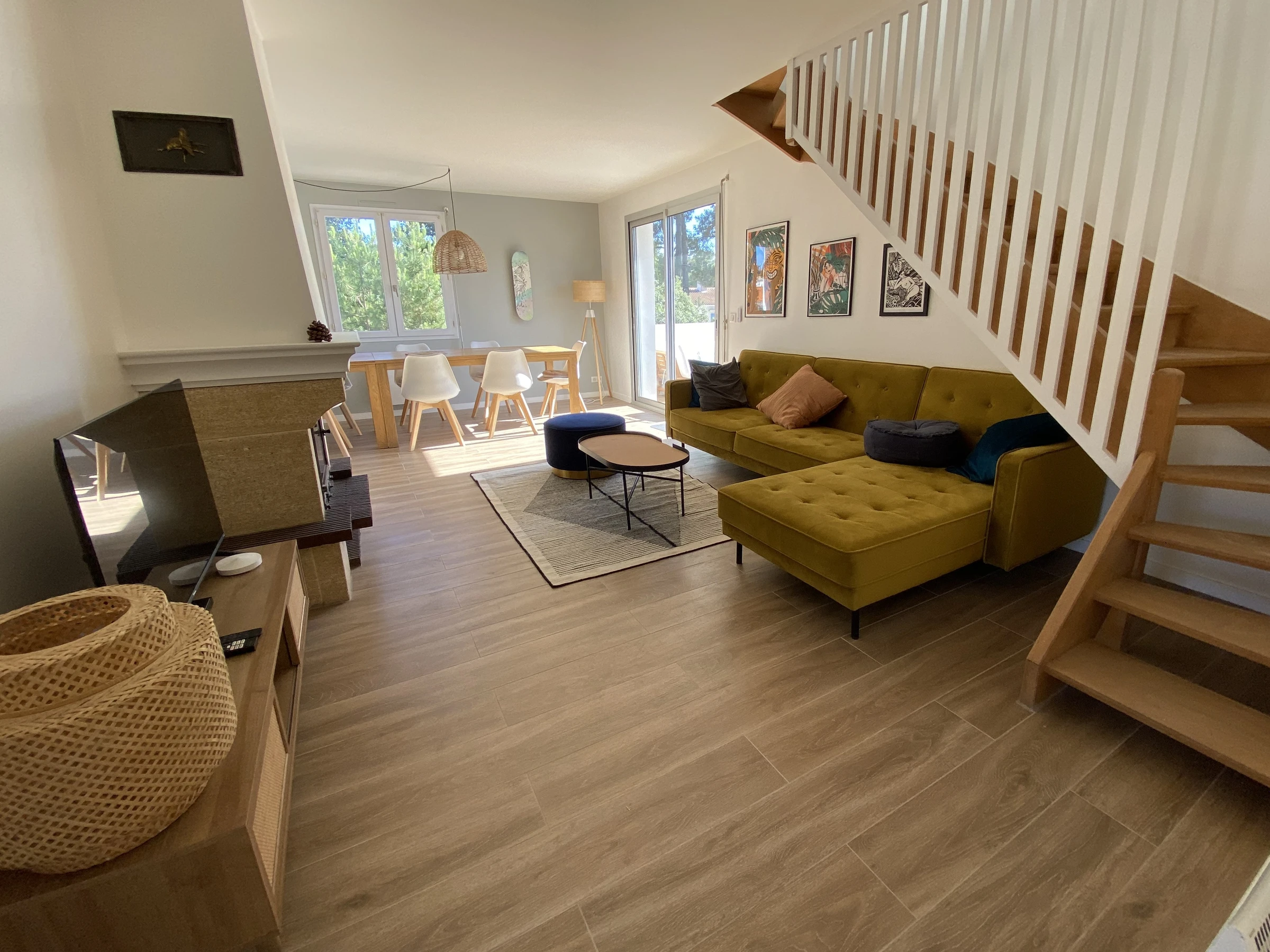 Situation : Idéale pour les amoureux de la nature, et des activités nautiques à 500 m de la plage environ , 2700 m du centre ville et des commerces.