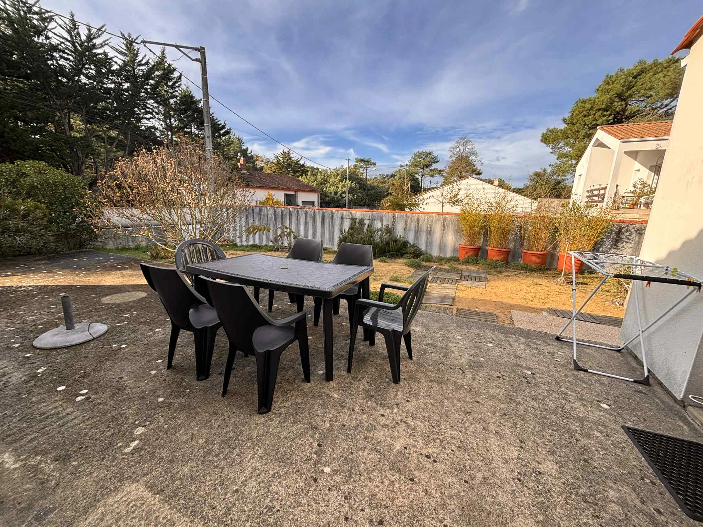 Terrasse avec mobilier de jardin.