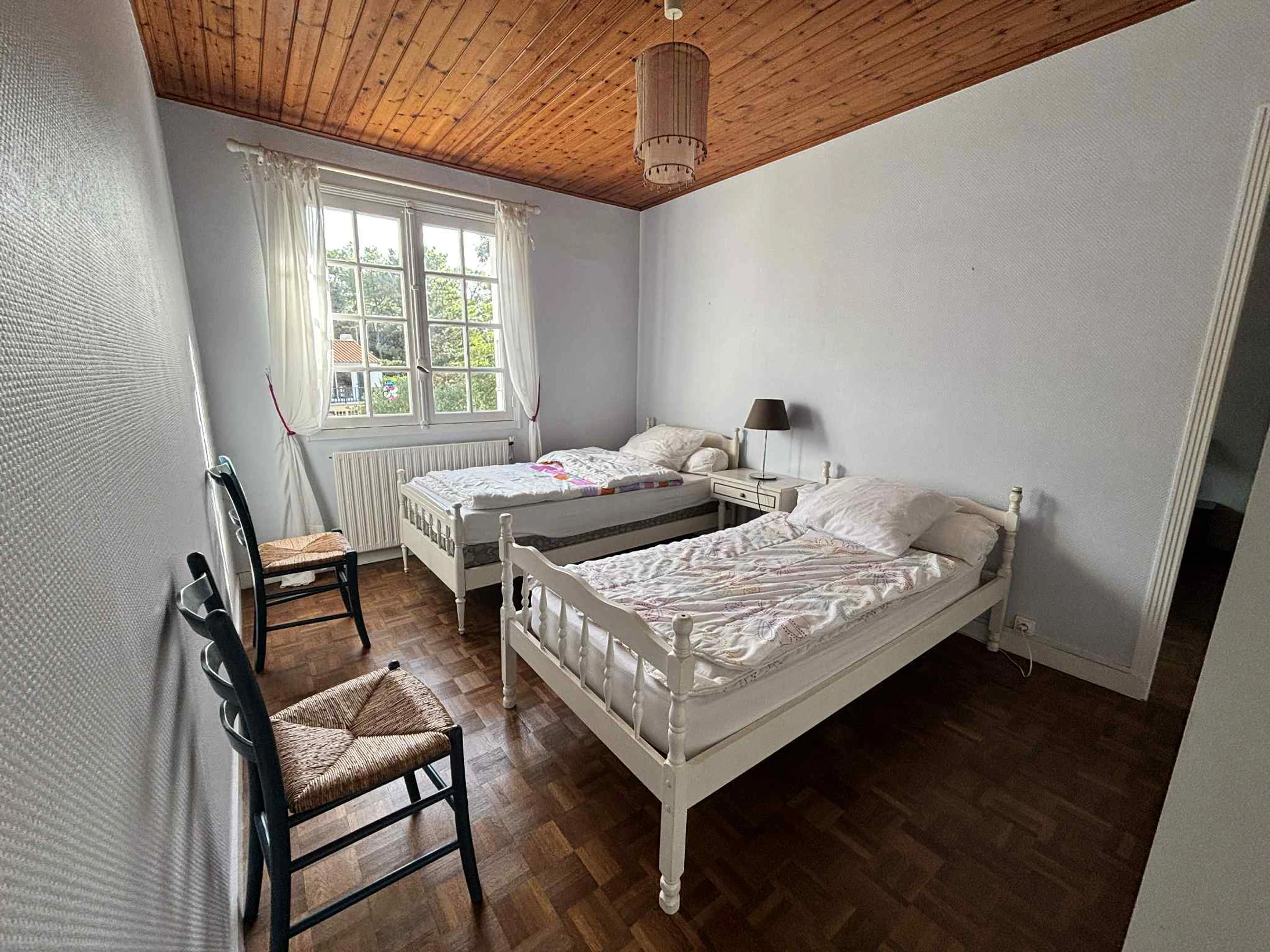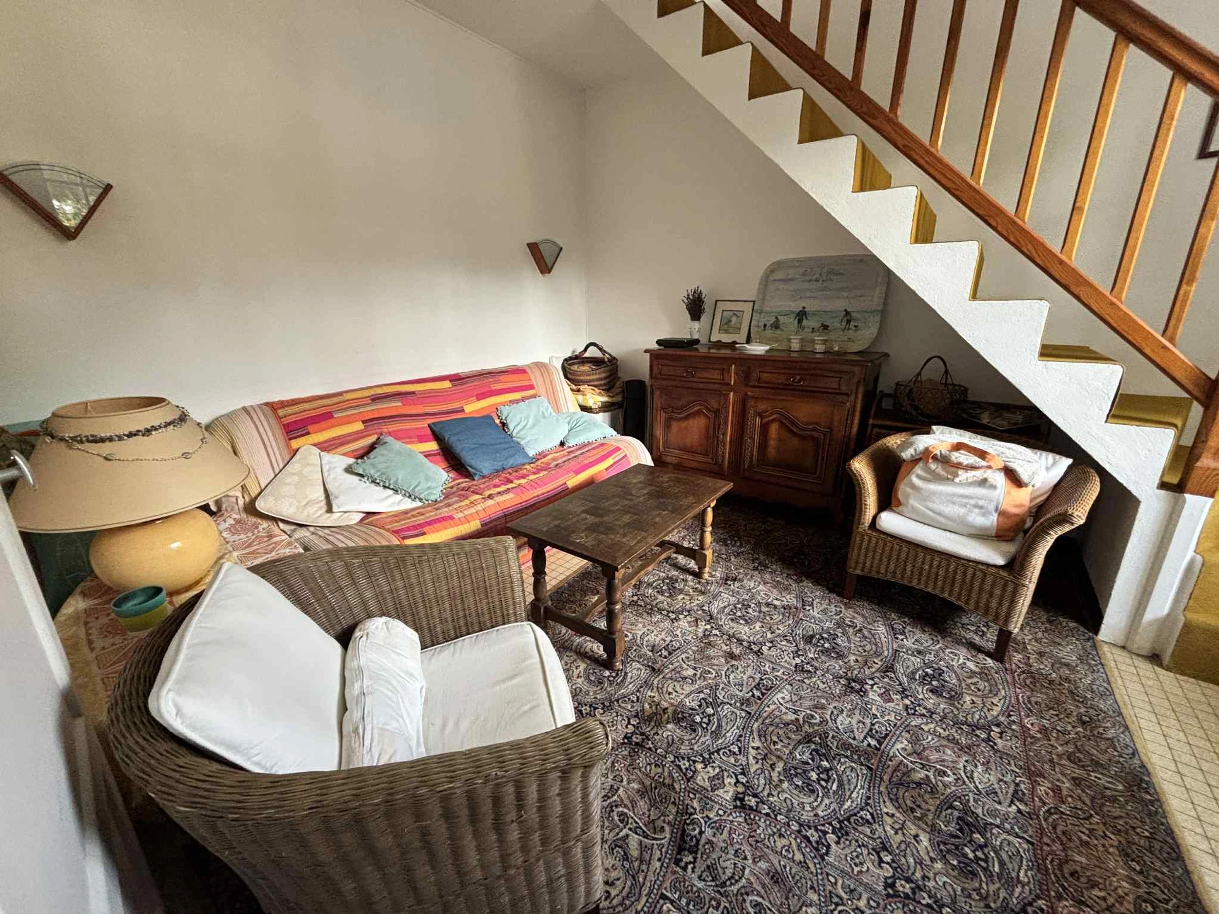 Maison de vacances sur 2 niveaux : au RDC Cuisine avec coin repas aménagée et équipée (réfrigérateur-congélateur, 4 feux gaz, four, micro-onde), un salon avec TV, une salle d'eau traversante (douche, lavabo, WC), 1 chambre avec 1 lit de 140, un débarras avec Lave-linge et accès à un patio, 1 WC. A l'étage 2 chambres communicantes l'une avec 1 lit 160 et l'autre avec 2 lits de 90. Animaux non admis. Wifi gratuite.
