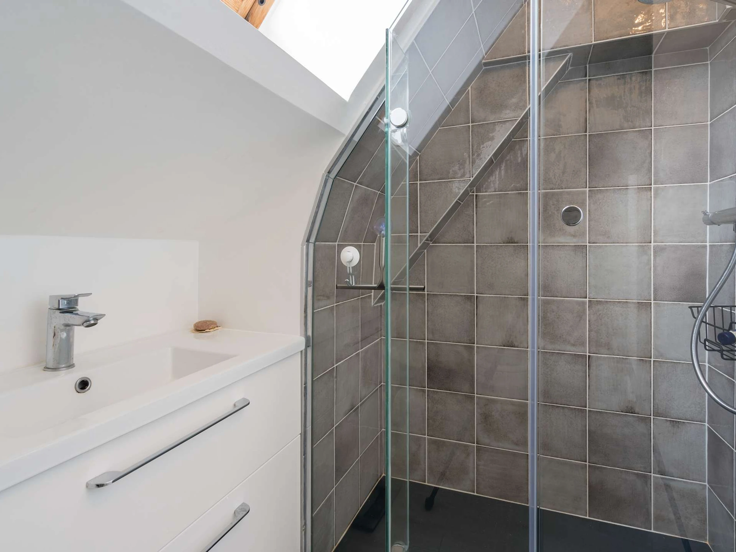 - Salle d'eau mansardée avec WC (lavabo sous velux)