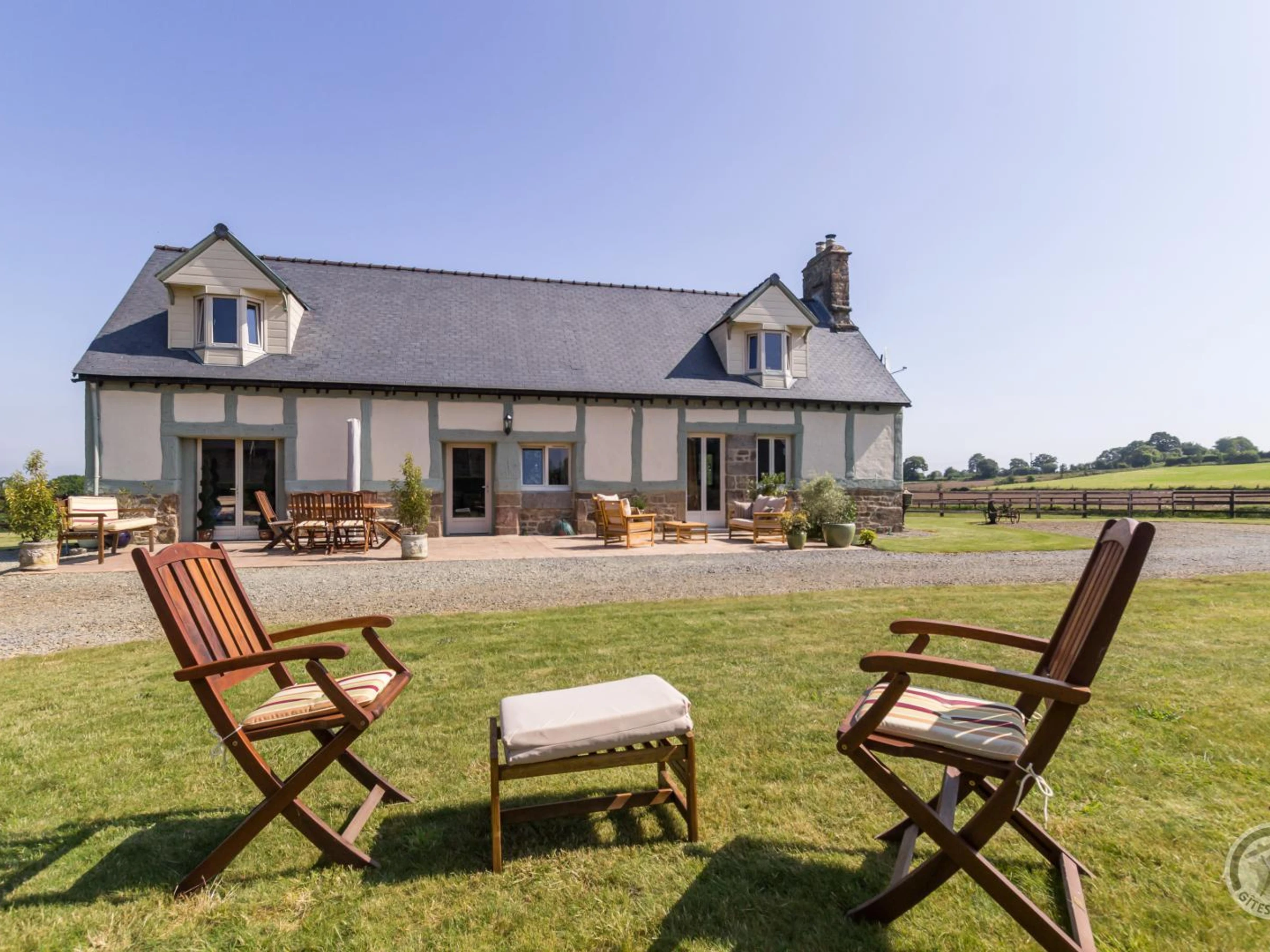 Maison indépendante. Séjour avec cuisine équipée (four, plaques vitro, lave-vaisselle, grand réfrigérateur avec congélation, micro-ondes, lave-linge). Salon avec poêle à bois (smart TV écran large, internet par box 4G). Chambre 1 (lit 140x190) avec salle d'eau et wc privés. A l'étage, chambre 2 (lit 140x190), salle d'eau avec wc, chambre 3 (lit 140x190), palier mezzanine avec méridienne. Draps et linge de toilette fournis. Lits faits à l'arrivée. Service ménage inclus. Chauffage électrique en supplément. Terrain privé non clos. Large terrasse. Salons de jardin. Transats. Barbecue. Parking. Local annexe avec 3 vélos à disposition. Gîte non fumeur. En pleine nature et au bout d'une impasse, la propriété de Steve et Julie est une évasion verte. Passionnés de chevaux, c'est sur cette colline aux portes de la Baie du Mont St-Michel que ce couple britannique a choisi de s'installer. Ils ont aménagé un magnifique gîte à l'accent anglais. La cuisine au coeur de la maison est conviviale et les grandes chambres aux couleurs chatoyantes sont réconfortantes. Les vues offertes depuis l'étage sont magiques et vous aurez toujours un oeil sur vos voisins... les chevaux de sport des propriétaires. Vous pourrez vous détendre sur les 1500m² de jardin privé en profitant du nombreux mobilier extérieur et même descendre découvrir le plan d'eau plus en contrebas de la colline. A proximité, la cité de Villedieu les Poêles et son artisanat du cuivre sera une belle découverte à ne pas manquer.
