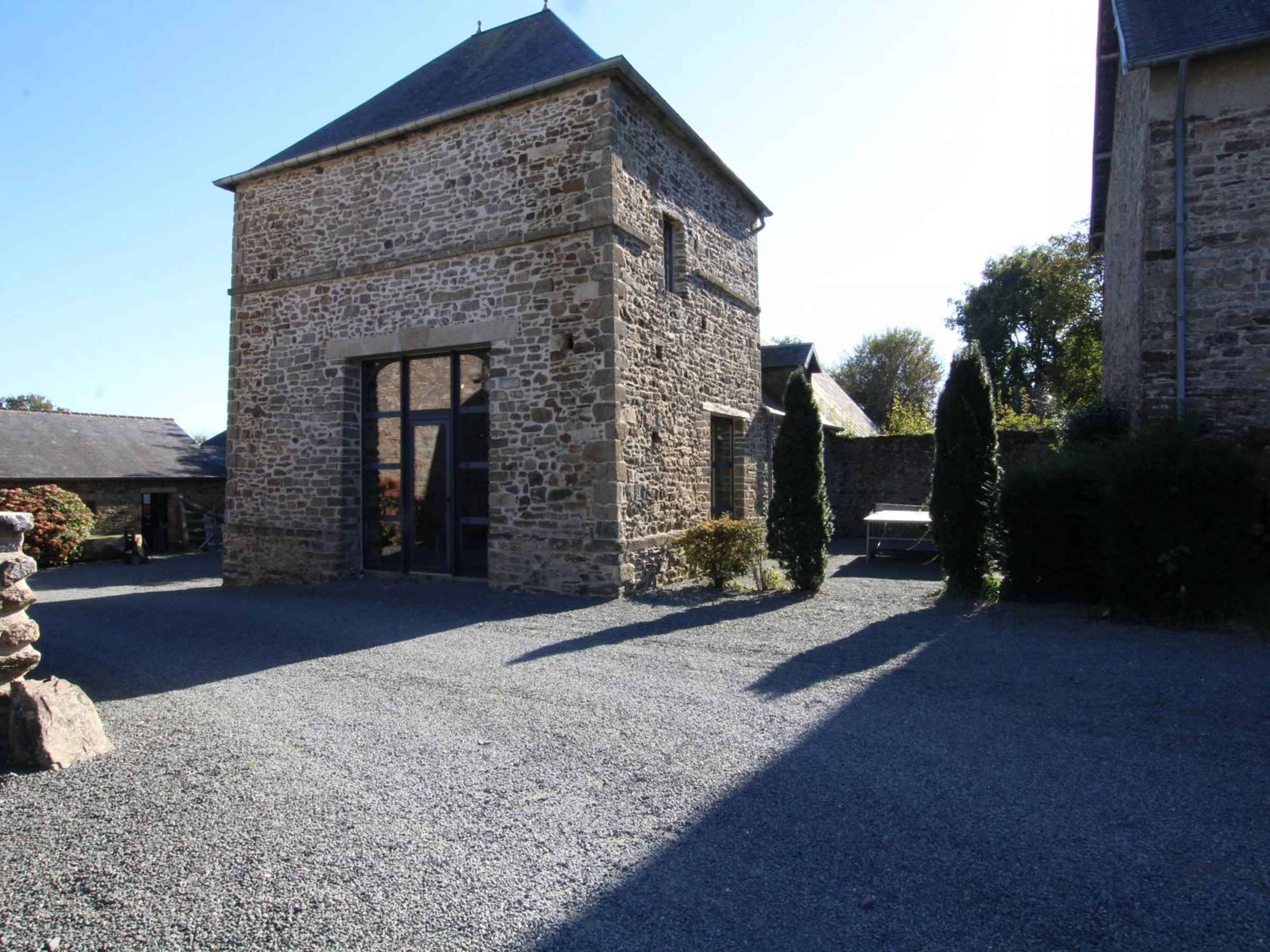 Maison indépendante. Séjour coin cuisine. Poêle à bois. TV et satellite. Internet (WIFI). Lave linge. Sèche linge. Lave vaisselle. Machine à café à capsules. 1er étage chambre 1 : 1 lit de 140x190 et salle d'eau privative. WC. 2ème étage chambre 2 : 2 lits de 130x190. Salle de bain (balnéo) privative. Équipement bébé. Chauffage électrique en supplément. Draps en location. Service ménage en supplément. Terrain commun non clos. Cour close privée. Salon de jardin. Transats. Barbecue. Ping-pong. Portique. Possibilité d'accéder sur demande à l'annexe avec équipements de sport (tapis de course, rameur, vélo elliptique, ...) et salle de jeux (billard, flipper, fléchettes et baby-foot). C'est un bel ensemble architectural du 17ème qui sera le cadre de votre séjour. A côté de la maison de maître des propriétaires, la charmante tour à la décoration soignée offre un hébergement atypique sur 3 niveaux. Salle de d'eau et de bain privée par chambre. Dans cette région partagée entre mer et bocage, les activités ne manquent pas! Petits animaux acceptés.