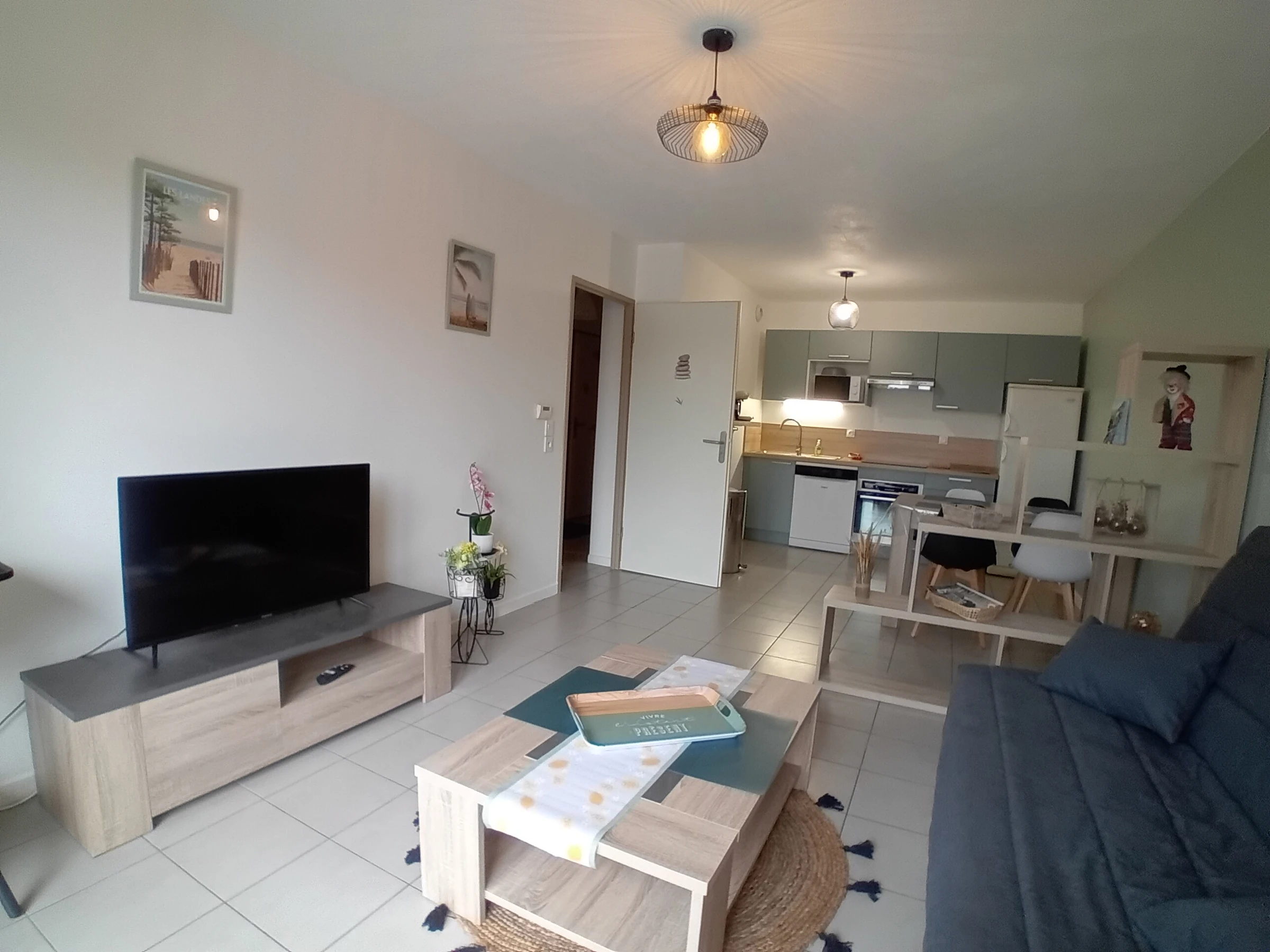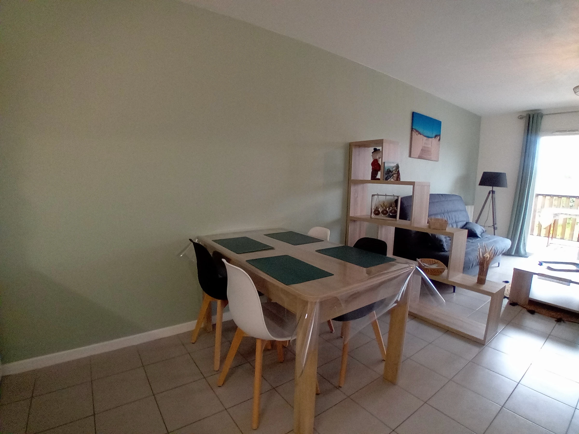 Venez profiter de ce chaleureux appartement de 47m², offrant de jolies prestations et un emplacement de choix à quelques mètres de la plage de Labenne Océan et de ses commerces. Situé au 1er étage d'une résidene, il se compose d'un salon séjour ouvert sur la terrasse extérieure, d'une cuisine moderne toute équipée (cafetière TASSIMO, micro onde, lave vaisselle...). L'espace nuit comprend 1 chambre équipée d'un lit en 160 et le canapé du salon convertible en 140. Le tout est complété par une salle d'eau spacieuse. Vous pourrez profiter d'une jolie terrasse de 11m² avec une table pour les repas. A votre disposition une place de parking privée à l'extérieur. Le ménage de fin de séjour est inclus dans le prix de la réservation. Vous ne pourrez qu'être charmés par cet hébergement idéal pour des vacances en famille ou entre amis. A régler avant votre arrivée : taxe de séjour et caution logement par carte bancaire uniquement. Services en Option à prévoir avant l'arrivée :