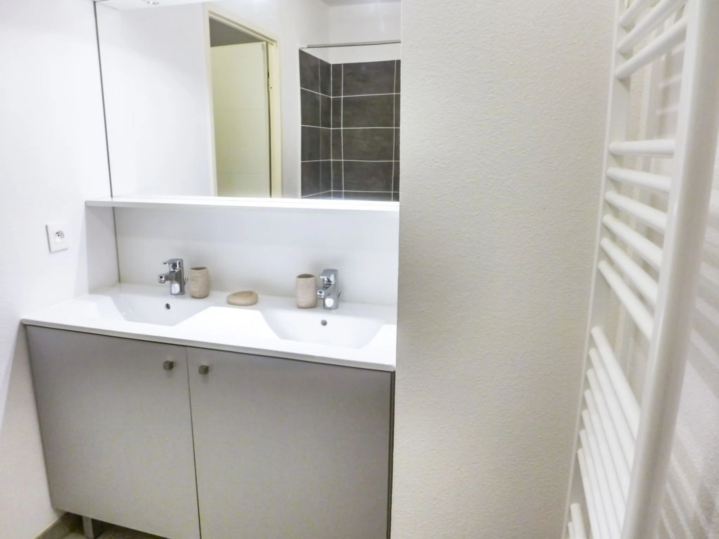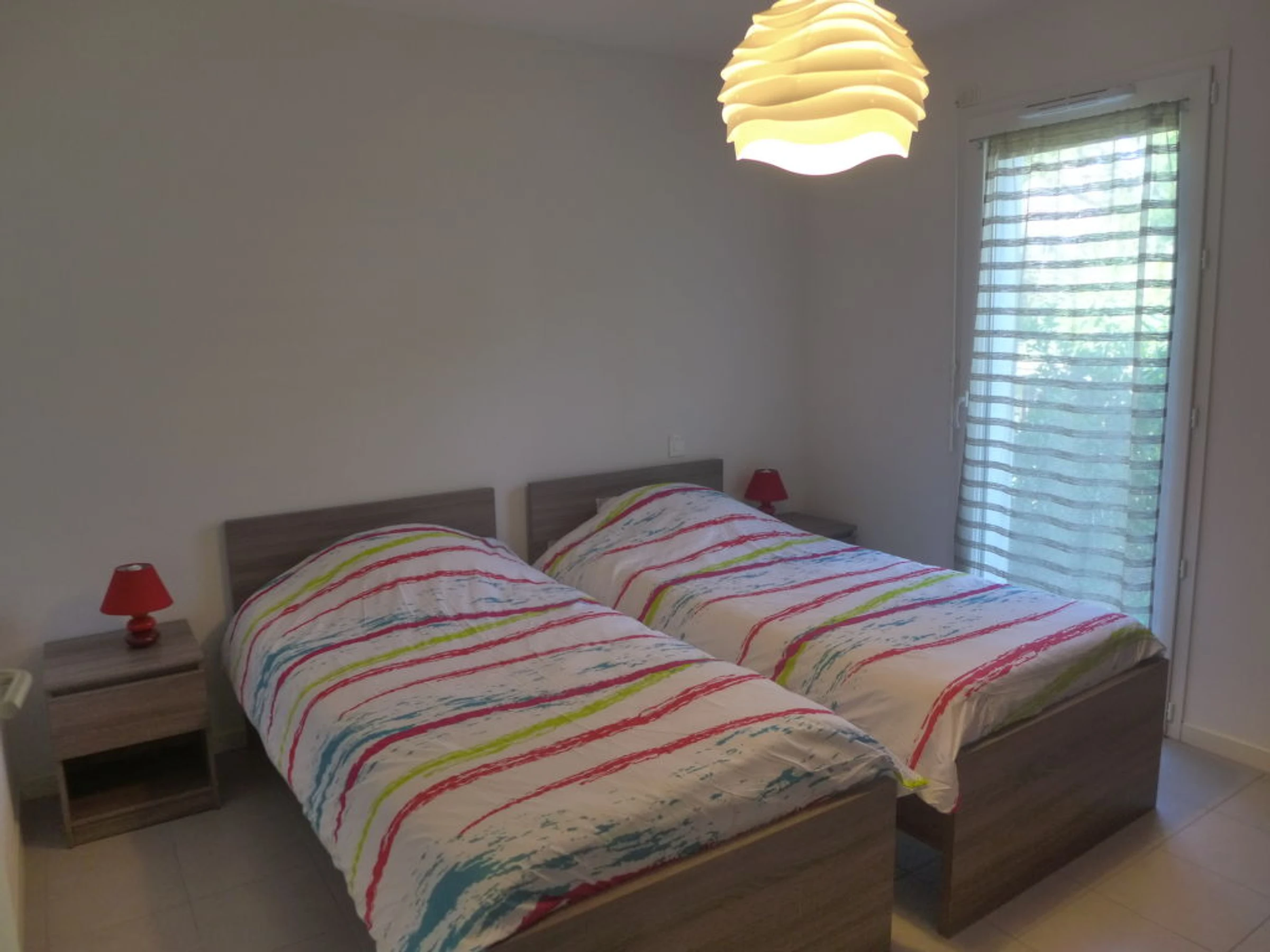 Apt 3 pièces 63 m2, au rez-de-chaussée. Aménagement confortable et agréable: séjour/salle à manger avec 1 divan-lit (110 cm, longueur 190 cm). Sortie sur la terrasse, sur le jardinet. 1 chambre avec 1 lit (140 cm, longueur 190 cm). 1 chambre avec 2 lits (90 cm, longueur 190 cm). Cuisine ouverte (4 plaques de cuisson, lave-vaisselle, four micro-ondes, cafetière électrique). Salle de bains, WC séparé, double vasque. Meubles de terrasse. A disposition: fer à repasser. Place de parking No 100. Veuillez noter: adapté(e) aux familles. Logement pour non fumeurs. Services supplémentaires obligatoires sur le site: Taxe de séjour 1.65EUR par personne et par jour, Taxe de séjour enfants (par personne et par jour), Taxe de séjour bébés (0-2) (par personne et par jour)