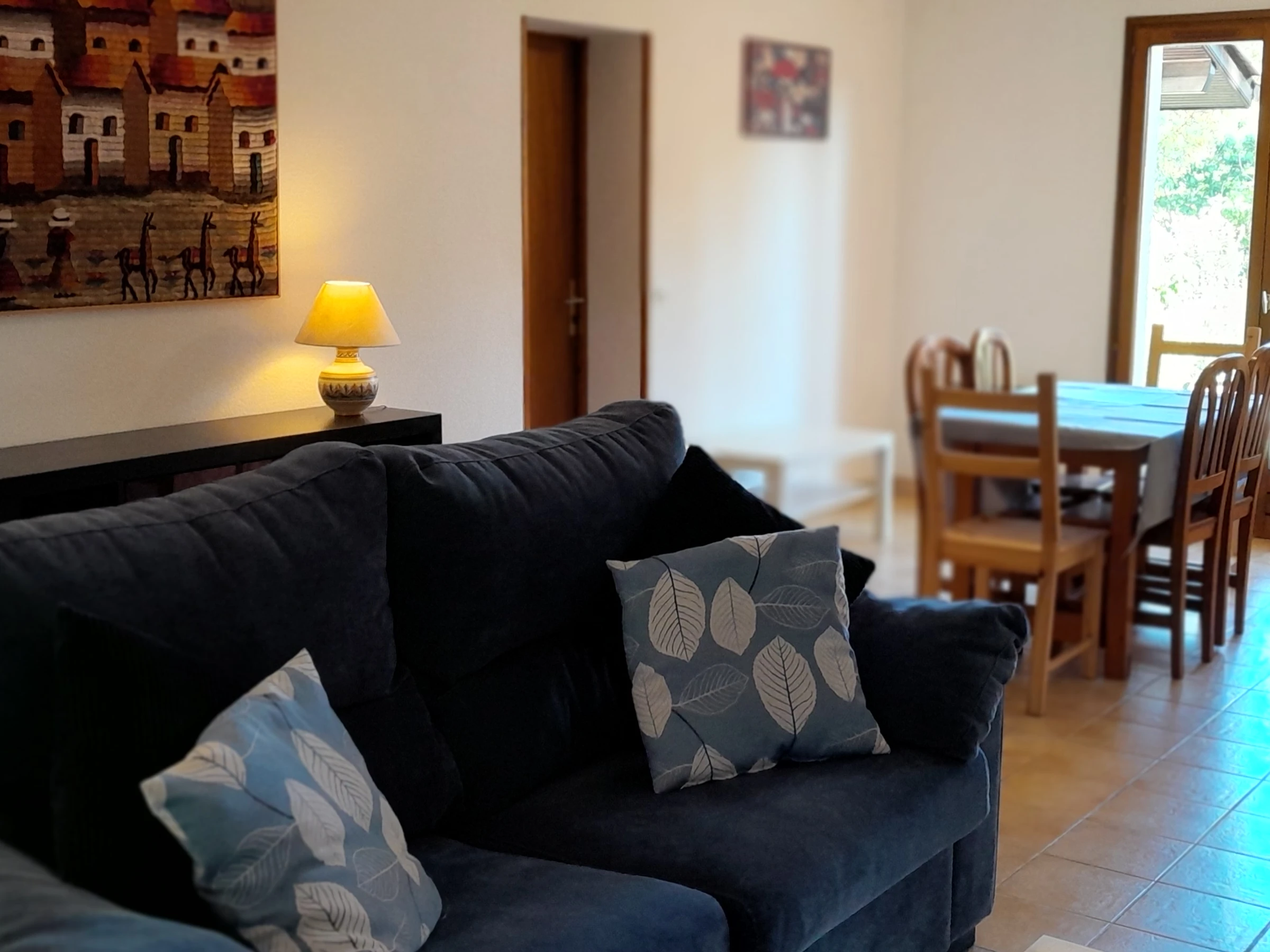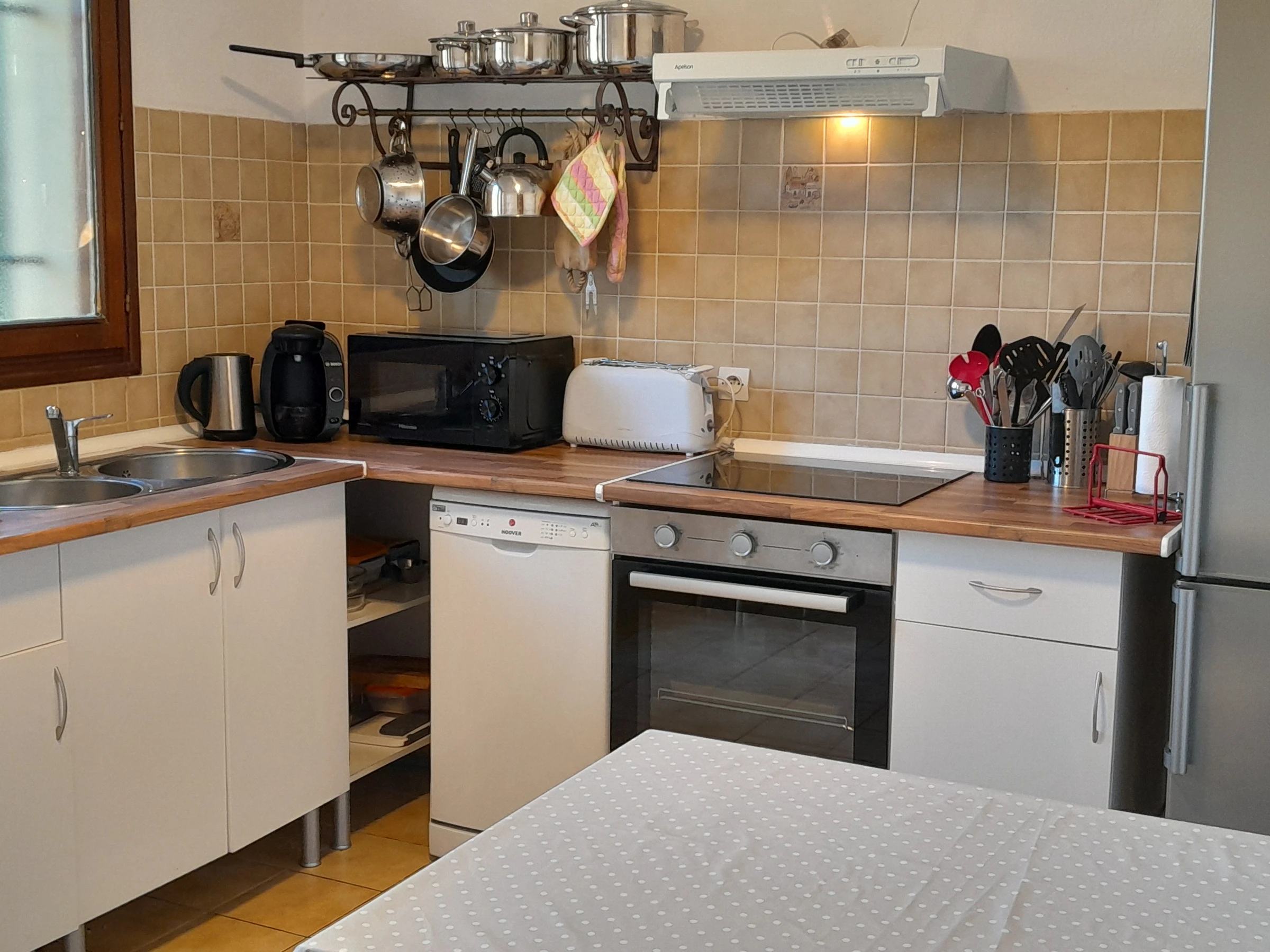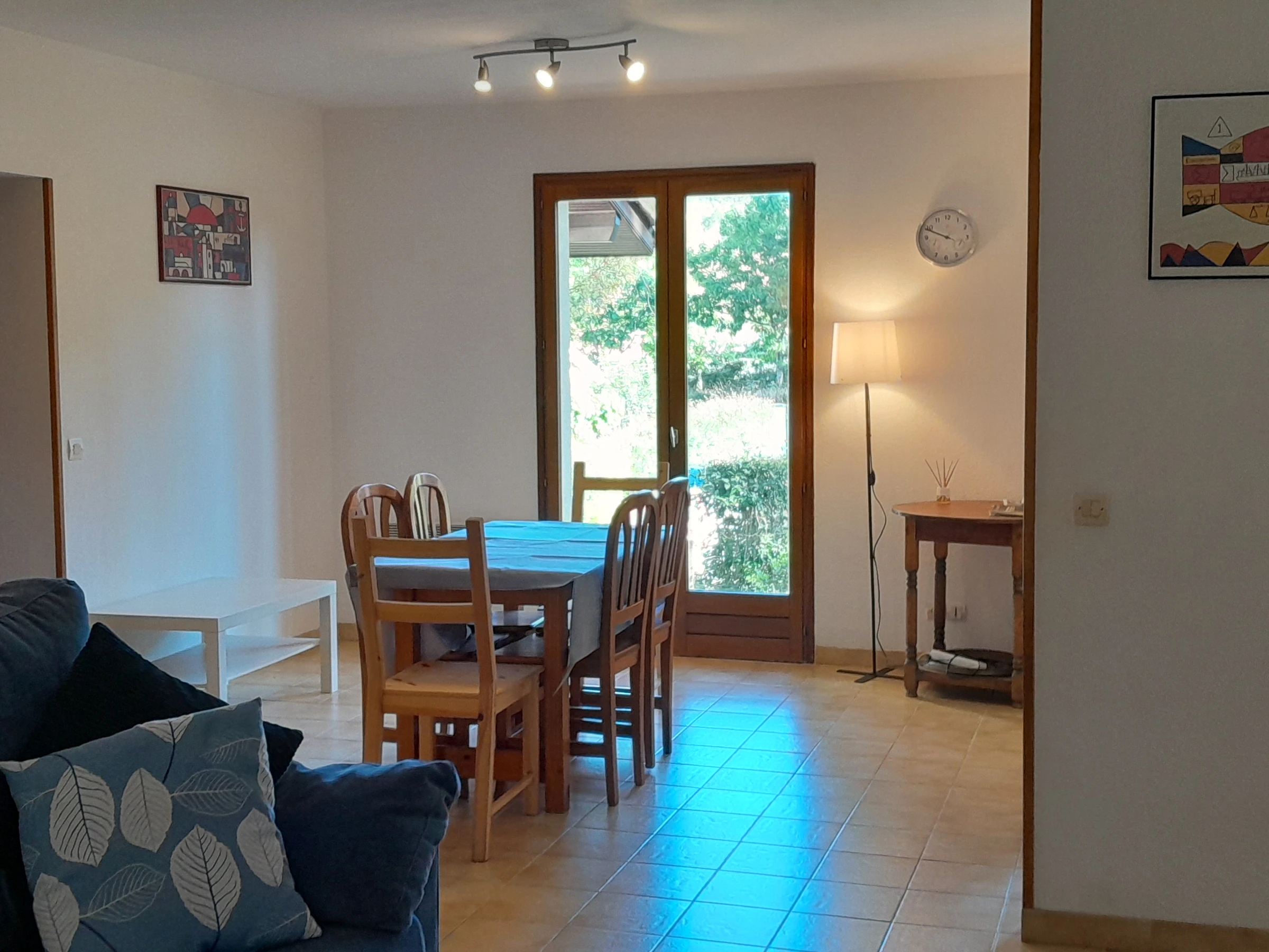Venez découvrir cette charmante maison individuelle, située dans un quartier calme et pouvant accueillir jusqu'à 6 personnes. De plain pied, la maison se compose d'une cuisine spacieuse toute équipée (lave-vaisselle, four, micro-onde, grille pain..) ouverte sur le jardin ainsi que d'un
