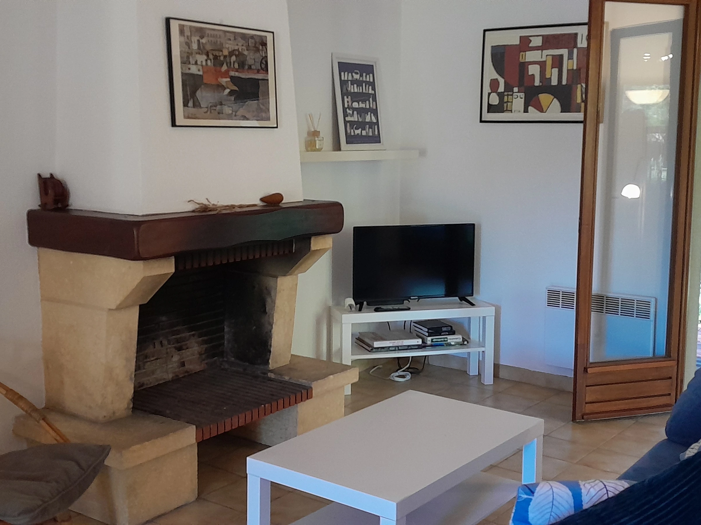 grand salon / séjour avec cheminée. Tout la maison est équipée de moustiquaire sur les fenêtres.