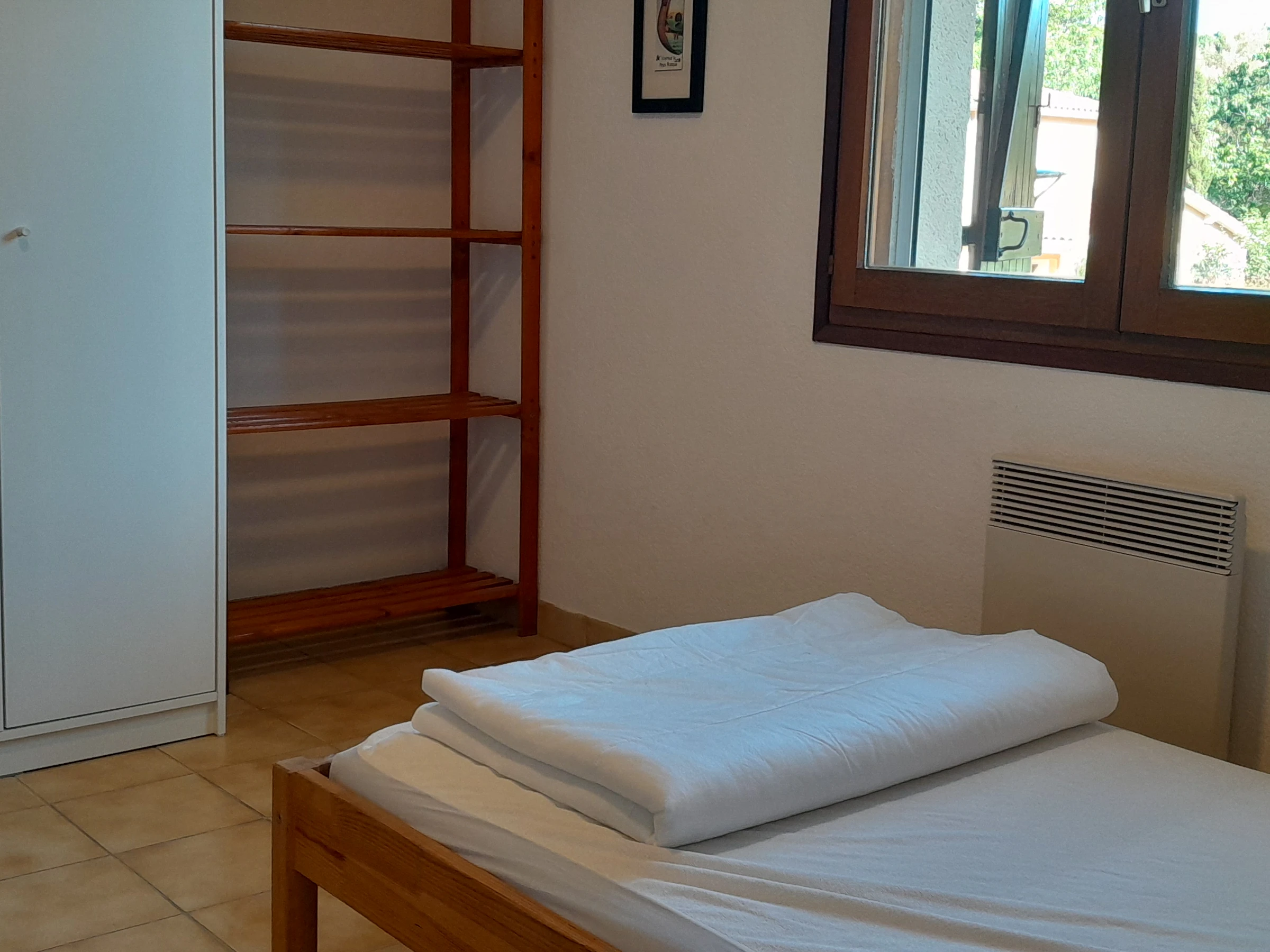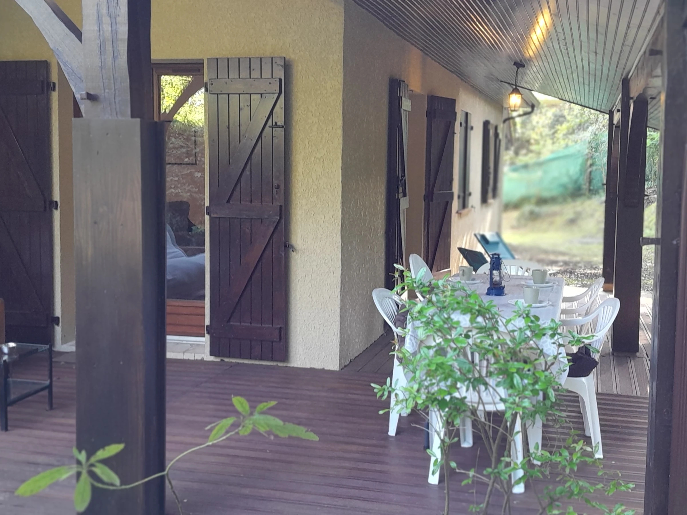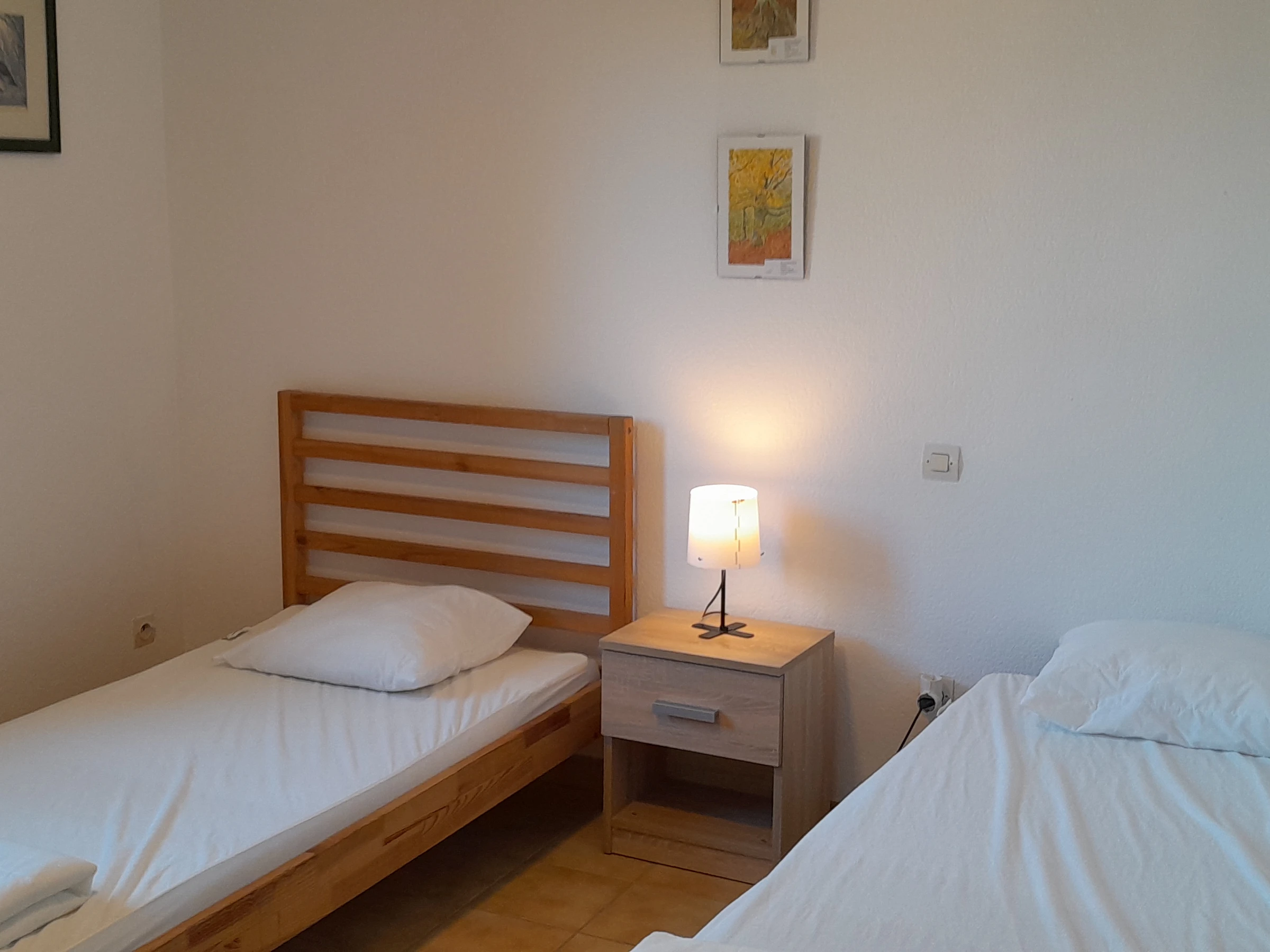 La partie nuit comprend 3 grandes chambres, deux sont équipées de 2 petits lits en 90 et la 3ième d'un lit en 140. Chaque chambre dispose de placards de rangements. Une salle de bain ainsi que des WC séparés viennent compléter l'ensemble. Vous pourrez également profiter d'un grand jardin arboré et ombragé qui fait tout le pourtour de la maison, ainsi que d'une belle terrasse aménagée avec une grande table pour les repas et des chaises longues.