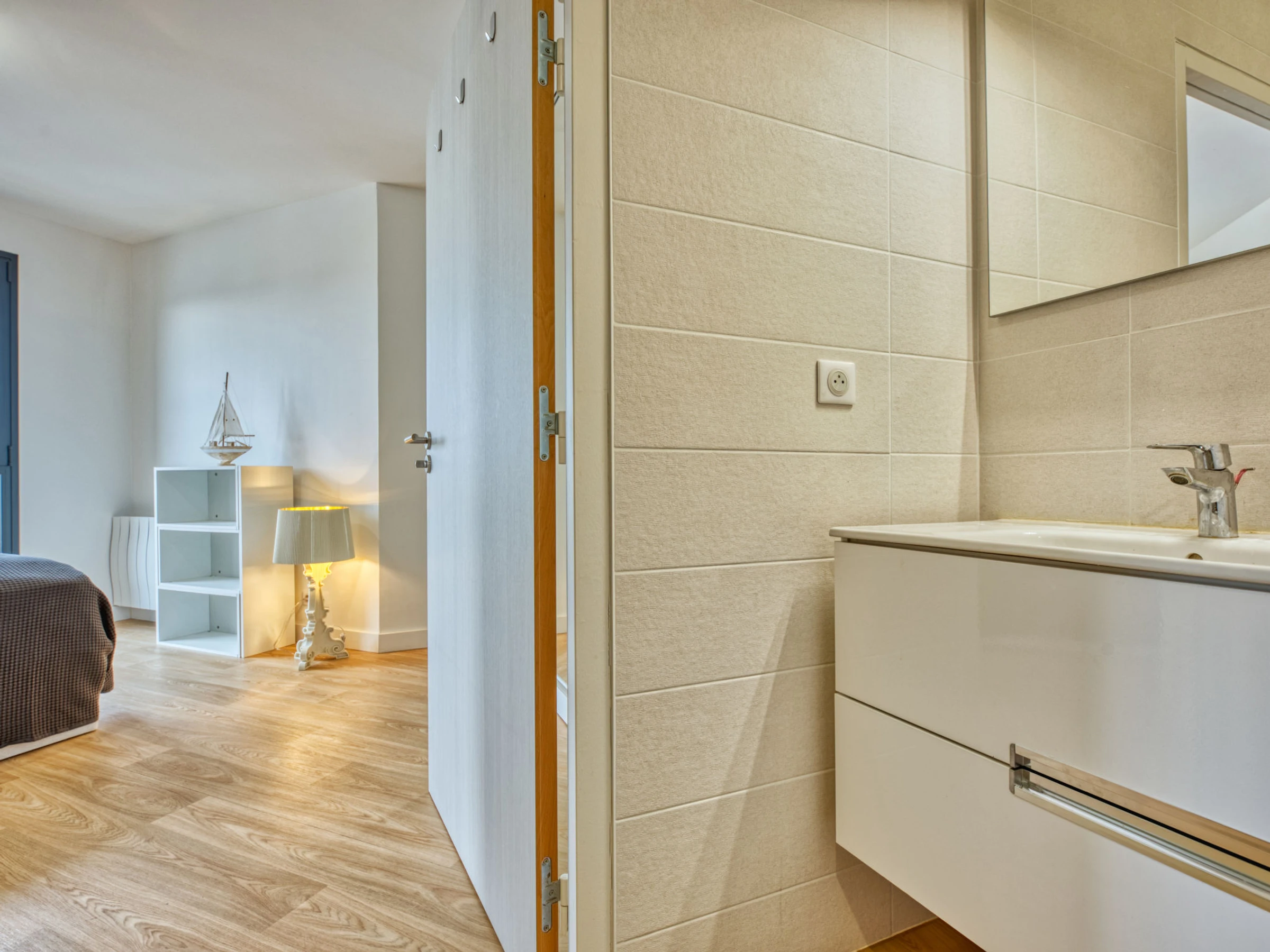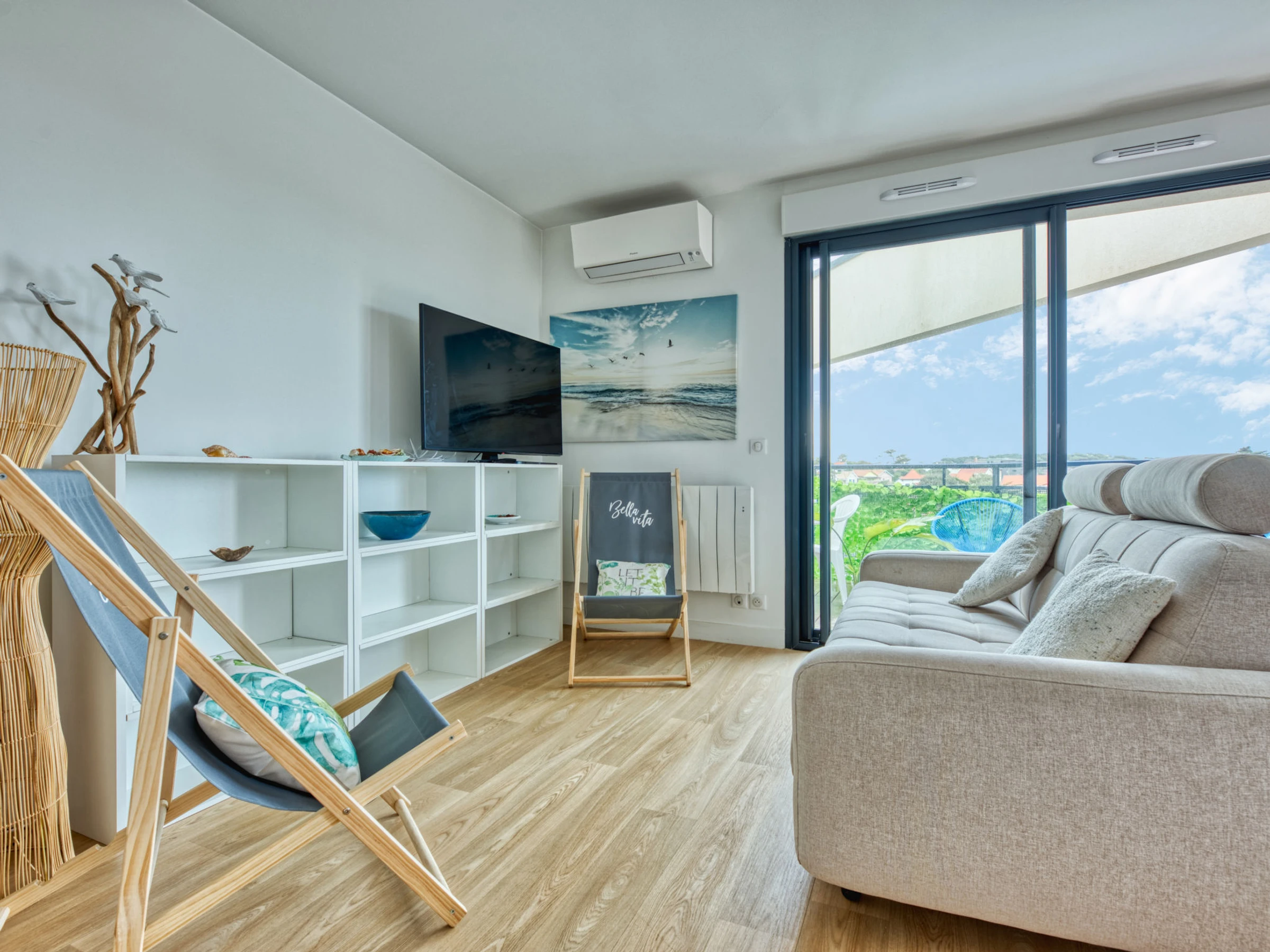 Apt 2 pièces 55 m2 au 3ème étage. Aménagement moderne: séjour/salle à manger avec 1 divan-lit double (140 cm, longueur 190 cm), TV (écran plat). Sortie sur le balcon. 1 chambre avec 1 grand-lit (140 cm, longueur 190 cm). Cuisine (four, lave-vaisselle, 4 plaques vitrocéramiques, grille-pain, bouilloire électrique, micro-ondes, cafetière électrique) avec table pour les repas. Douche/WC, WC séparé. Chauffage. Balcon 8 m2, situation sud. Mobilier de balcon, chaises longues. Vue latérale sur l'océan. A disposition: lave-linge, sèche-linge. Internet (Connexion WIFI, gratuit). Place de parking No 3B (cloturée). Veuillez noter: logement non-fumeur. Annonce d'un particulier (art 155, IV du CGI).