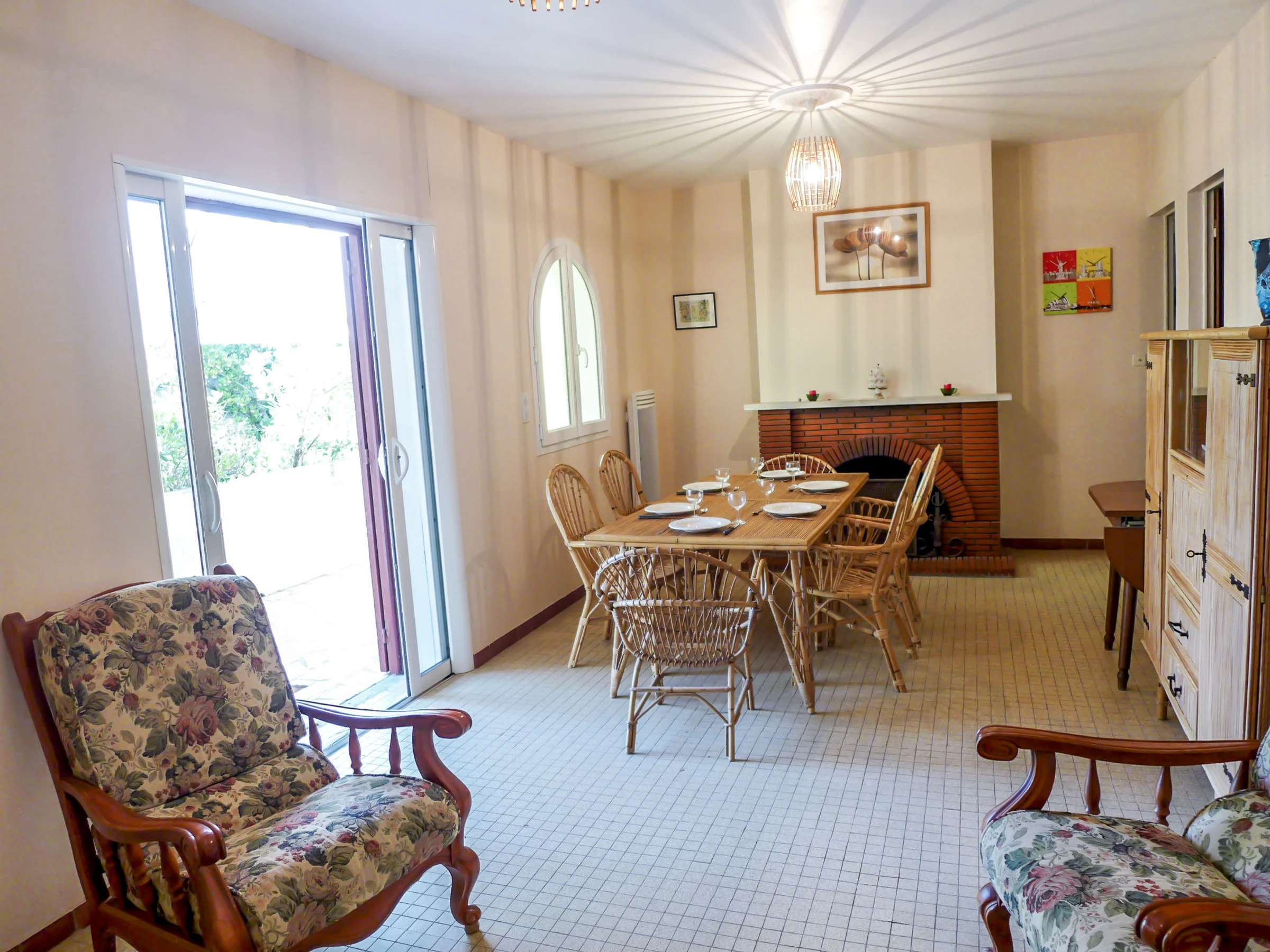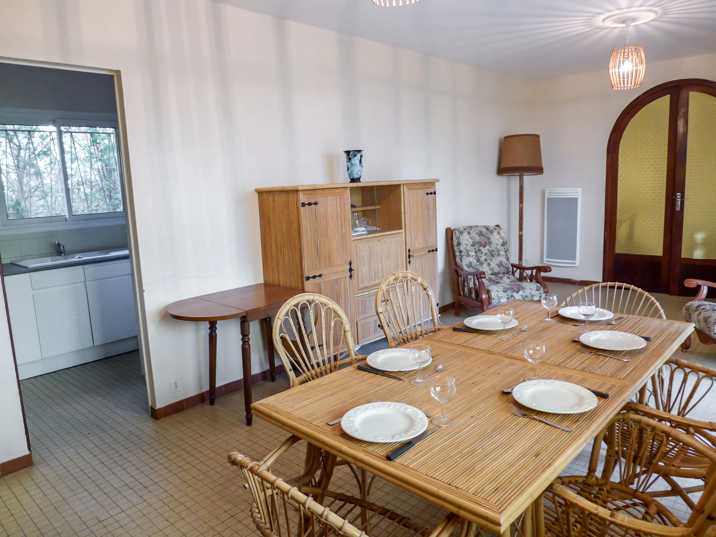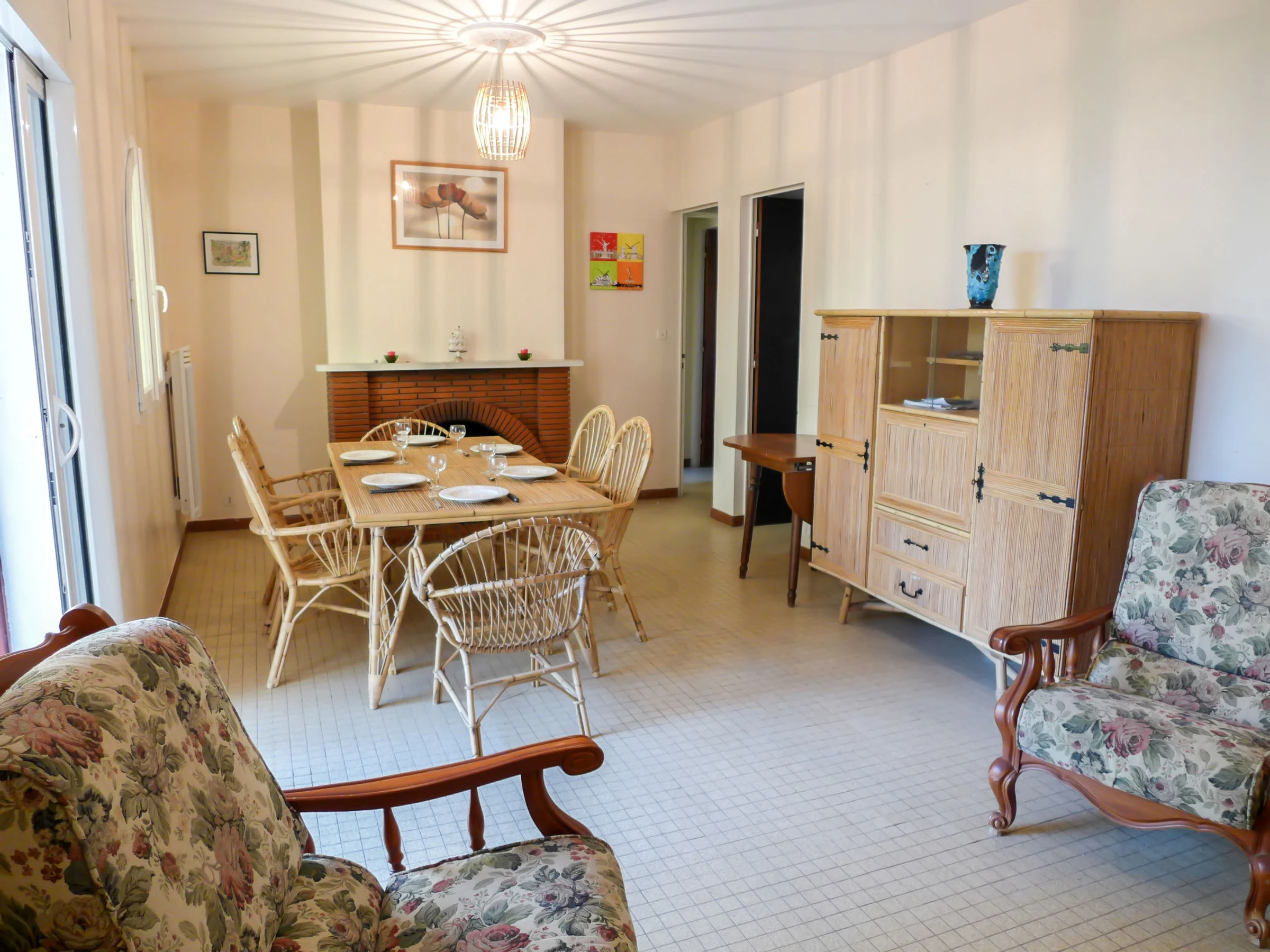 Maison 5 pièces 109 m2. Séjour avec TV. Salle à manger. 1 chambre avec 1 grand-lit (160 cm). 2 chambres, chaque chambre avec: 2 lits. Cuisine (4 plaques de cuisson, four, lave-vaisselle, cafetière électrique, Capsules pour machine à café (Nespresso) (NON INCLUSES)). Salle de bains, douche, 2 WC séparés. Chauffage électrique. Terrasse, situation ouest terrasse, situation est. Meubles de terrasse. A disposition: lave-linge. Internet (Connexion WIFI, en sus). Veuillez noter: logement non-fumeur. Détecteur de fumée.