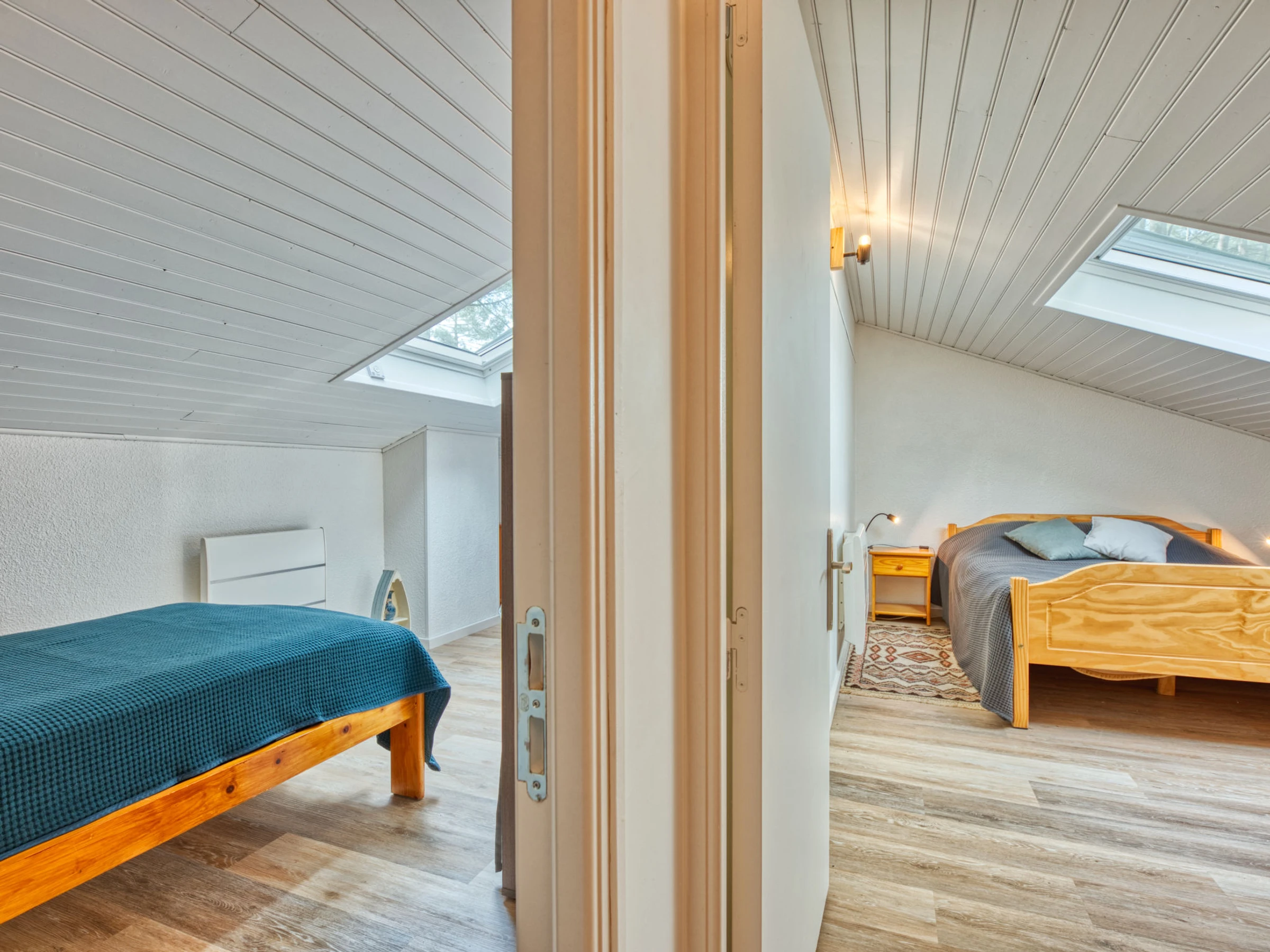 Maison jumelée 4 pièces 65 m2 sur 2 niveaux. Aménagement confortable: séjour/salle à manger avec TV (écran plat). Sortie sur la terrasse. 1 chambre avec 1 grand-lit (140 cm, longueur 190 cm). Cuisine (lave-vaisselle, 3 plaques vitrocéramiques, grille-pain, bouilloire électrique, micro-ondes, cafetière électrique, Capsules pour machine à café (Dolce gusto) (NON INCLUSES)). Douche, WC séparé. Chauffage électrique. À l'étage supérieur: 1 chambre avec 2 lits (90 cm, longueur 190 cm). 1 chambre avec 1 grand-lit (140 cm, longueur 190 cm). Terrasse 25 m2, situation sud, jardinet 250 m2. Meubles de terrasse, barbecue, chaises longues. A disposition: lave-linge. Internet (Connexion WIFI, gratuit). Place de parking. Veuillez noter: logement non-fumeur. Maximum 1 animal/ chien autorisé. Détecteur de fumée.