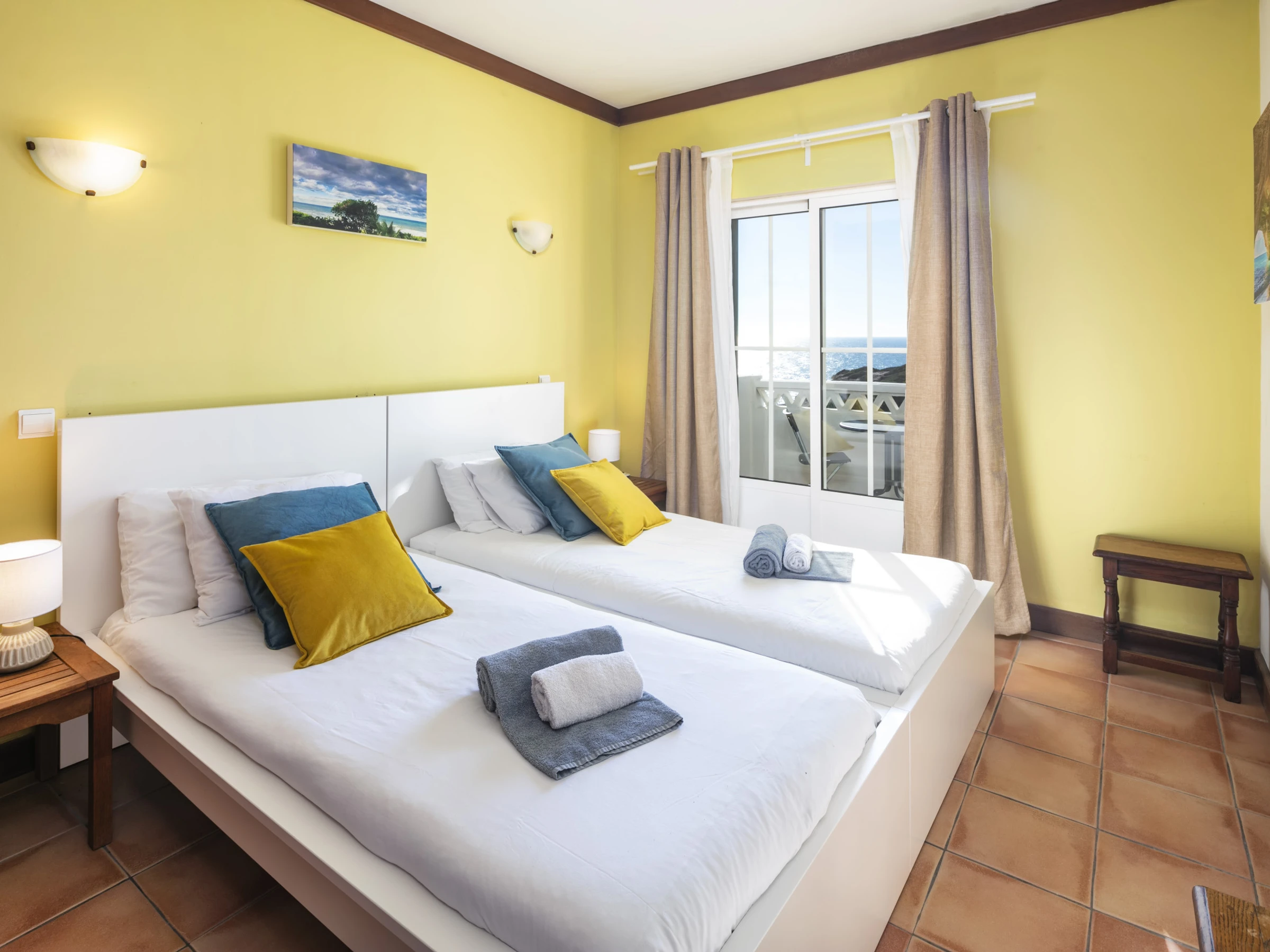 Logement de 85 m² confortable et moderne, situé en front de plage, avec vue sur la mer et la piscine.