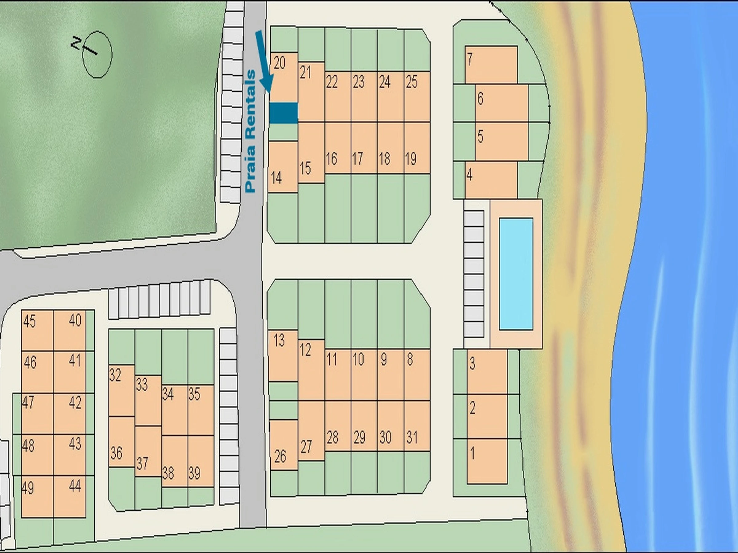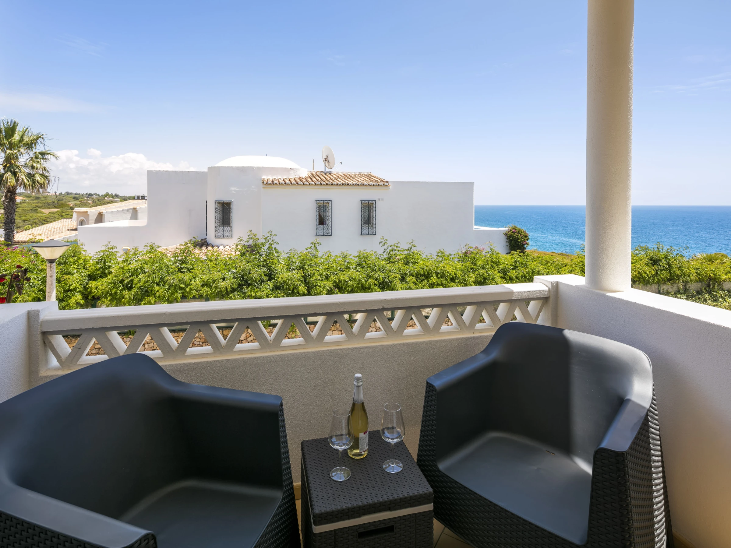Logement de 85 m² confortable et moderne, situé en front de plage, avec vue sur la mer et la piscine.