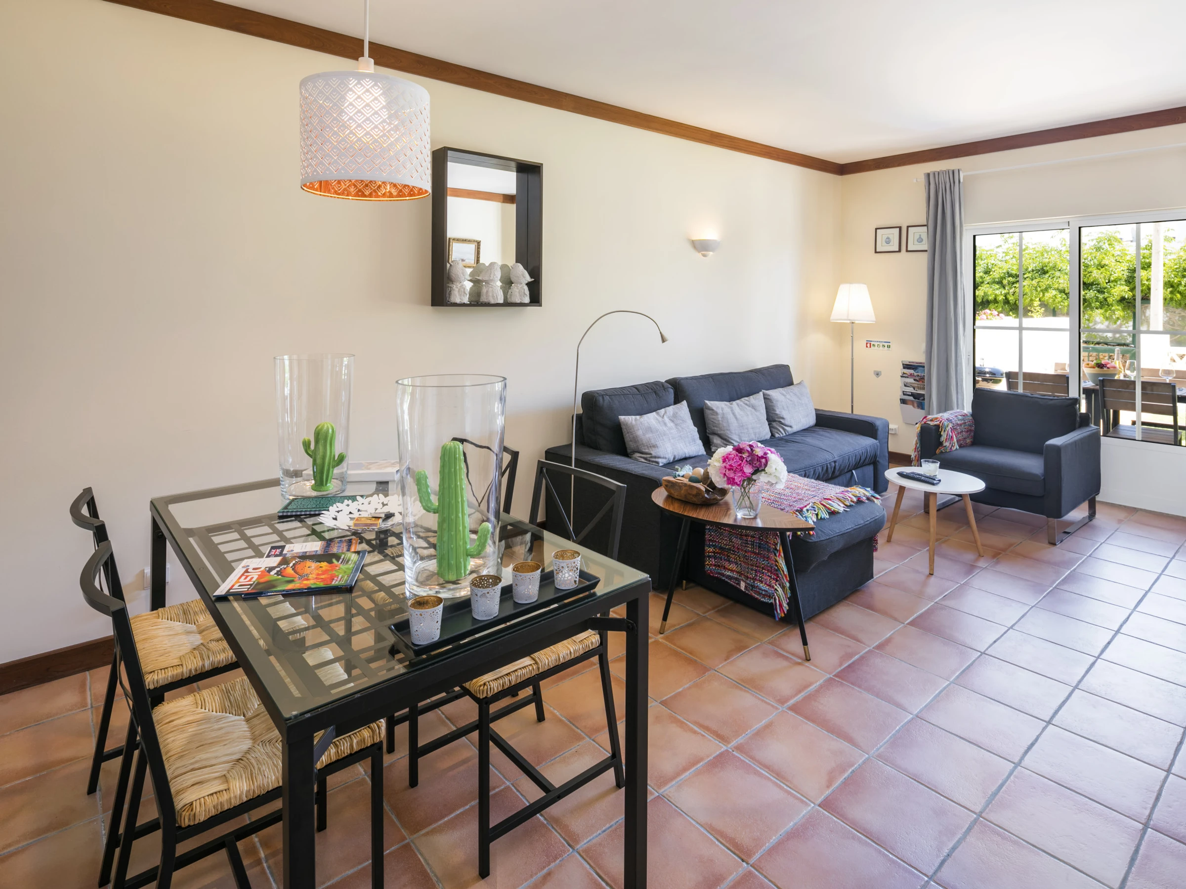 Elle dispose de jardin, mobilier de jardin, clôture, 42 m² de terrasse, lave-linge, barbecue, fer à repasser, sèche-cheveux, balcon, climatisation dans tout le logement, piscine collective, parking extérieur bâtiment proche, 1 Télévision, tv satellite (Langues: Espagnol, Anglais, Allemand, Hollandais, Français, Suédois), radio.