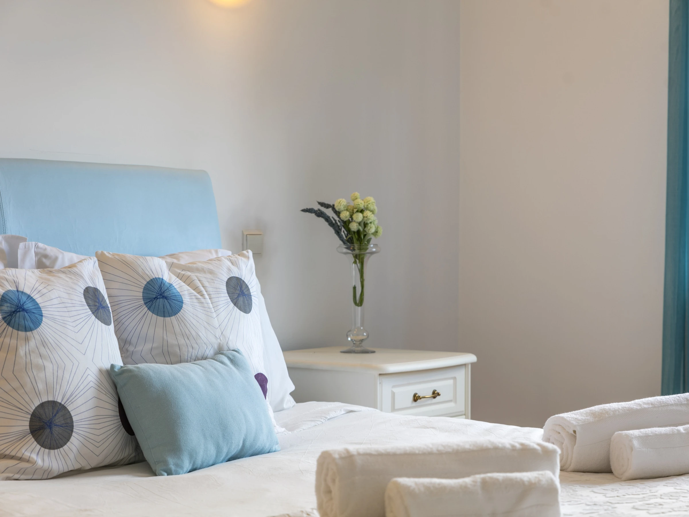 Logement de 85 m² confortable et moderne, situé en front de plage, avec vue sur la mer et la piscine.