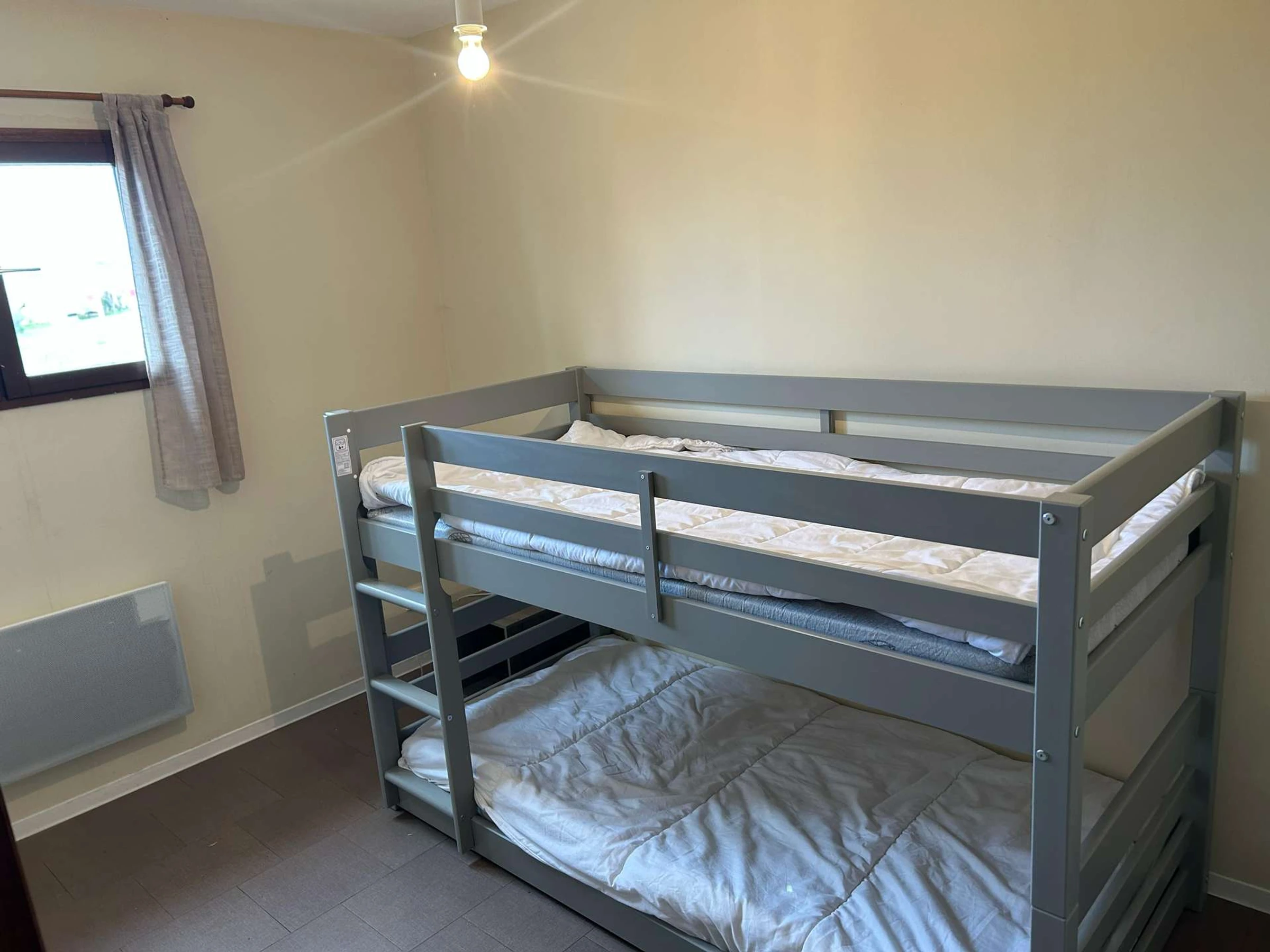 Vous retrouverez à l'étage deux chambres, une première avec un lit en 140 et une seconde avec un lit superposé.
