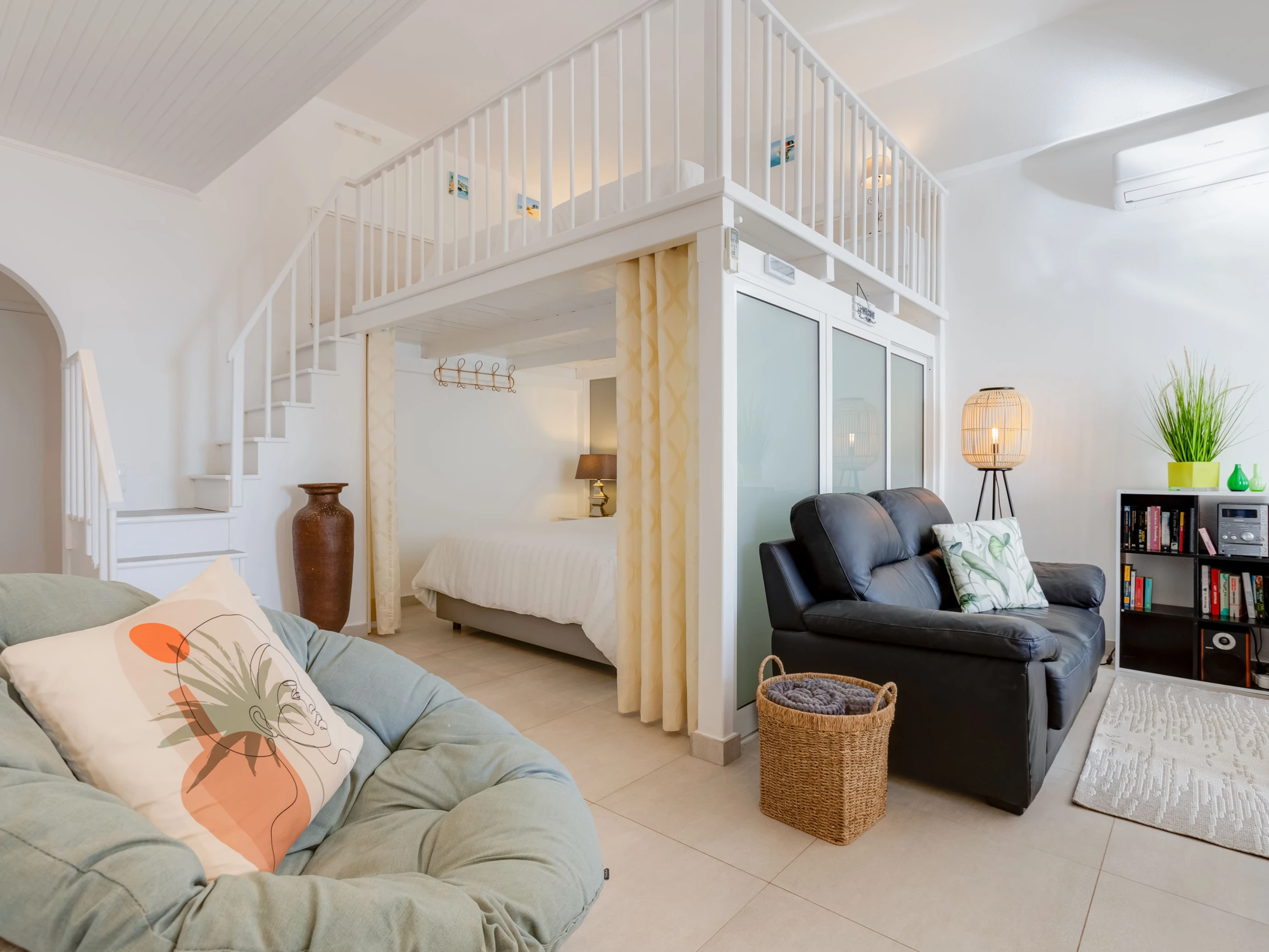Appartement de type « Open Space » avec 2 espaces de couchage privés, ce studio a été très bien conçu afin d'offrir le meilleur confort et intimité à ses hôtes. Lit double, 2 lits simples, cuisine américaine entièrement équipée, coin repas à côté de son espace séjour avec TV, système audio et accès direct à la grande terrasse de 20m2. Salle de bain avec baignoire, grill électrique (à utiliser sur la terrasse), lave-linge et lave-vaisselle, WIFI, télévision par câble, climatisation, chaises longues et mobilier d'extérieur pour prendre vos repas. Le nombre maximum d'occupants autorisés dans toute réservation est de 4 personnes (avec un maximum de 3 adultes ou 2 adultes et 2 adolescents).