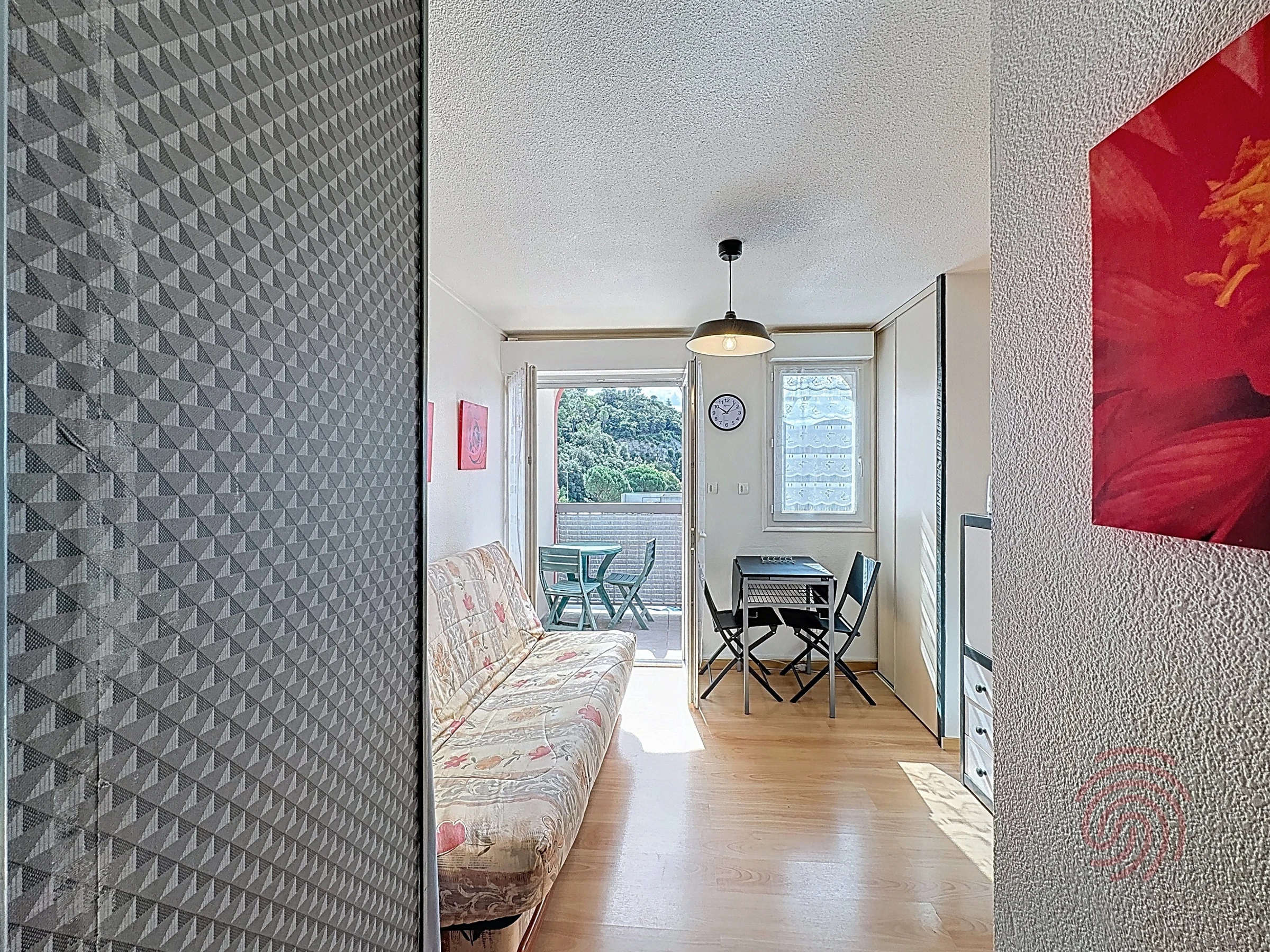 Studio de 17 m², situé au 3ème étage avec ascenseur + huit marches pour accéder au logement, une vue qui donne sur le parking de la résidence avec une exposition Sud, il est à 400 mètres du cœur de ville de Lamalou les Bains et 650 mètres des Thermes. Il est équipé d'un coin cuisine avec un micro-ondes, un four, une plaque induction deux feux, un réfrigérateur top.. ouvert sur la pièce principale qui comprend un canapé convertible clic-clac en 140, une télévision écran plat et un lit en 80 à l'entrée du studio. Wifi dans le logement. Une salle d'eau avec douche, lavabo et WC. Un balcon avec une table et des chaises de jardin. Laverie automatique dans la Résidence. Parking municipal gratuit à proximité. ANIMAUX NON ADMIS. Un lit parapluie pour bébé peut être mis à disposition sur simple demande dans la limite de notre stock.