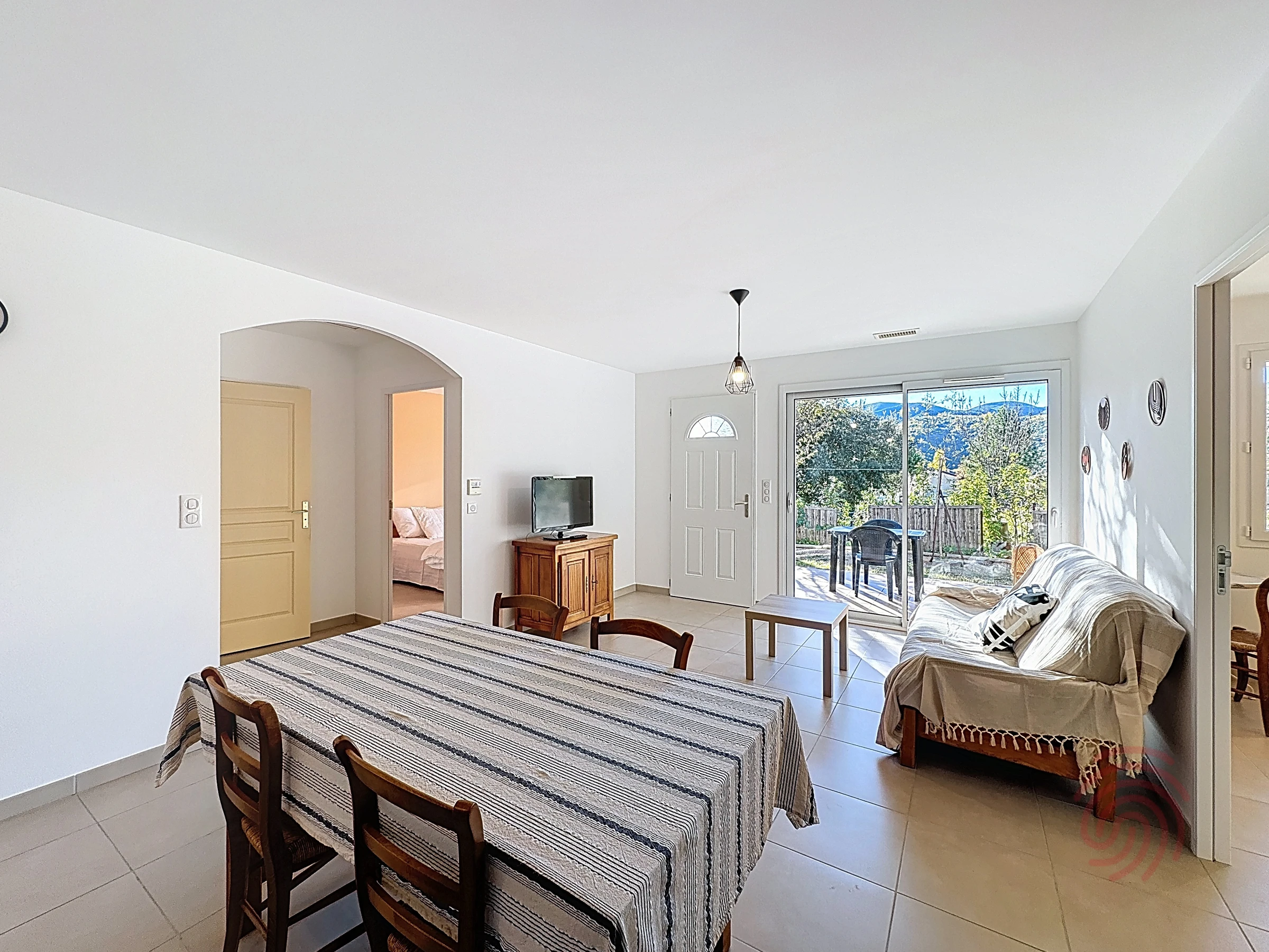 Jolie Maison de vacances ou séjour de cure, de 60 m², climatisée, de plain pied. Une grande terrasse avec table et chaises de jardin. Un emplacement de parking privé. Une vue qui donne sur la végétation environnante exposée plein sud, elle se situe à 900 mètres du cœur de ville de Lamalou les Bains et 950 mètres des Thermes, possibilité de prendre la navette Thermale à proximité. Une cuisine intégrée équipée d'une plaque induction 3 feux, une hotte aspirante, un micro-ondes, un four intégré, un réfrigérateur/congélateur, une cafetière filtre, un grille pain, une bouilloire, et un lave-linge dans une buanderie. Un salon équipé d'un canapé 2 places, une télévision écran plat. Une chambre séparée avec un lit en 140, une commode et une armoire de rangement. Une autre pièce séparée équipée d'un bureau et d'un canapé NON CONVERTIBLE. Une salle d'eau avec douche à l'italienne, un lavabo. Les WC sont séparés. Devant la maison il y a un emplacement pour la voiture. ANIMAUX NON ADMIS. Un lit parapluie pour bébé peut être mis à disposition sur simple demande dans la limite de notre stock.