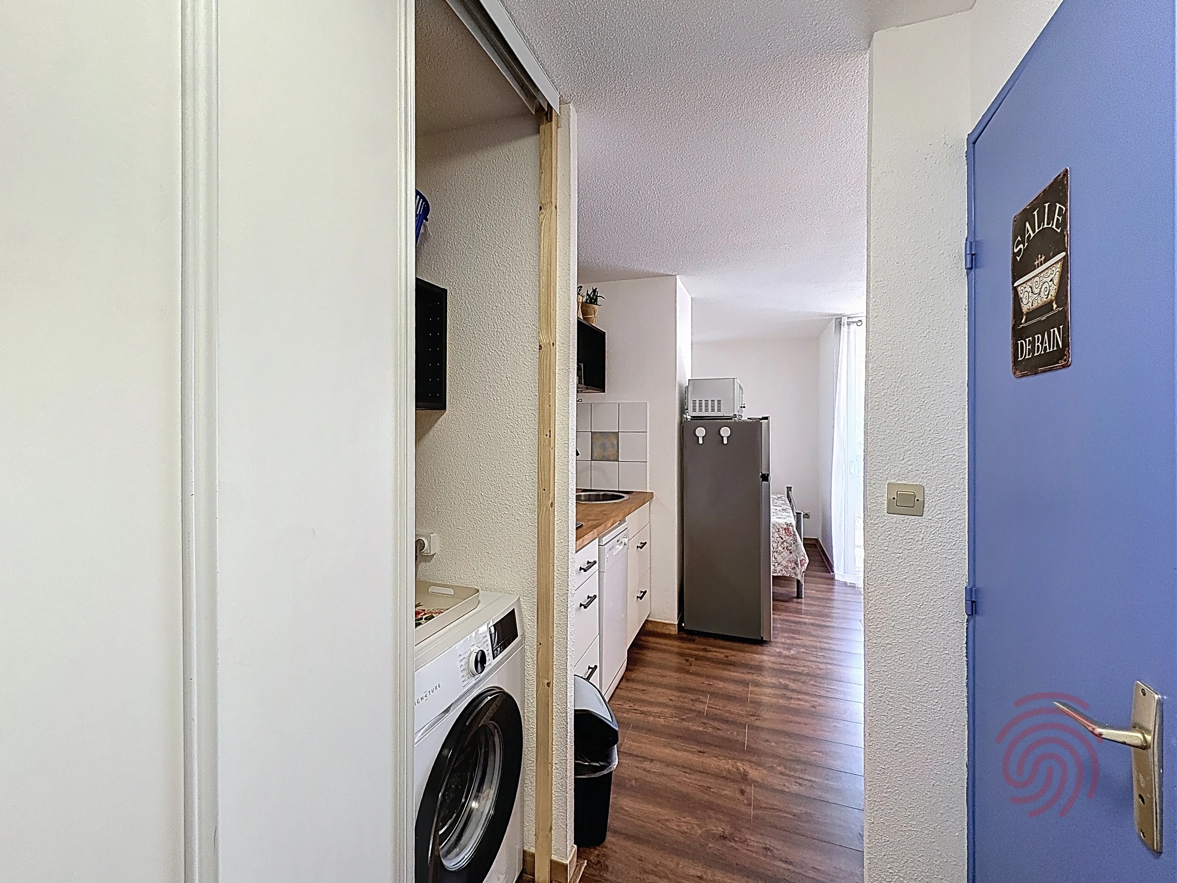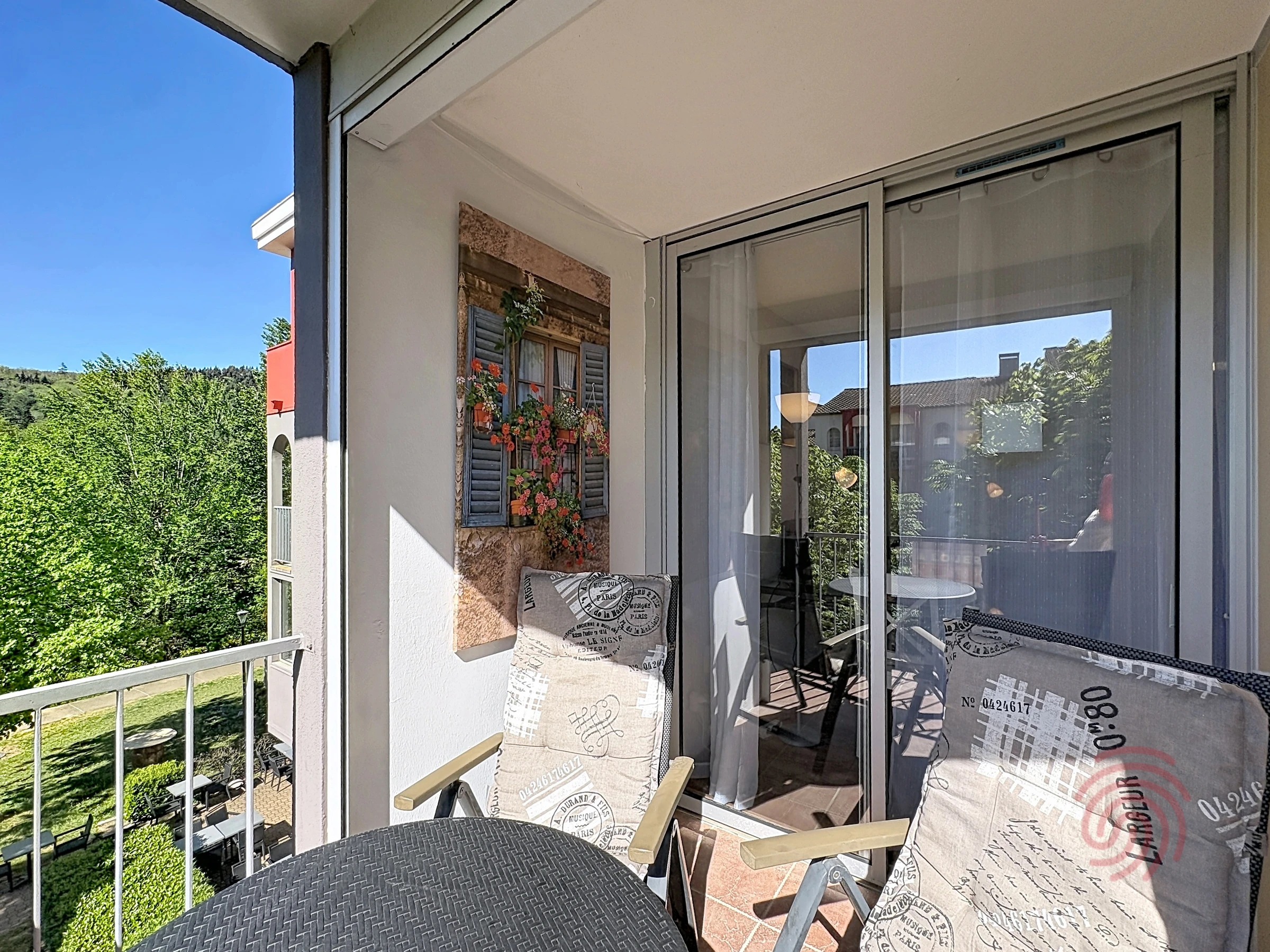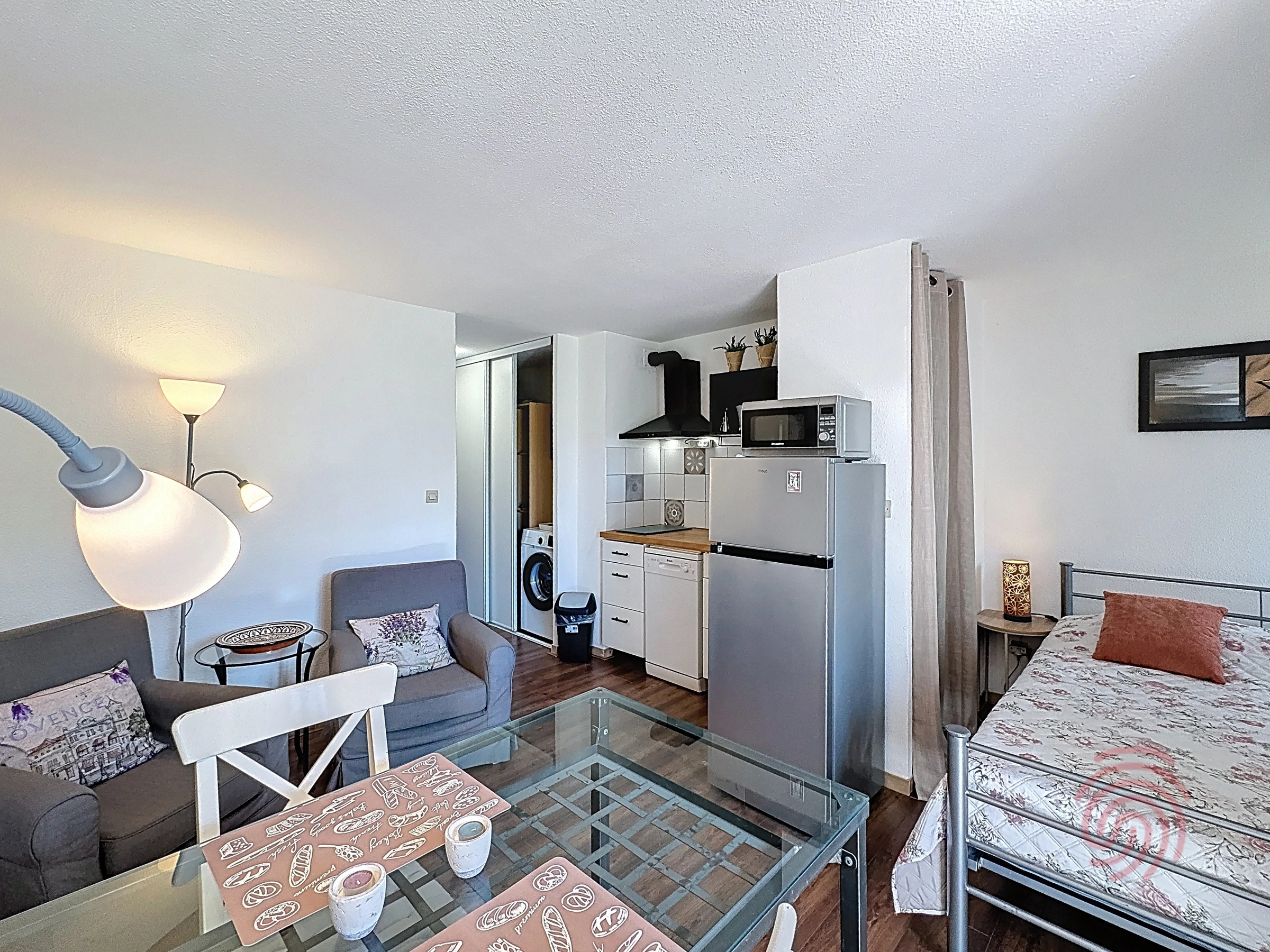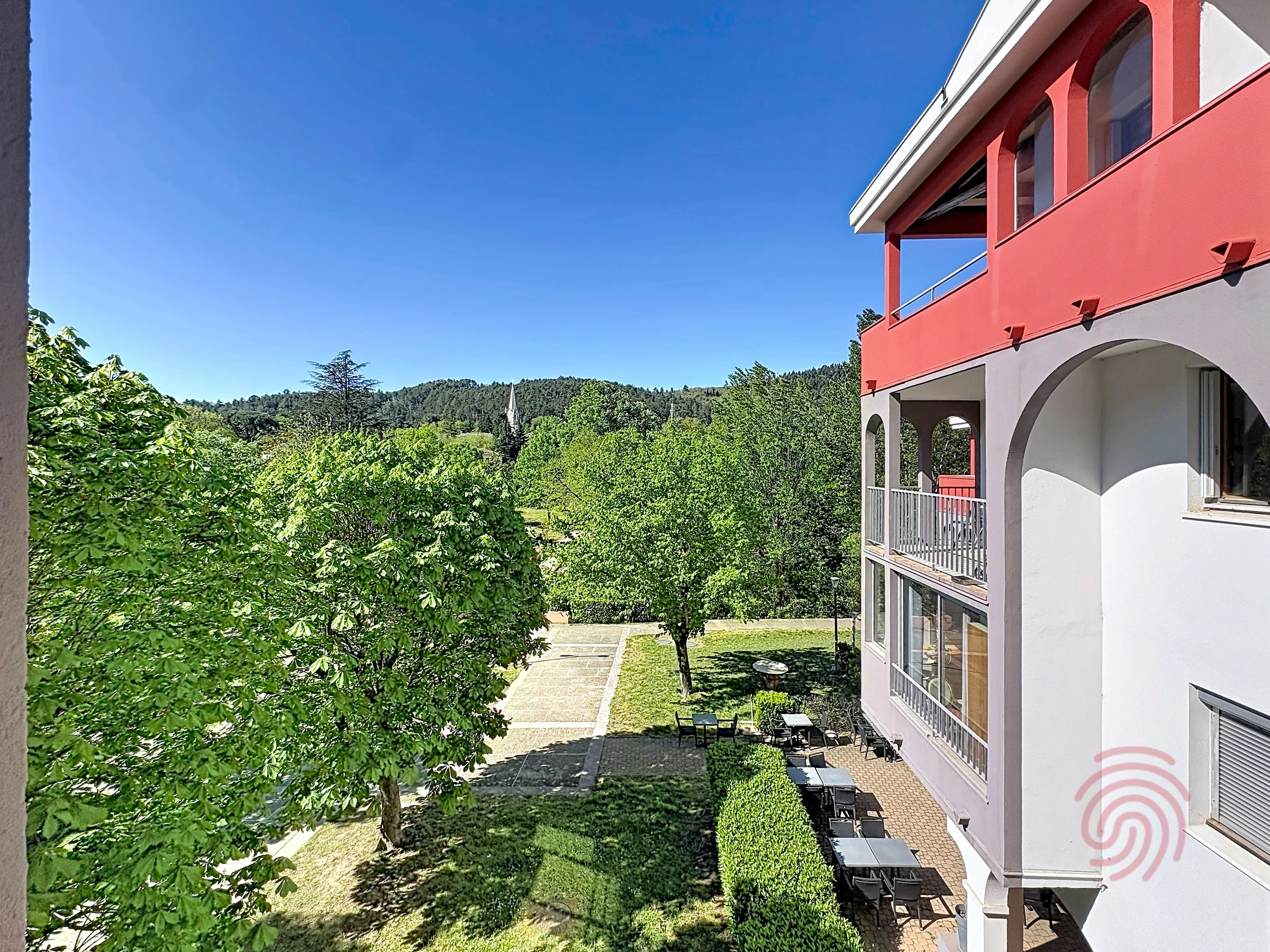 Logement de 28 m² de type F1, situé au 2èmer étage avec ascenseur, Un balcon avec une table et deux fauteuils de jardin. Une vue qui donne sur un jardin arboré avec une exposition Sud, il est à 400 mètres du cœur de ville de Lamalou les Bains et 650 mètres des Thermes. Le logement est équipé d'un coin cuisine avec un réfrigérateur/congélateur, un lave-linge, un lave-vaisselle, un micro-ondes multifonctions, une plaque vitrocéramique deux feux, une cafetière filtre... ouvert sur la pièce principale qui comprend une table, des chaises, une télévision écran plat, deux fauteuils [hidden] alcôve avec un lit en 160 (2 lits en 80 rassemblés), un placard de rangement. Wifi Fibre. Une salle d'eau avec une douche, un lavabo, un sèche cheveux. Les WC sont séparés. Parking municipal gratuit à proximité. ANIMAUX NON ADMIS DANS LA LOCATION. Un lit parapluie pour bébé peut être mis à disposition sur simple demande dans la limite de notre stock.