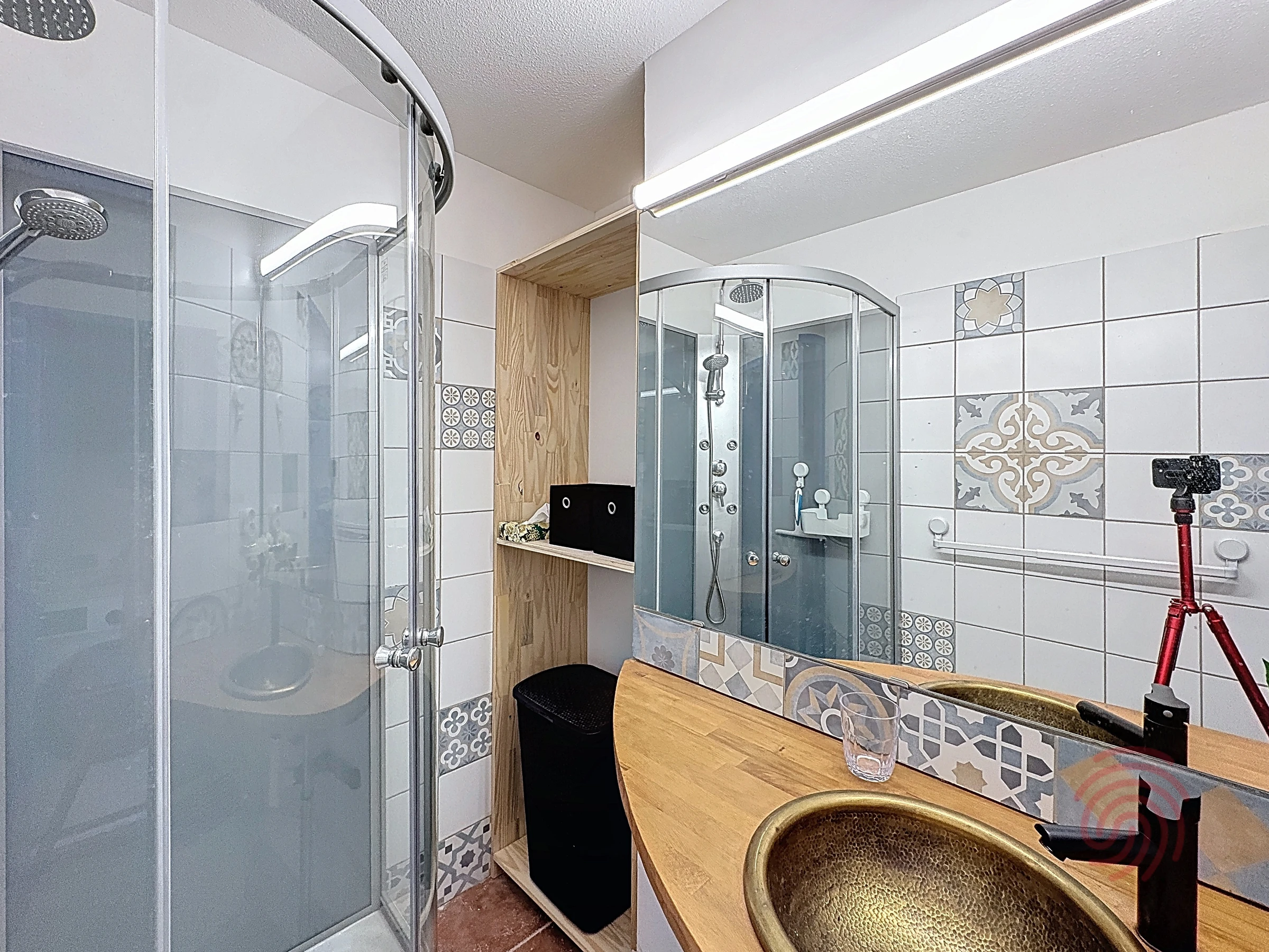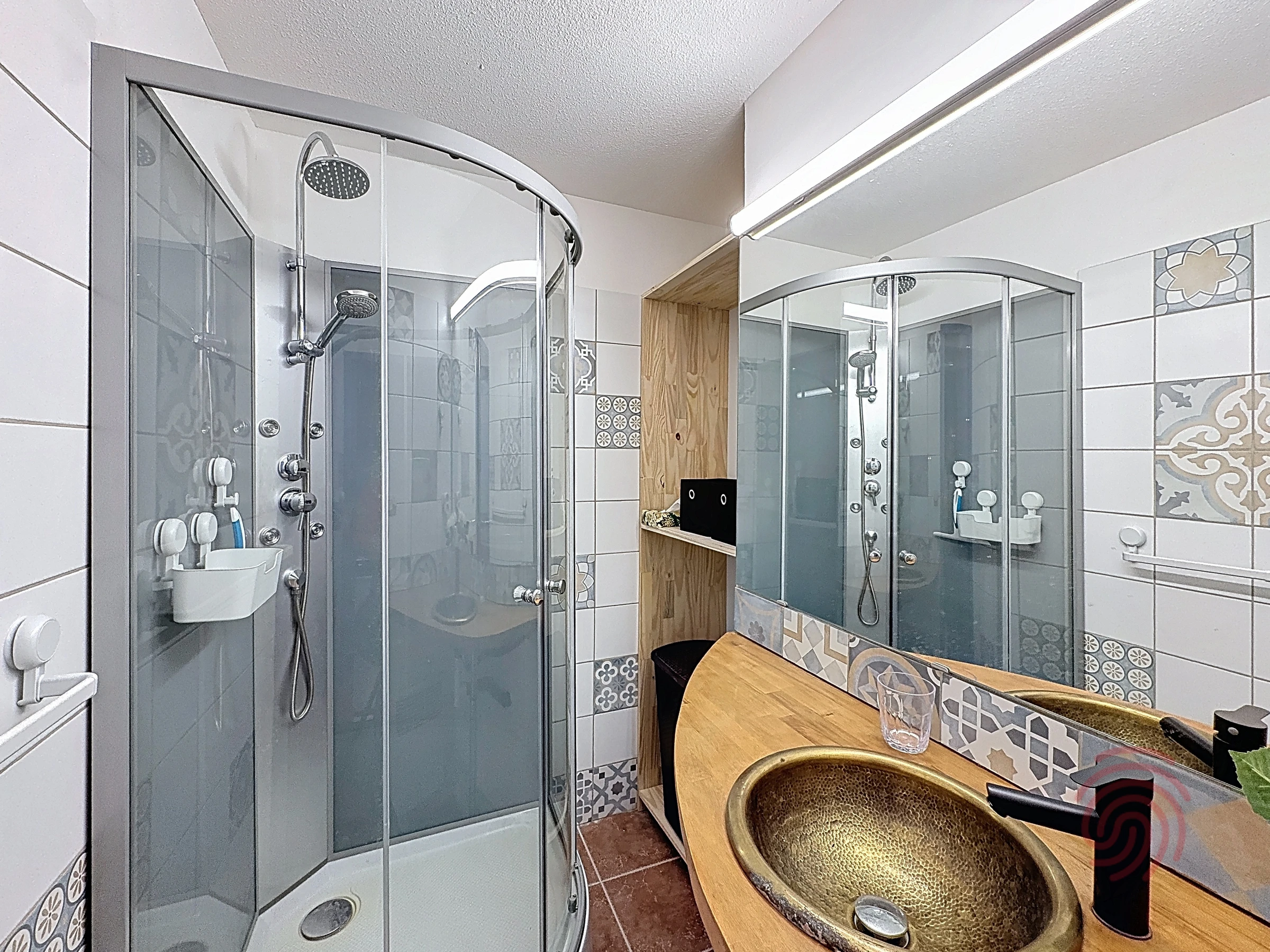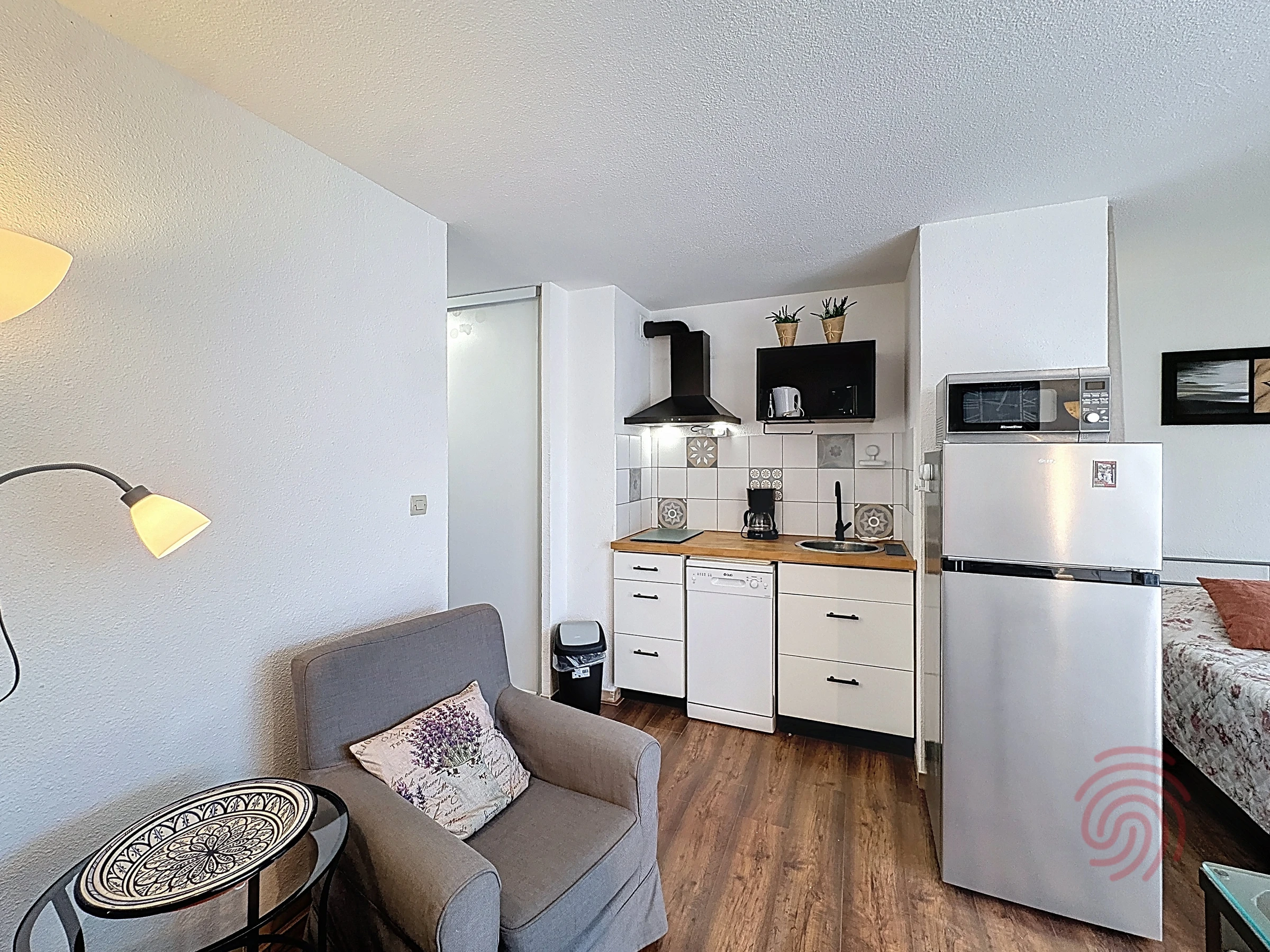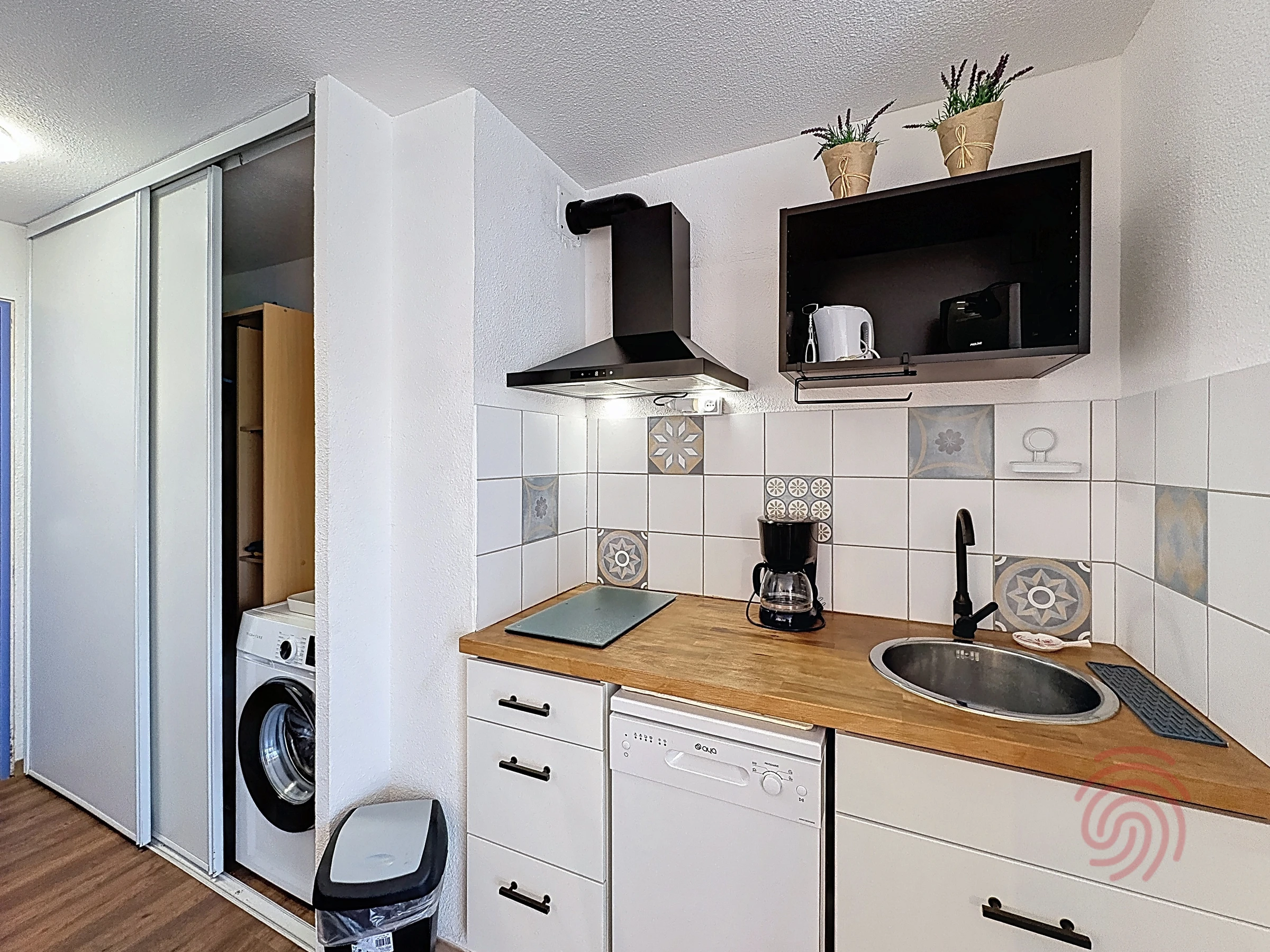 Logement de 28 m² de type F1, situé au 2èmer étage avec ascenseur, Un balcon avec une table et deux fauteuils de jardin. Une vue qui donne sur un jardin arboré avec une exposition Sud, il est à 400 mètres du cœur de ville de Lamalou les Bains et 650 mètres des Thermes. Le logement est équipé d'un coin cuisine avec un réfrigérateur/congélateur, un lave-linge, un lave-vaisselle, un micro-ondes multifonctions, une plaque vitrocéramique deux feux, une cafetière filtre... ouvert sur la pièce principale qui comprend une table, des chaises, une télévision écran plat, deux fauteuils [hidden] alcôve avec un lit en 160 (2 lits en 80 rassemblés), un placard de rangement. Wifi Fibre. Une salle d'eau avec une douche, un lavabo, un sèche cheveux. Les WC sont séparés. Parking municipal gratuit à proximité. ANIMAUX NON ADMIS DANS LA LOCATION. Un lit parapluie pour bébé peut être mis à disposition sur simple demande dans la limite de notre stock.