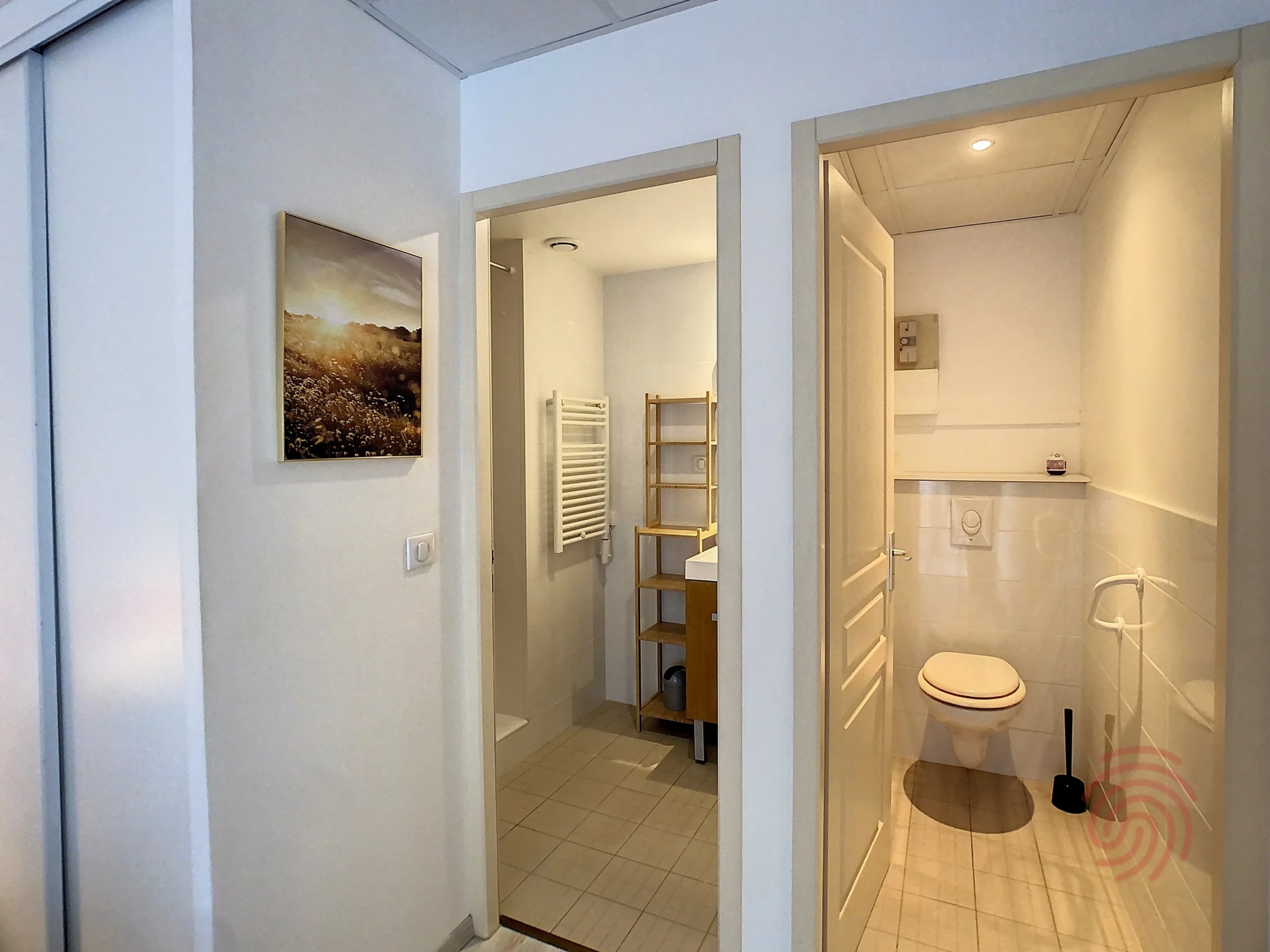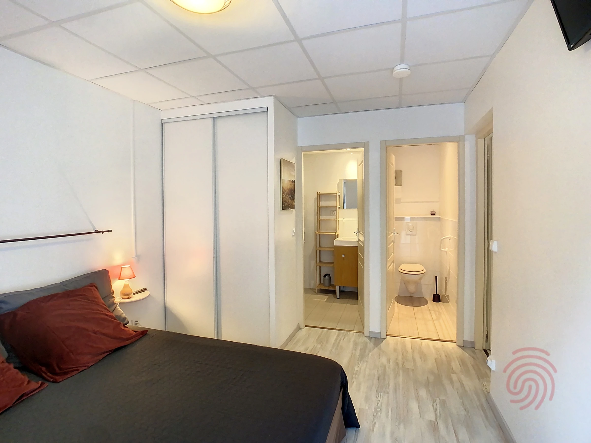 Très bel appartement F2 de 34 m² situé au 1er étage avec ascenseur, une vue qui donne sur le parking de la résidence avec une exposition Est, il est à 400 mètres du cœur de ville de Lamalou les Bains et 650 mètres des Thermes. Le logement est équipé d'un coin cuisine avec un réfrigérateur/congélateur, un micro-ondes, un four, une plaque vitro deux feux, une hotte aspirante, un lave-linge, un lave-vaisselle... ouvert sur la pièce principale qui comprend un lit en 90 (canapé), une table et chaises, une télévision écran plat. Une chambre avec un lit en 160, télévision écran plat, placard de rangement, l'accès de la salle d'eau se fait par la chambre. La salle d'eau est équipée d'une douche, un lavabo. WC séparés de la salle d'eau. Il y a deux balcons, un dans le séjour équipé d'une table et chaises et un balcon dans la chambre. Wifi dans l'appartement. Laverie automatique dans la Résidence. Parking municipal gratuit à proximité. ANIMAUX NON ADMIS. Un lit parapluie pour bébé peut être mis à disposition sur simple demande dans la limite de notre stock.