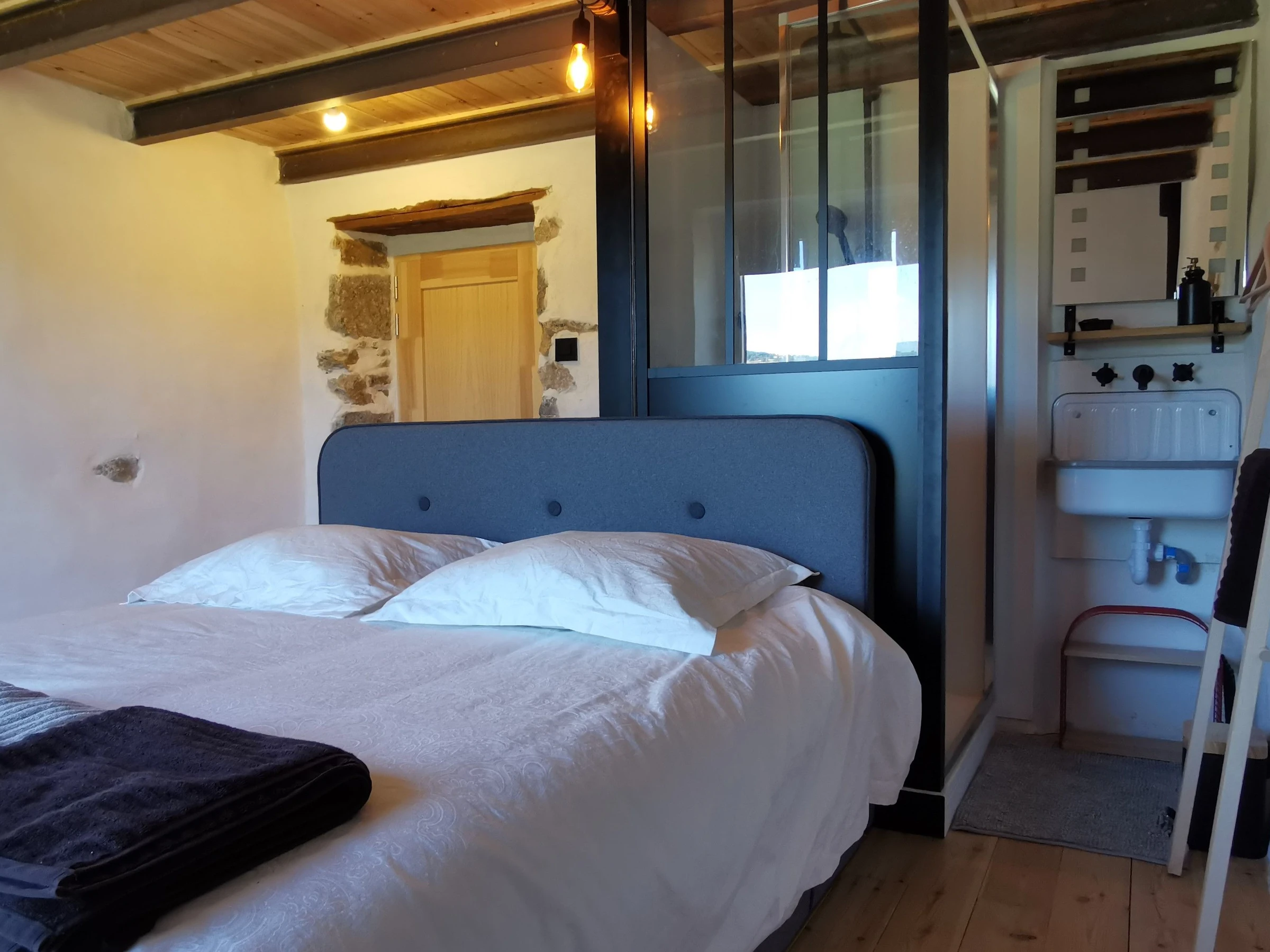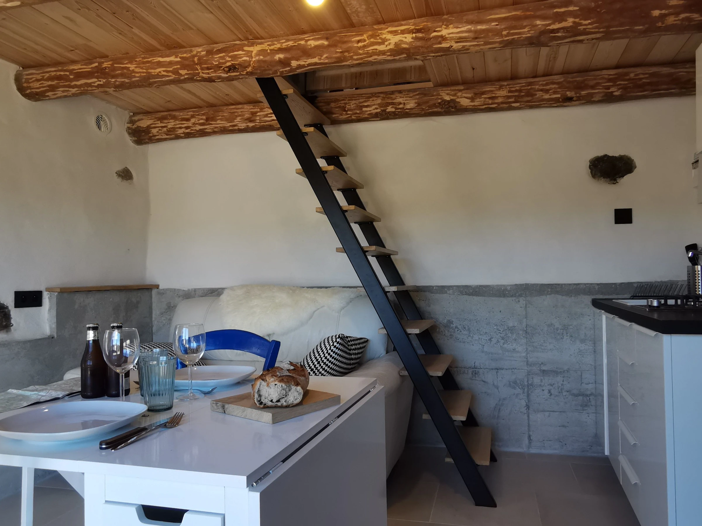 Attention : l'accès à l'étage et à la mezzanine se fait par un escalier très pentu , Ce logement n'est donc pas adapté aux jeunes enfants ou aux personnes ayant des difficultés à se mouvoir.