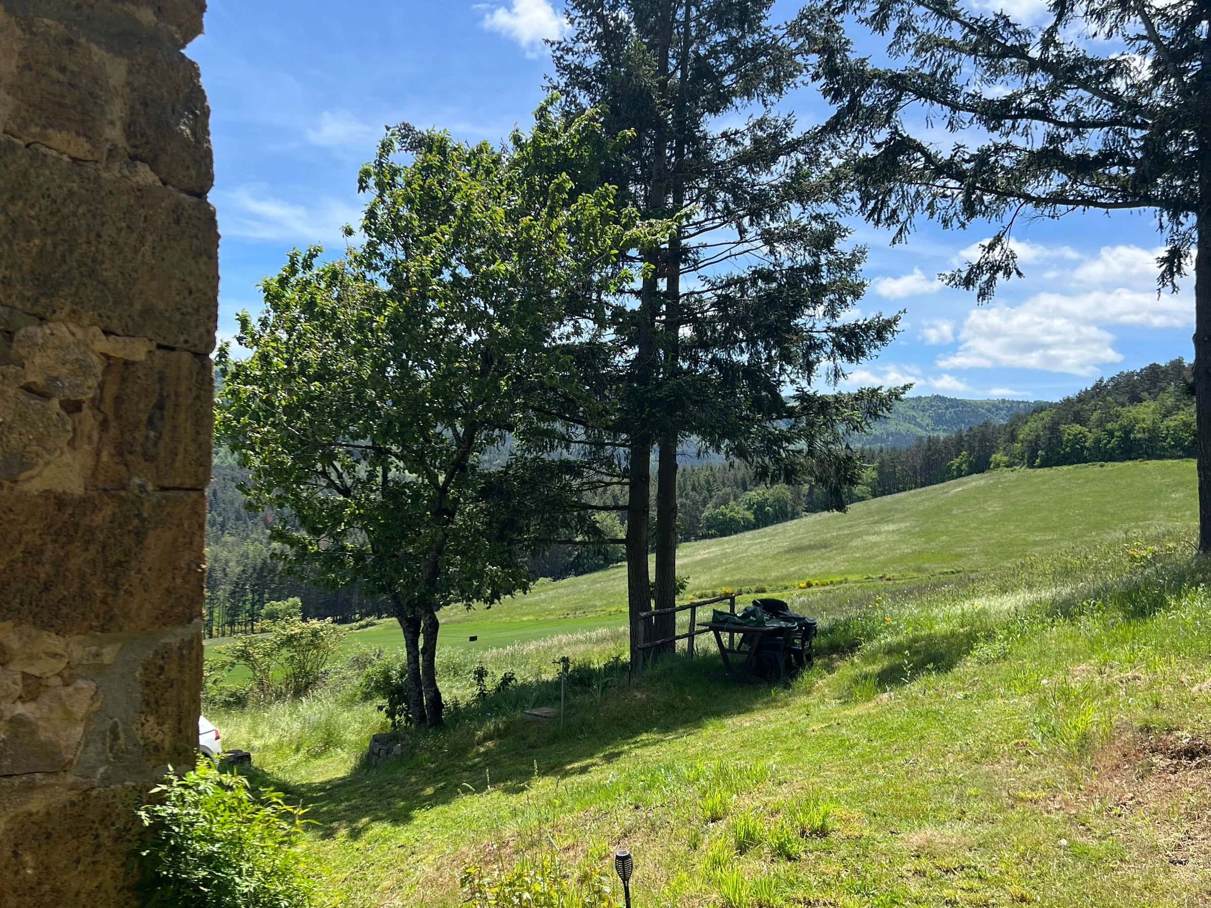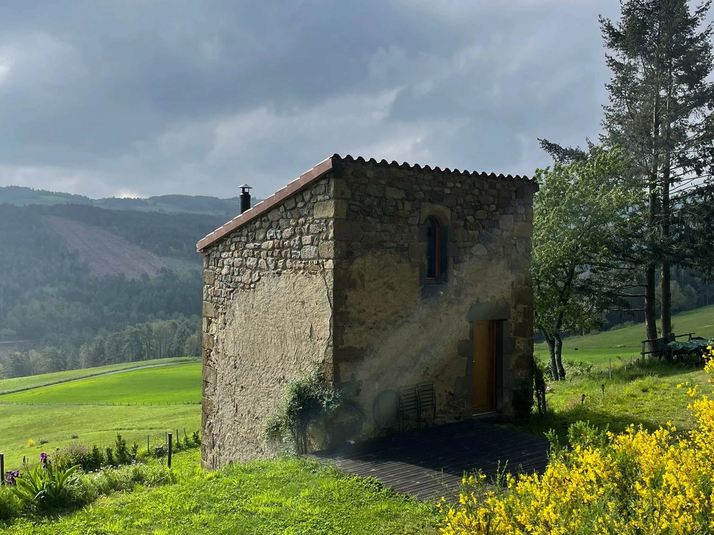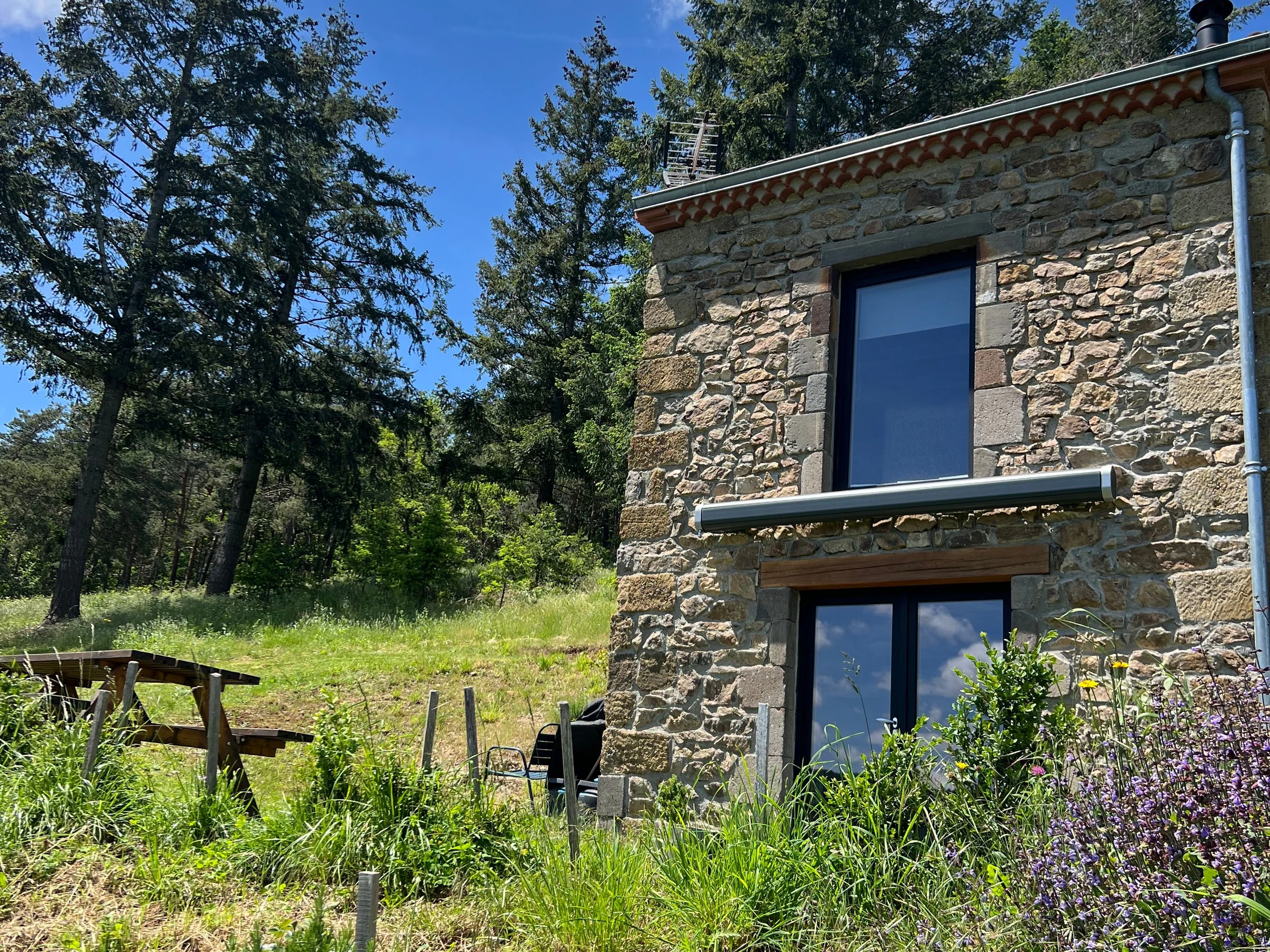 Un peu plus loin : le village de Saugues peuplé de légendes, Brioude et sa basilique classée monument historique, la ville du Puy en Velay et ses nombreux monuments classés au patrimoine Mondial de l'UNESCO... Sur environ 3 Ha de terrain cette ancienne maison de vignes dont le rez de chaussée est aménagée en salon avec espace kitchenette. A l'étage, une chambre équipée de deux couchages, (dont un en mezzanine, hauteur sous plafond 1m) et d'une cabine de douche avec accès direct sur l’extérieur. Toilettes sèches à une vingtaine de mètre de la maison.