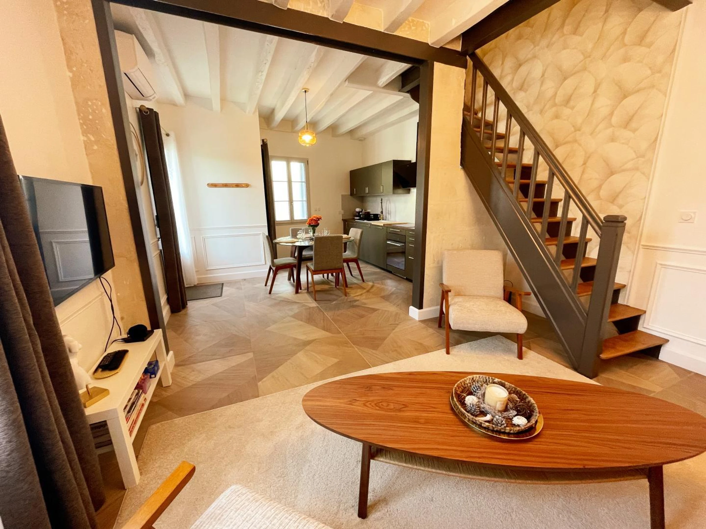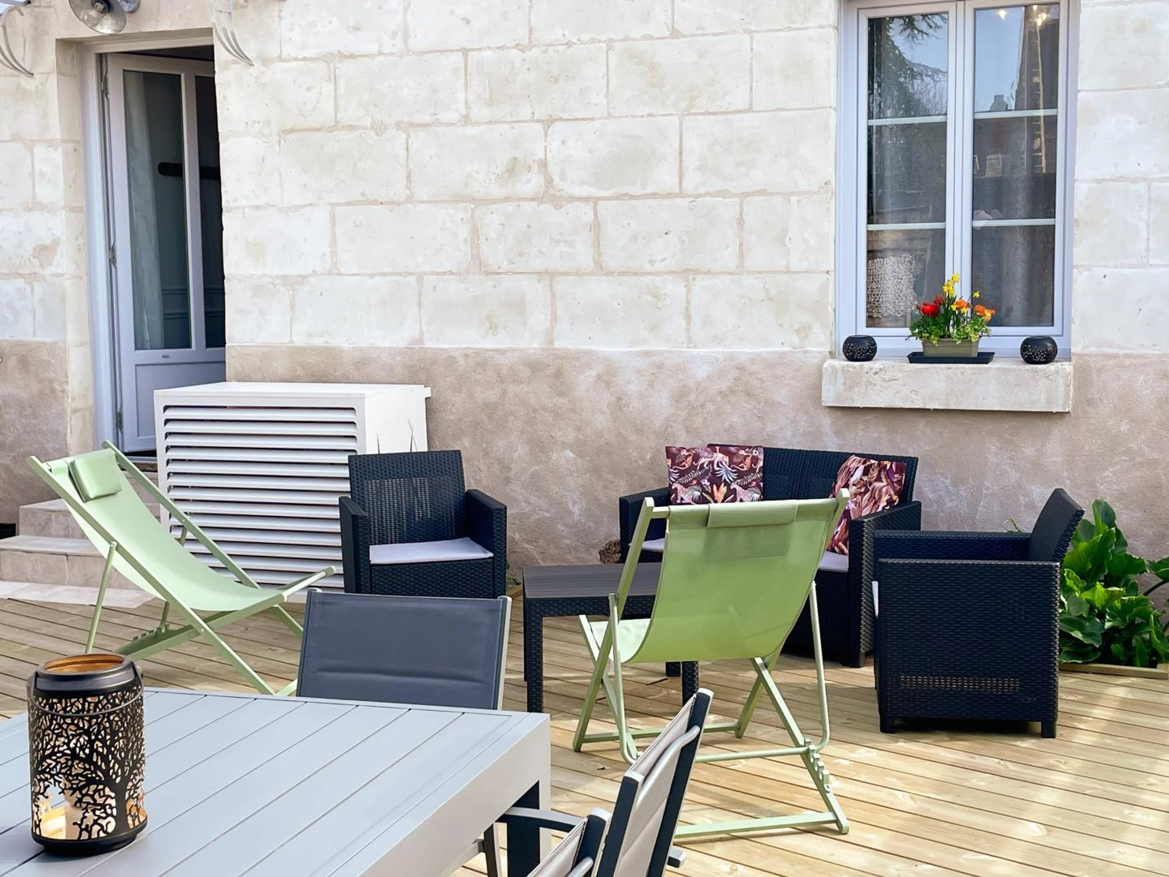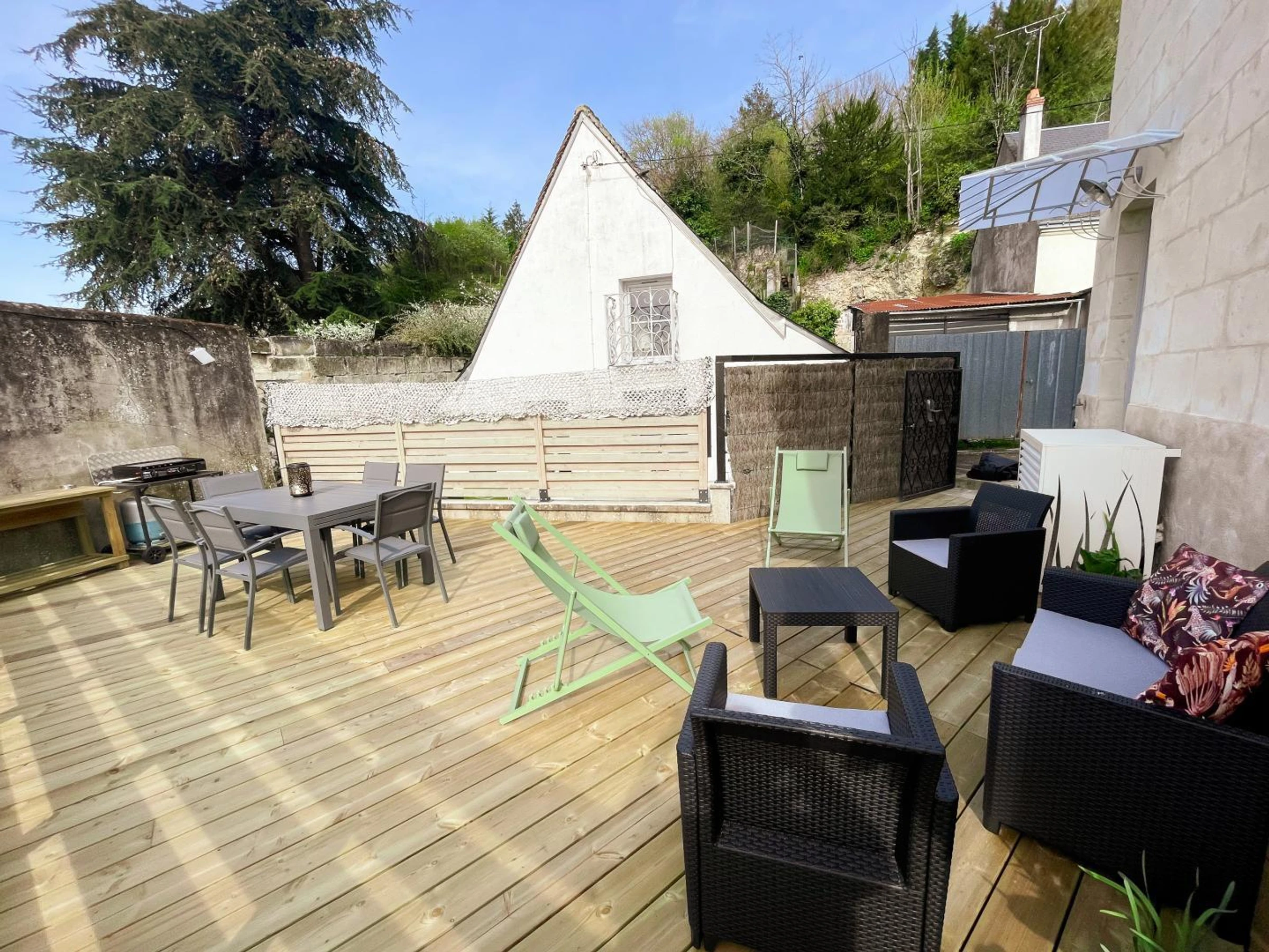 Gîte tout inclus (sauf taxe de séjour). RdC (accès via 4 marches) : cuisine/séjour/salon (four, 4 feux induction, cafetière à dosette Tassimo, frigo/congél. TV), lave-linge dans espace rangement. Escalier confortable menant à l'étage : 2 chambres avec chacune 1 lit 140X190cm, dressing, bureau/coiffeuse. Chambre 2 avec bureau. Salle d'eau/WC inclus. Wifi. Chauffage inclus aux tarifs. Cour close privative. Vaste terrasse bois de 30 m² (plancha gaz). Salon de jardin, 2 transats et table de repas,6 chaises, parasol. Parkings gratuits à proximité (possibilité de dépose-valise face au gîte). Itinéraire de la Loire à Vélo et le Fleuve Royal à proximité. Hébergement non-fumeur. Si l'on tombe inévitablement sous le charme de ce gîte, c'est parce que tous les ingrédients sont ici réunis pour passer un agréable séjour: calme, vaste terrasse pour les repas en extérieur et la détente, décoration raffinée et équipement complet. Quel bonheur de profiter de ce lieu où tout a été pensé pour votre bien-être ! Partir à pied et déambuler dans les petites rues du village, profiter des nombreux commerces, admirer ce majestueux château si imposant en cœur de cité, vivre des moments animés sur le marché réputé dans la région, c'est ce riche programme qui vous attend, une "entrée en matière" rêvée avant de partir à la conquête des richesses de la Touraine. Les balades à vélo ou en canoë, les dégustations chez nos viticulteurs complèteront les visites des joyaux tous très faciles d'accès : Azay-le-Rideau, Villandry, Chenonceau, Amboise, Loches ou Rigny-Ussé. La proximité de Tours, capitale de la Touraine compte parmi les innombrables atouts de votre futur lieu de villégiature.