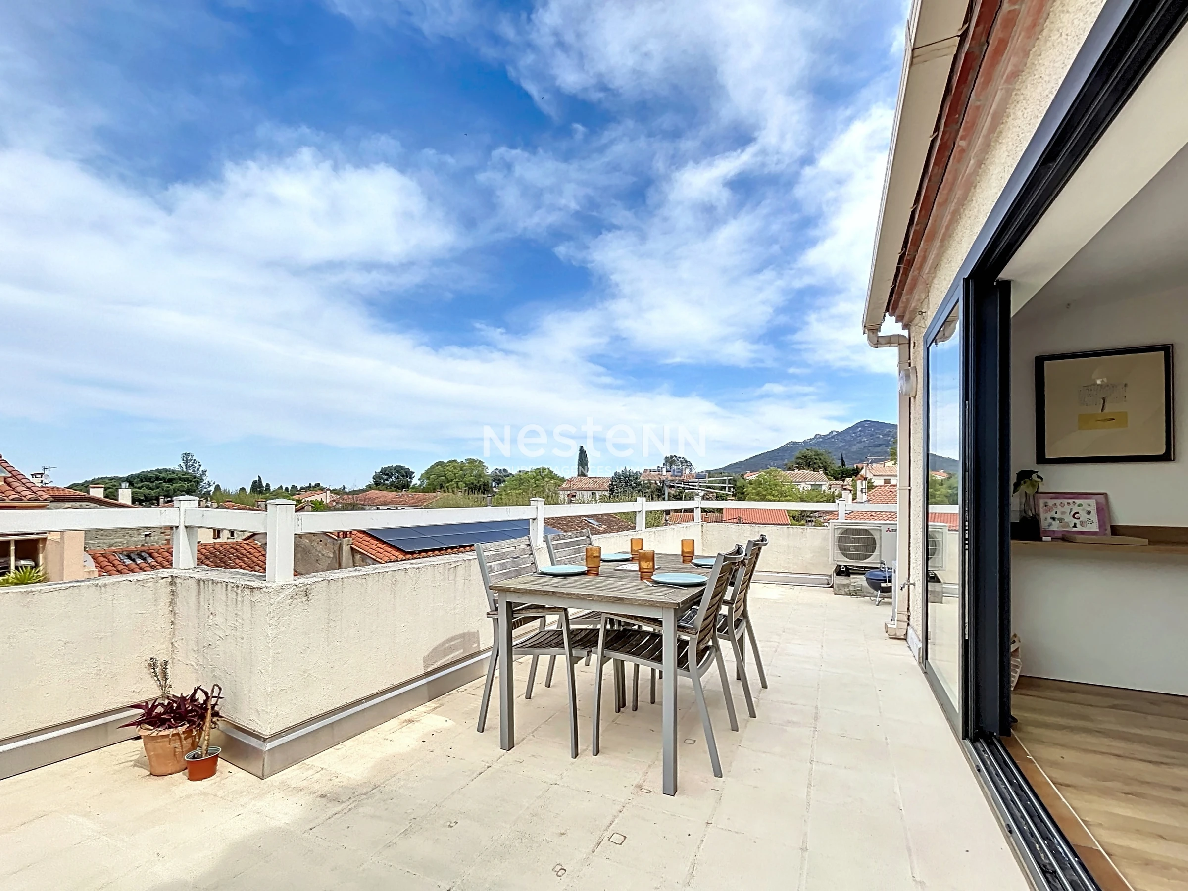 ☀️ Grande terrasse avec vue imprenable : Profitez de moments inoubliables sur la terrasse spacieuse, offrant une superbe vue sur les toits du village et les reliefs environnants. Petit-déjeuner au soleil, apéritif au coucher du soleil… à vous de choisir !