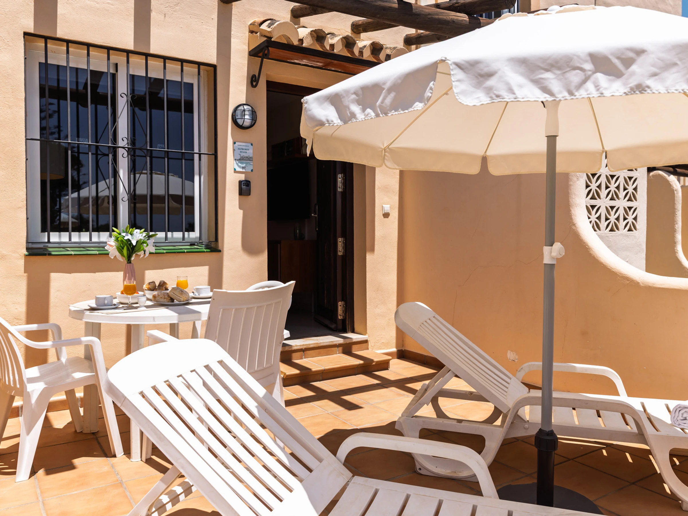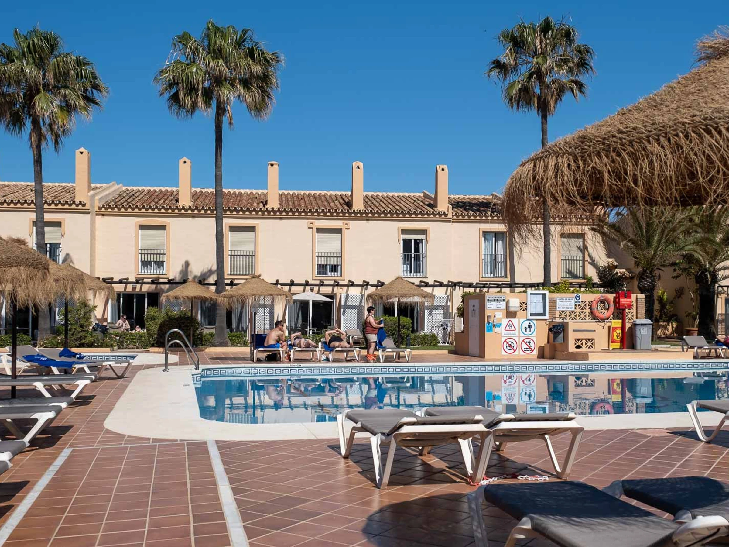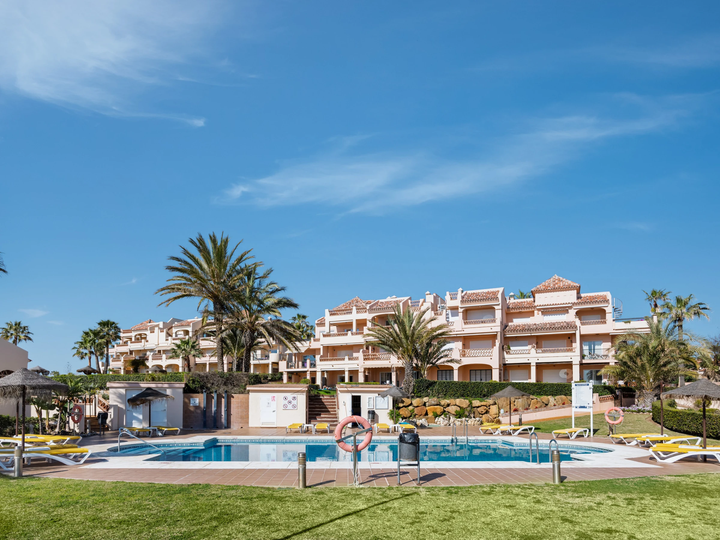 Elle dispose de mobilier de jardin, 15 m² de terrasse, lave-linge, fer à repasser, coffre-fort, accès internet (wifi), sèche-cheveux, zone pour les enfants, terrain de tennis, piste de paddle, alarme, chauffage pompe à chaleur, climatisation, piscine collective+infantile, piscine chauffée collective, parking extérieur même bâtiment, 1 Télévision, tv satellite (Langues: Espagnol), radio.