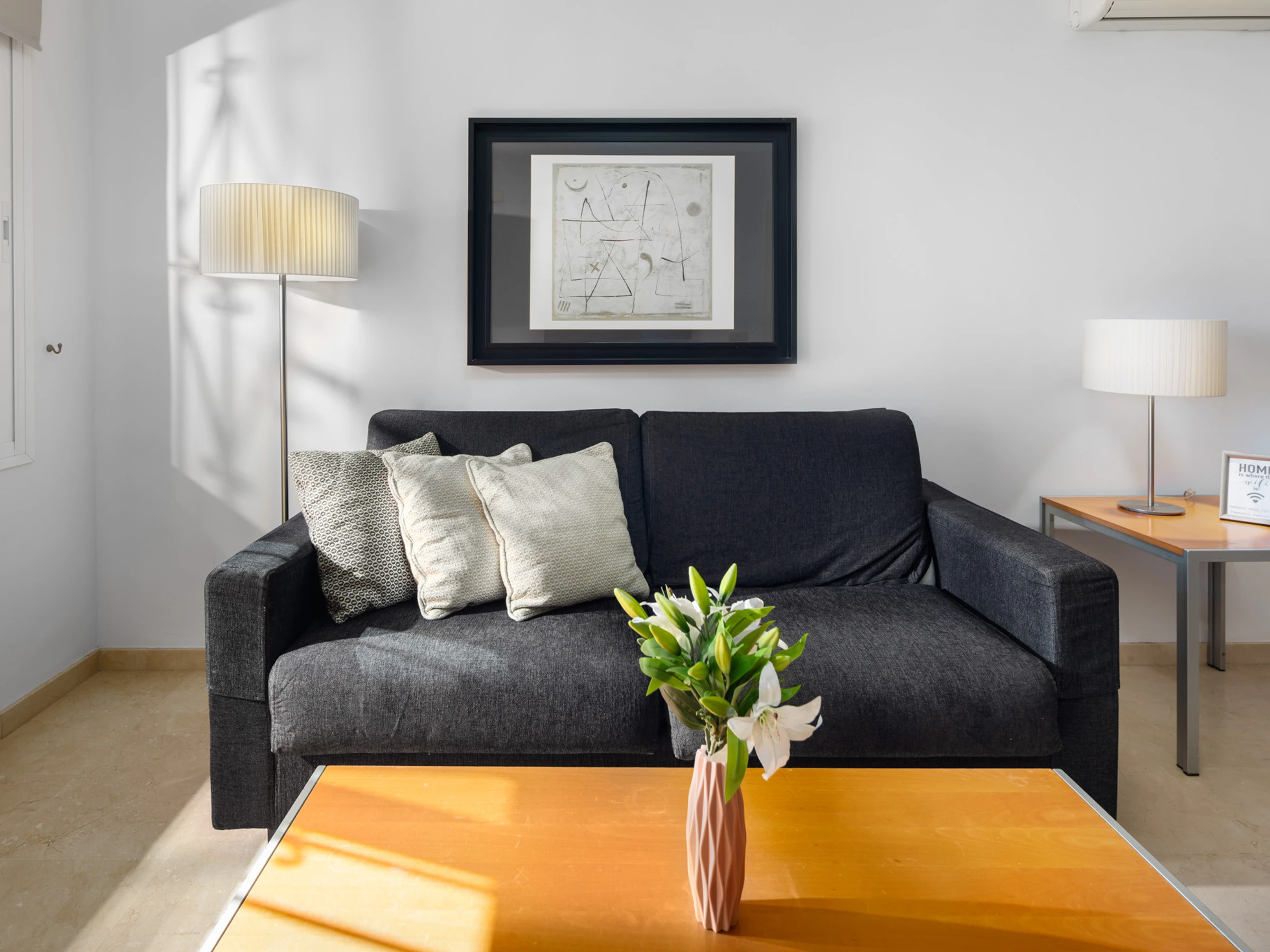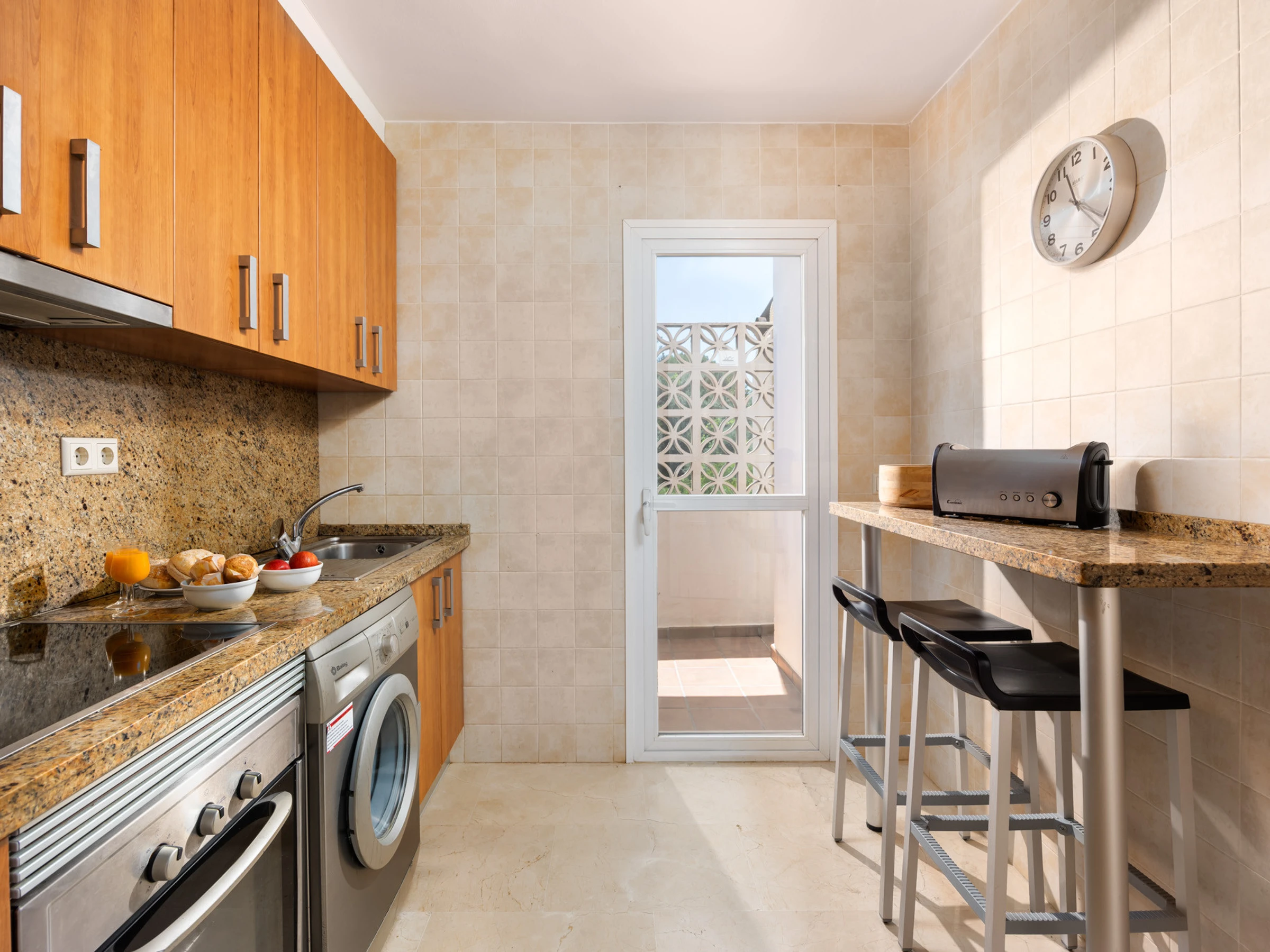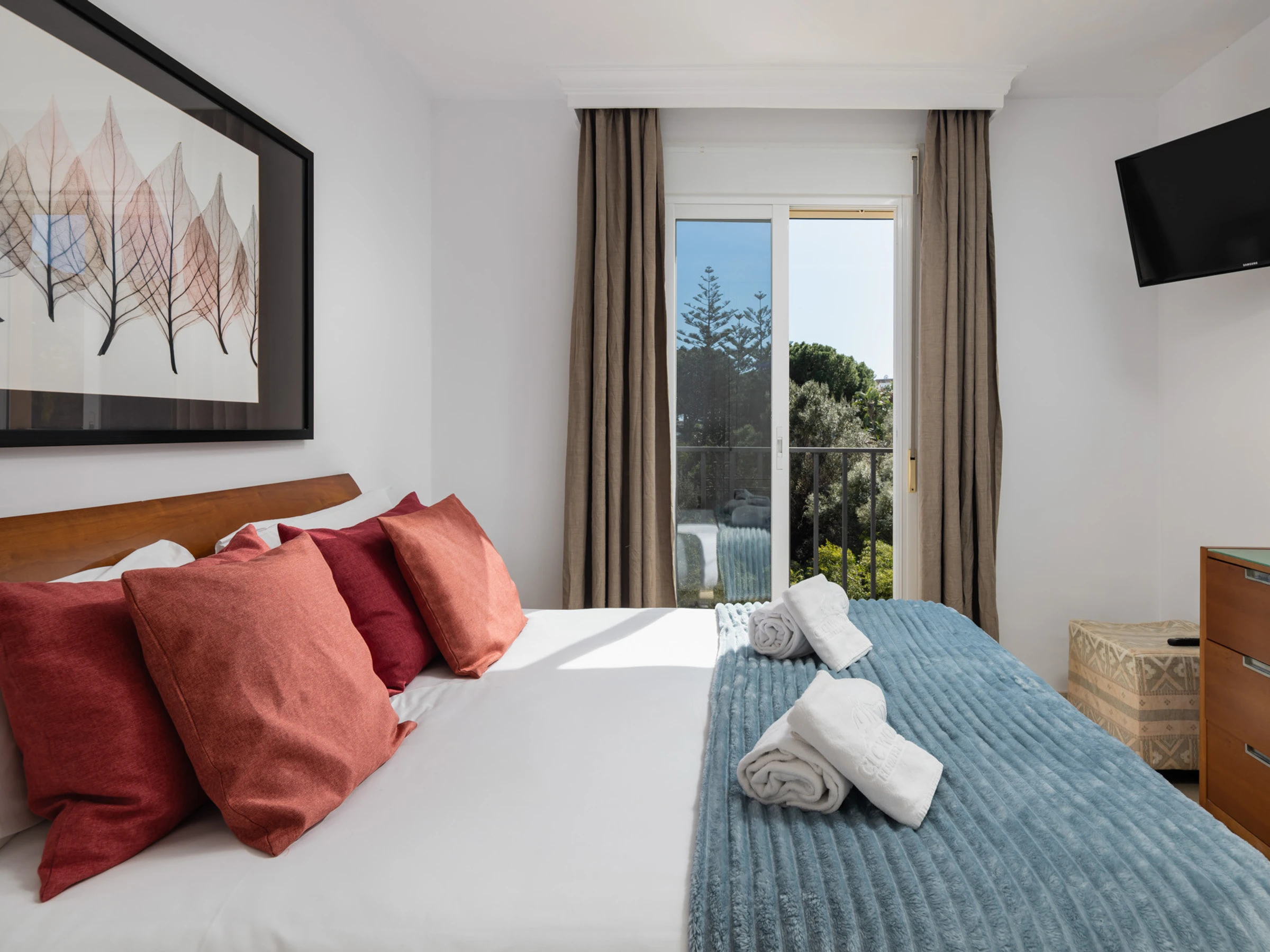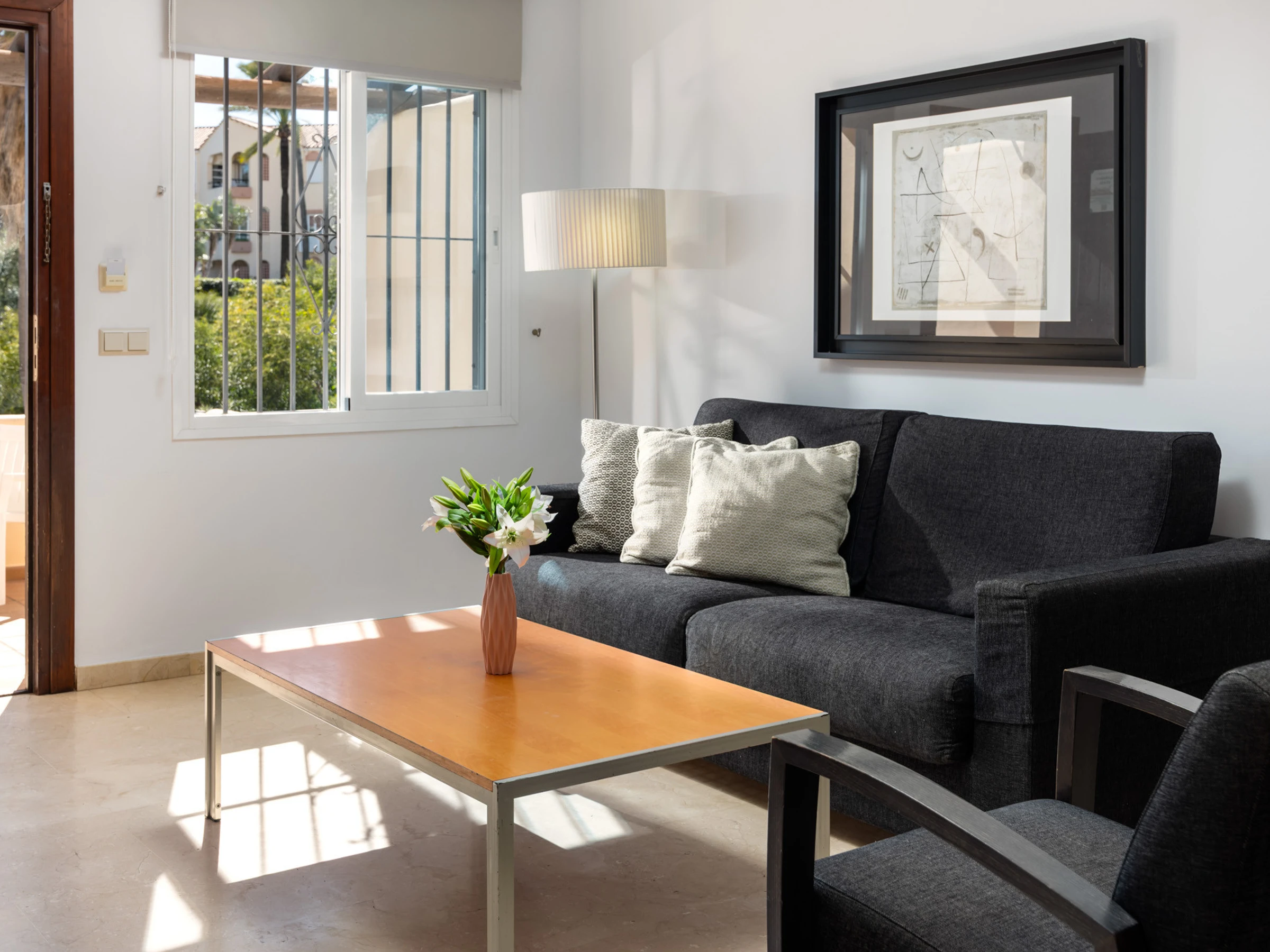 Elle dispose de mobilier de jardin, 15 m² de terrasse, lave-linge, fer à repasser, coffre-fort, accès internet (wifi), sèche-cheveux, zone pour les enfants, terrain de tennis, piste de paddle, alarme, chauffage pompe à chaleur, climatisation, piscine collective+infantile, piscine chauffée collective, parking extérieur même bâtiment, 1 Télévision, tv satellite (Langues: Espagnol), radio.