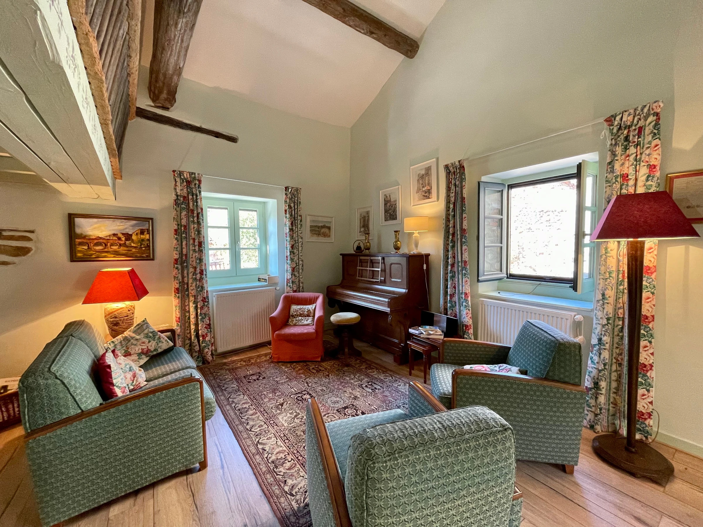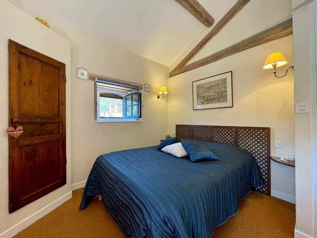 La "Chambre Marie-Charlotte" est située au deuxième étage, elle dispose d'une jolie vue sur la rivière et le village. Elle est constituée de deux pièces indépendantes ayant chacune une salle d'eau et un WC, l'une avec un lit de 140, l'autre avec deux lits de 90 superposés.