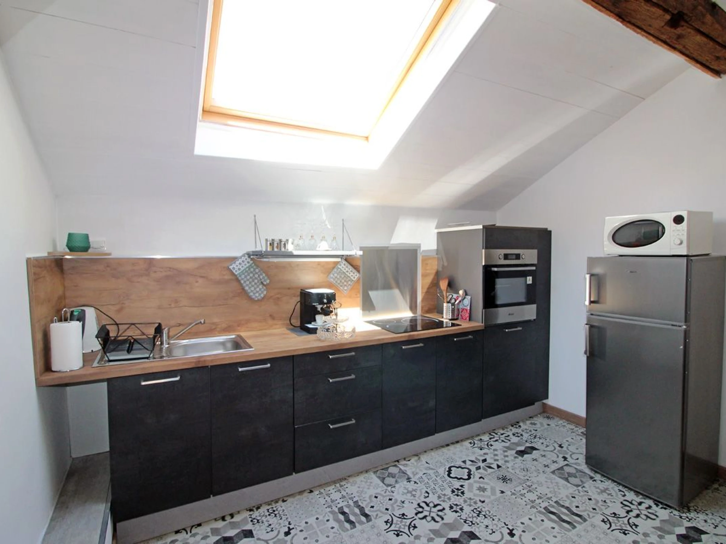 L'entrée et la buanderie sont communes avec les propriétaires et un lave-linge est mis à disposition.