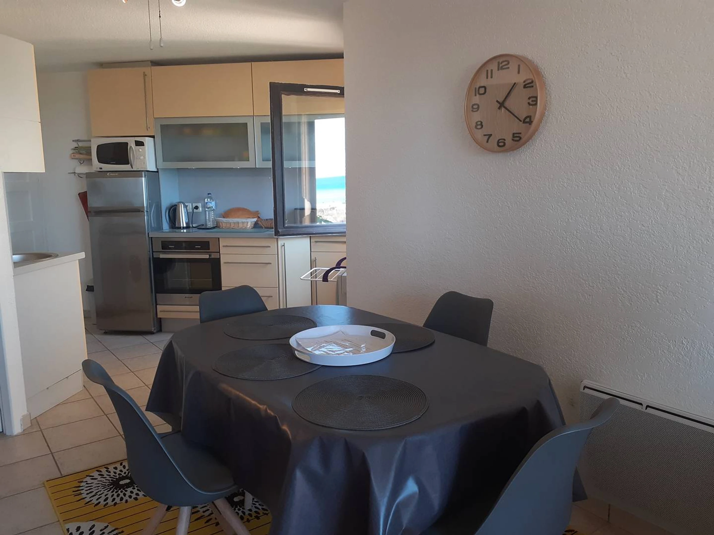 Au 1er étage, Appartement 2 pièces avec loggia fermée (baies vitrées) face à la Mer. Un séjour/salle à manger avec alcôve coin nuit avec clic clac (couchage 2 personnes), TV, Coin Cuisine équipé (plaques cuisson, four et micro onde, frigo avec congélateur, lave vaisselle et lave linge).Chambre avec un lit en 140 (couchage 2 personnes). Salle d'eau (douche) avec WC. Loggia avec très belle vue sur mer. Accès direct plage et parking. Equipé pour 4 personnes maximum. Linge de maison et draps non fournis. Ménage de fin de séjour non inclus, prestation en supplément).