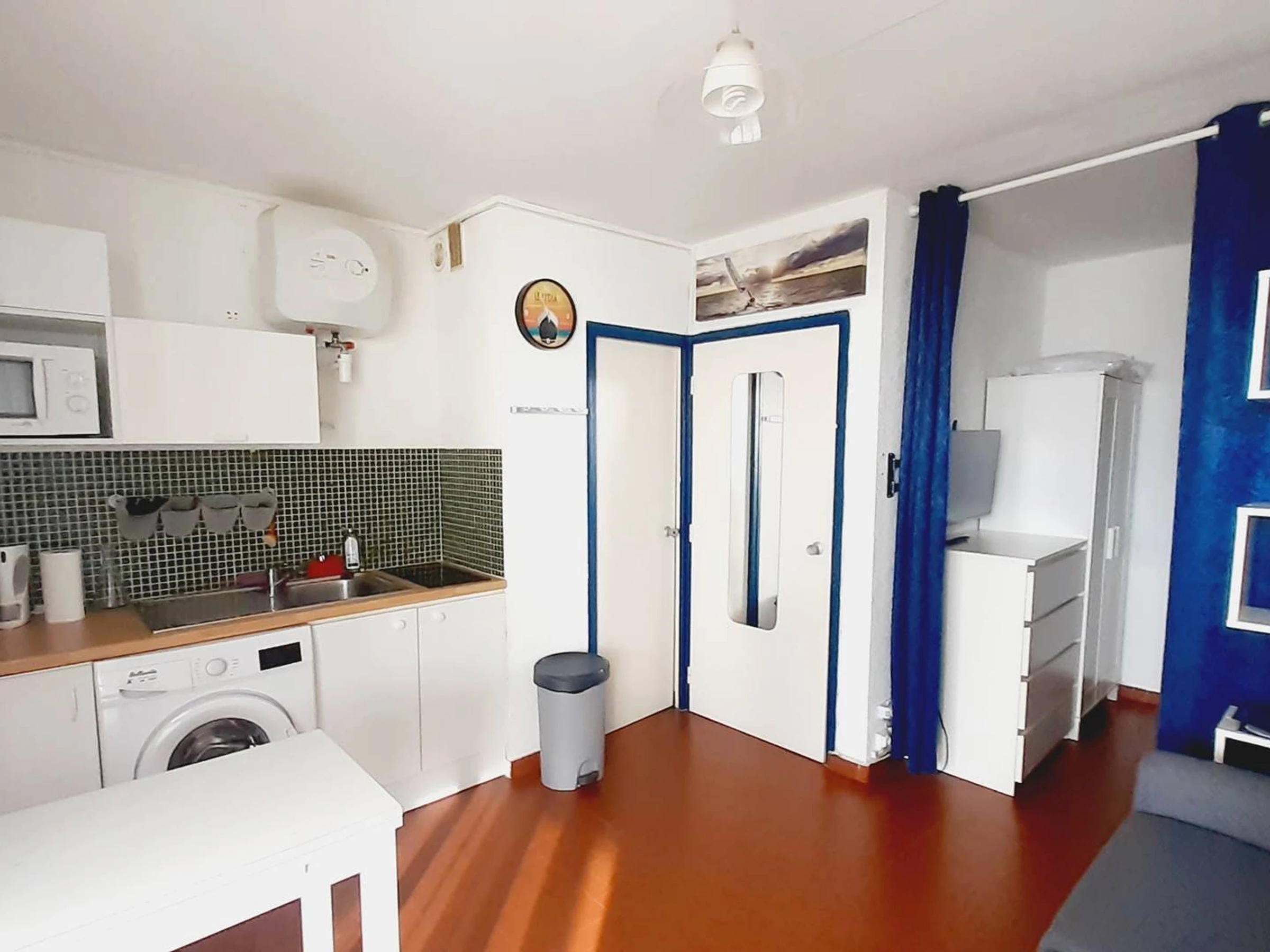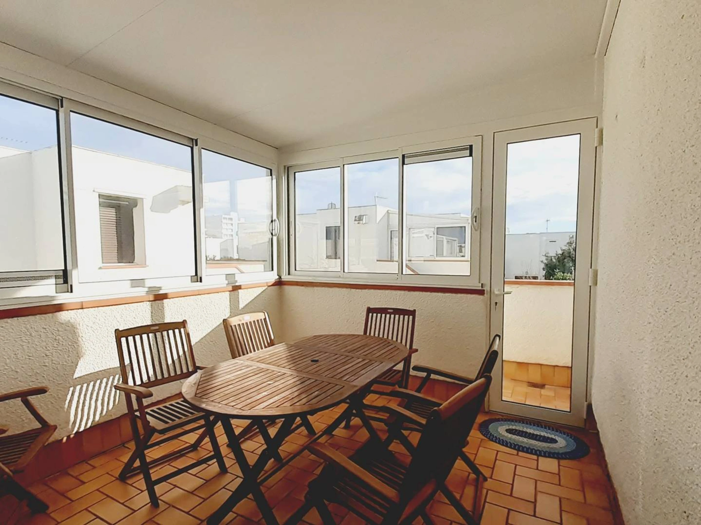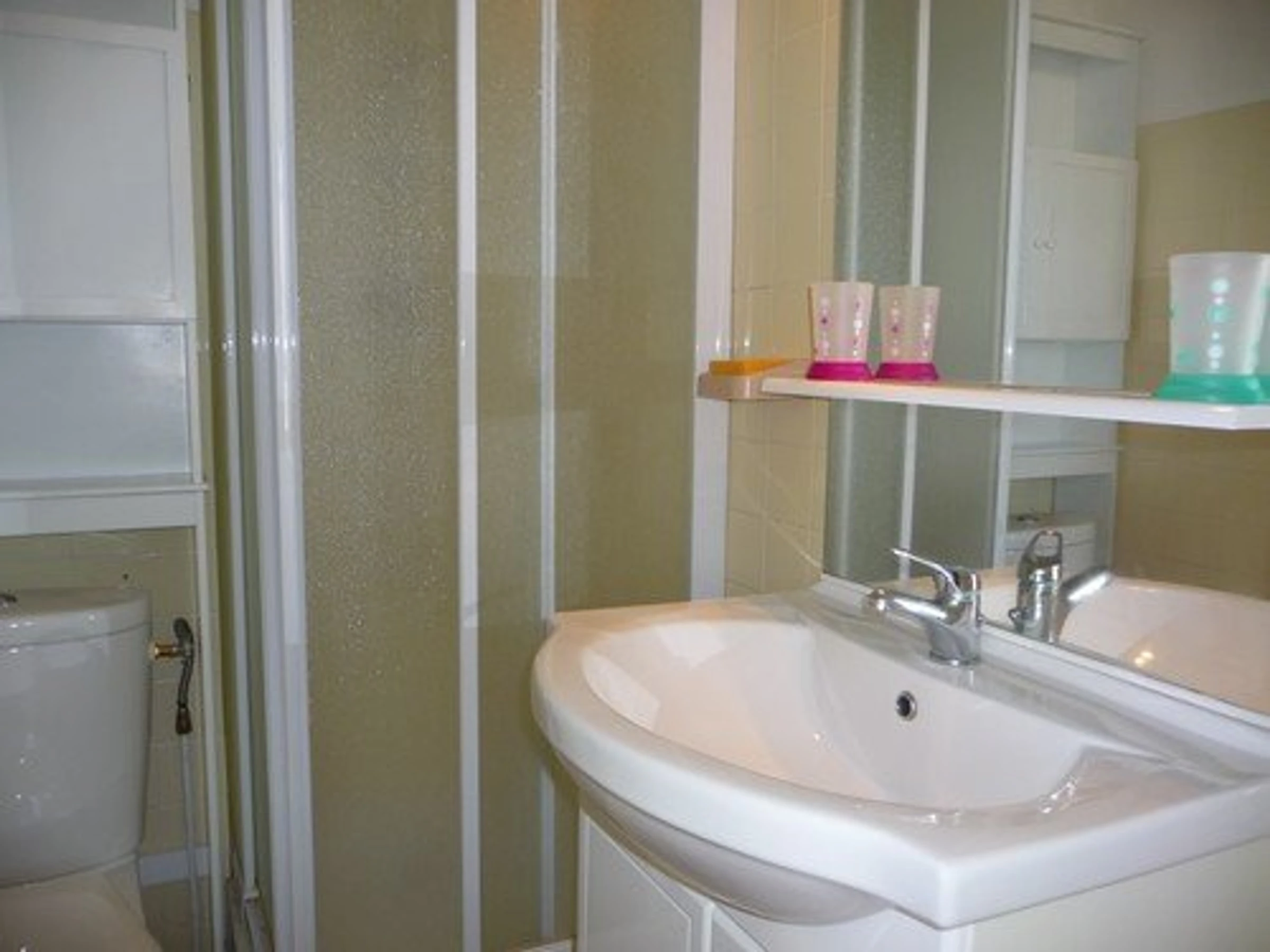 Au 1er et dernier étage : Grand Studio Cabine d'environ 30m² (loggia comprise), aménagement agréable: séjour/salle à manger avec canapé lit convertible en 140 (couchage 2 personnes), coin cuisine équipé (micro-ondes, mini four, frigo/congélateur, lave linge). Une chambre ouverte avec lit en 140 (couchage 2 personnes) et TV. Salle d'eau avec douche et WC. Loggia fermée (baies vitrées coulissantes) équipée pour vos repas. Equipé pour 4 personnes (idéal 2 adultes et 2 enfants).Linge de maison et draps non fournis. Ménage de fin de séjour non inclus, prestation en supplément).