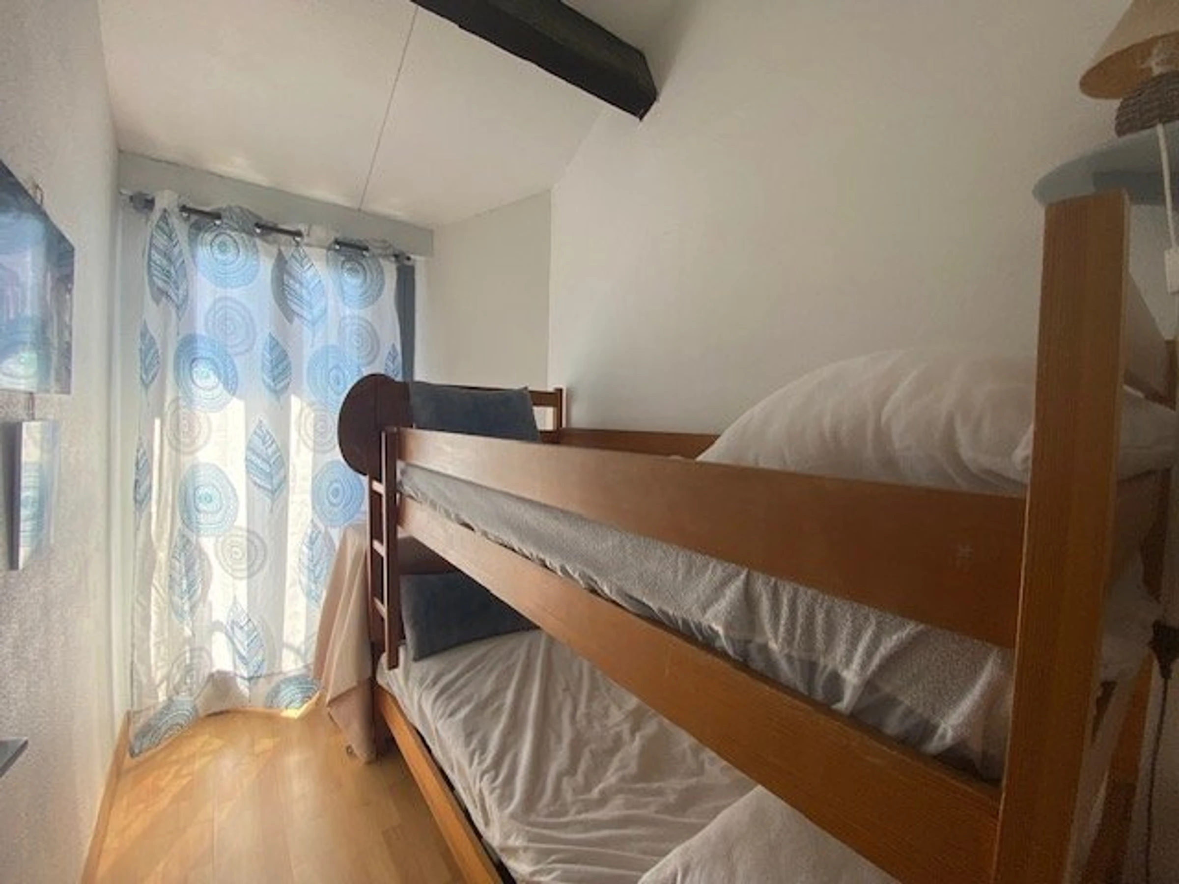 Au 3E étage (sans ascenseur), appartement duplex (38 m²) comprenant : Entrée sur séjour/ salle à manger ( coin repas et TV), cuisine équipée (plaque de cuisson 2 feux, micro onde, mini four, lave-vaisselle, frigo congélateur). Accès balcon avec coin repas et superbe vue sur le lac. Un WC séparés avec lave-main, Lave linge. A l’étage, Cabine avec fenêtre et lits superposés en 80 (couchage 2 enfants). Chambre avec lit en 140 et placards de rangement. Salle d’eau (douche), WC. Equipé pour 4 personnes. Linge de maison et draps non fournis. Ménage de fin de séjour non inclus, prestation en supplément.
