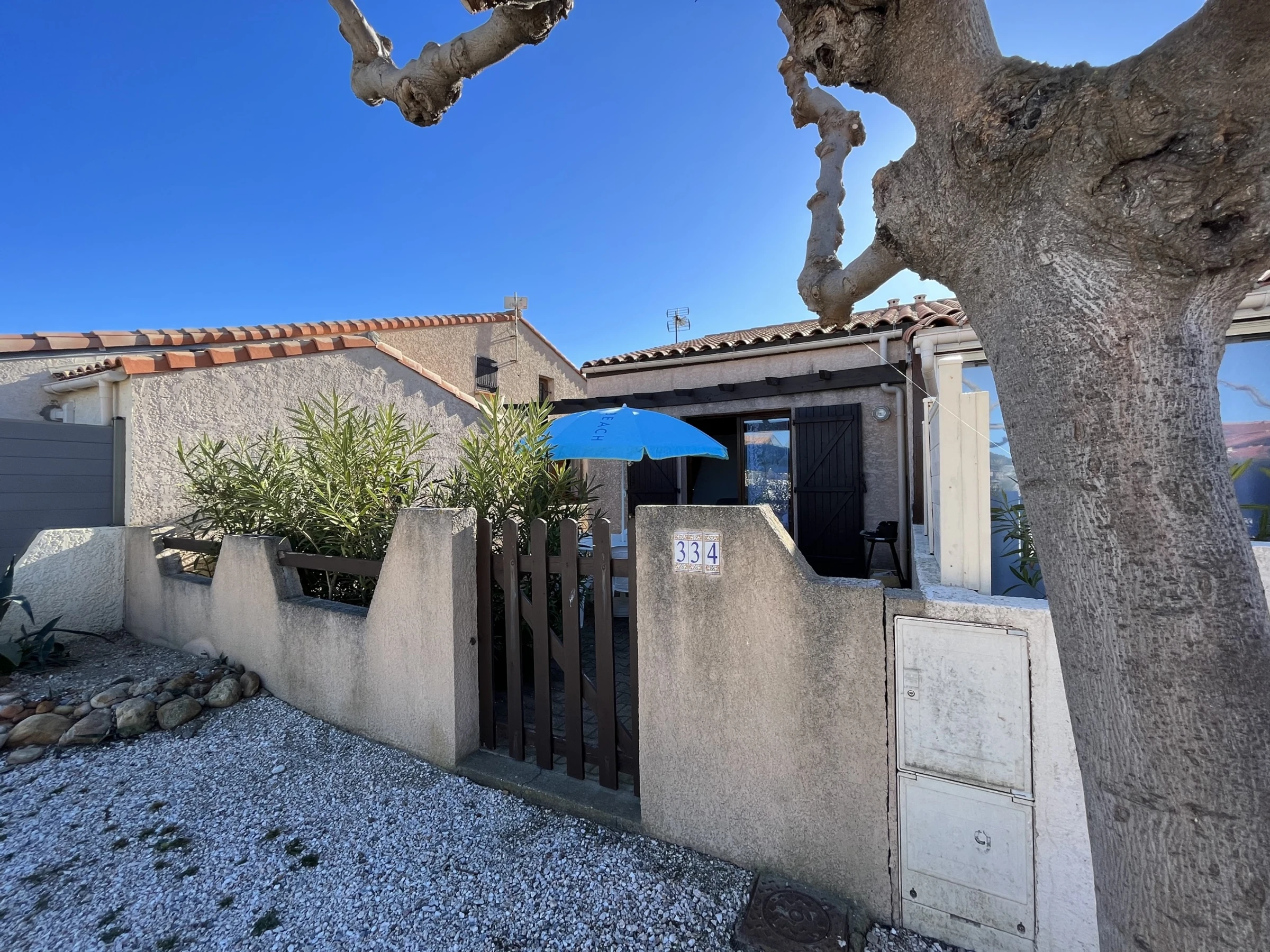 Cette villa offre une pièce à vivre (clic clac), TV, un coin cuisine équipé, une chambre (lit 140), une mezzanine (2 lits en 90), une salle d'eau, wc indépendant, et profitez du salon de jardin installée sur la spacieuse terrasse clôturée.