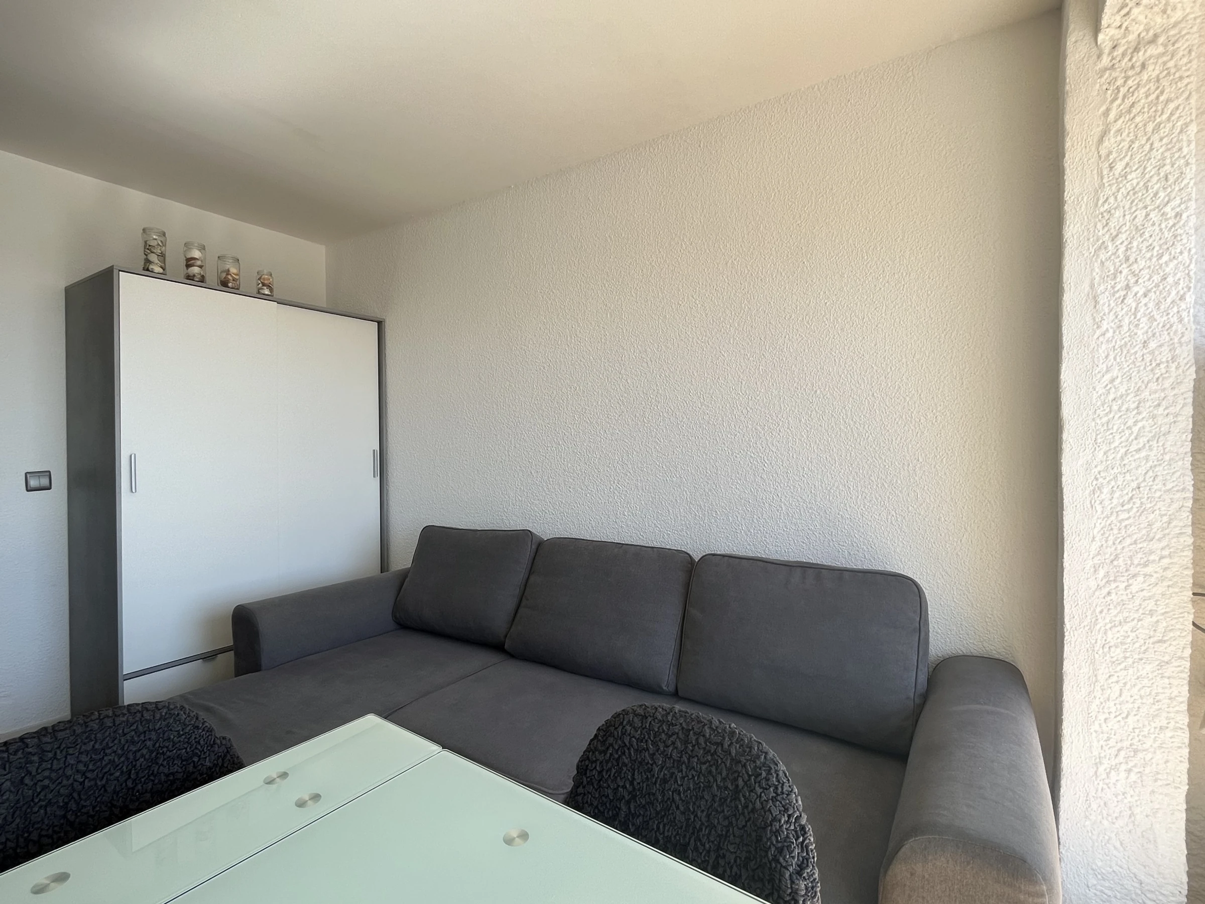 Il offre une pièce à vivre (canapé convertible 160) & climatisation portative, TV, ouvert sur un coin cuisine équipé et un coin repas, une alcôve (lits sup. 80), 1 salle d'eau récente, 1 WC indépendant.