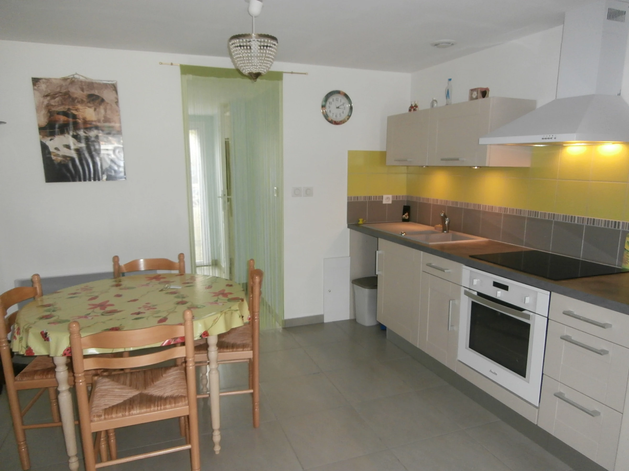 Au Rez-de-Chaussée, séjour spacieux coin repas, TV, coin cuisine équipé,