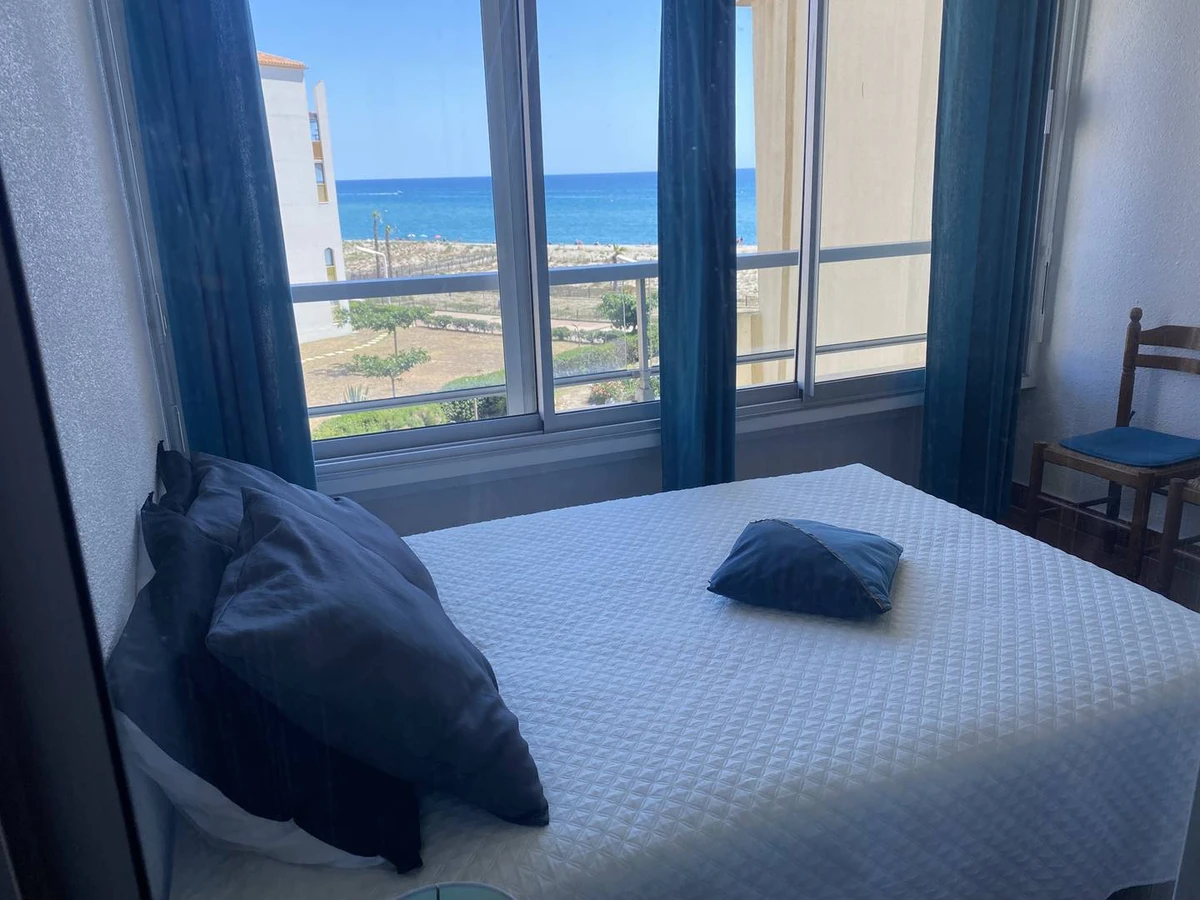 L’appartement Studio + Loggia au 3E étage (ascenseur), Pièce principale avec 1 canapé lit couchage 2 personnes, avec coin repas et TV. 1 loggia fermée vue mer et clic clac en 130 couchages 2 personnes. Une salle d’eau avec WC. Coin Cuisine (2 plaques cuisson, frigo top, micro-onde, Mini four à disposition). Belle Vue mer. Accès direct à la plage. Equipé pour 4 personnes maximum. (Idéal 2 adultes et 2 enfants).