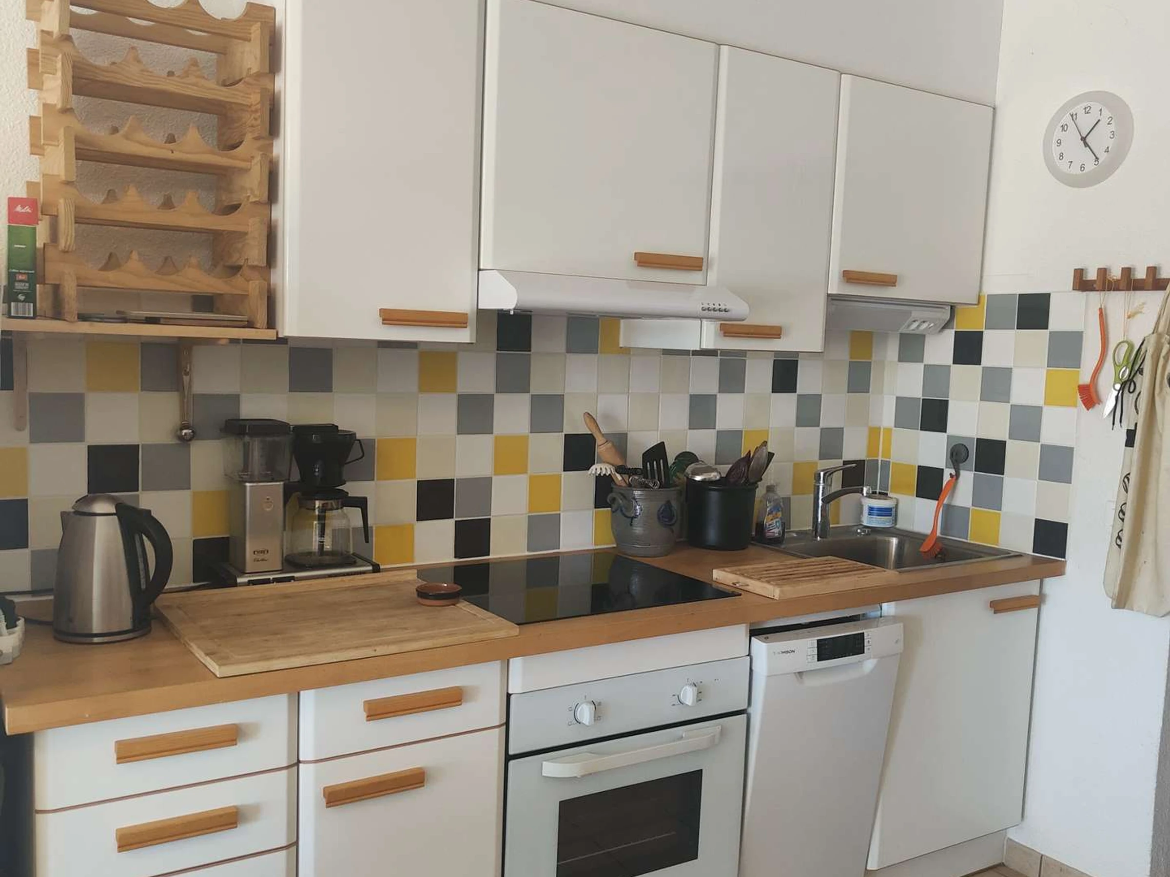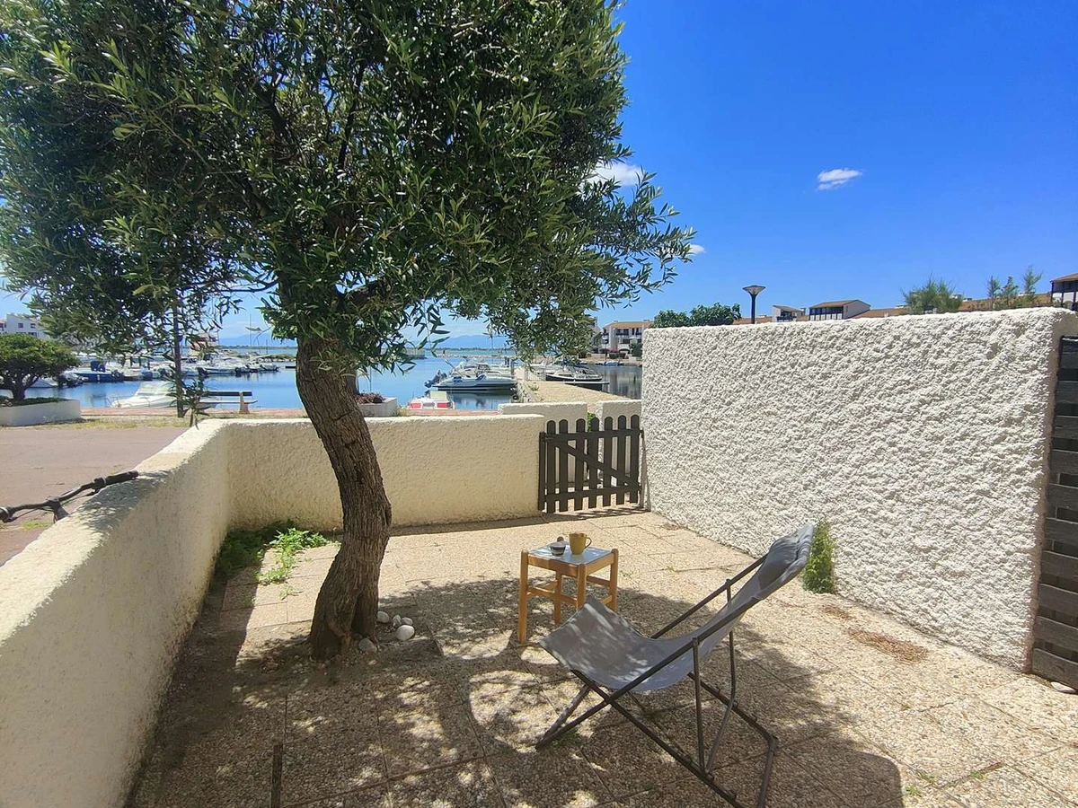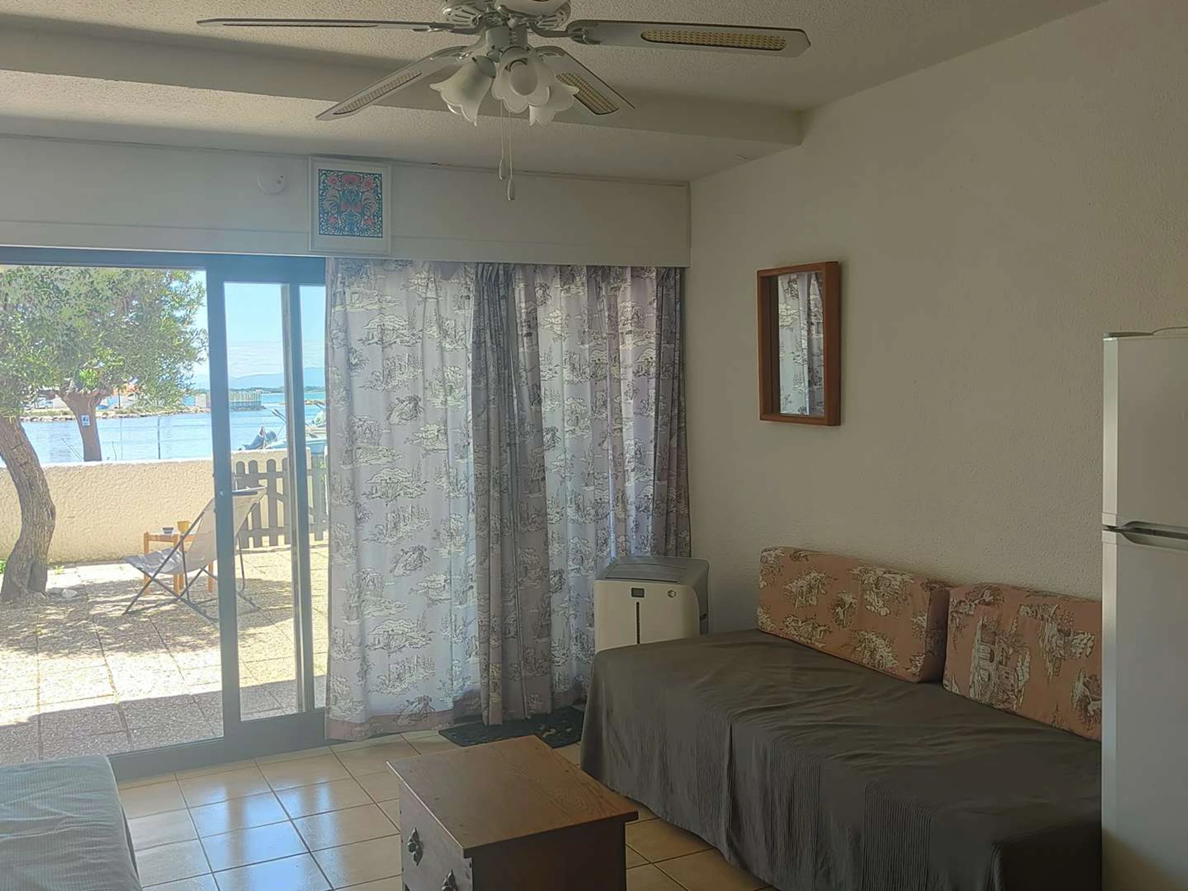 Le logement est composé d'une cuisine ouverte sur un séjour, une chambre, une salle d'eau avec wc. BELLE TERRASSE AVEC VUE SUR LE PORT