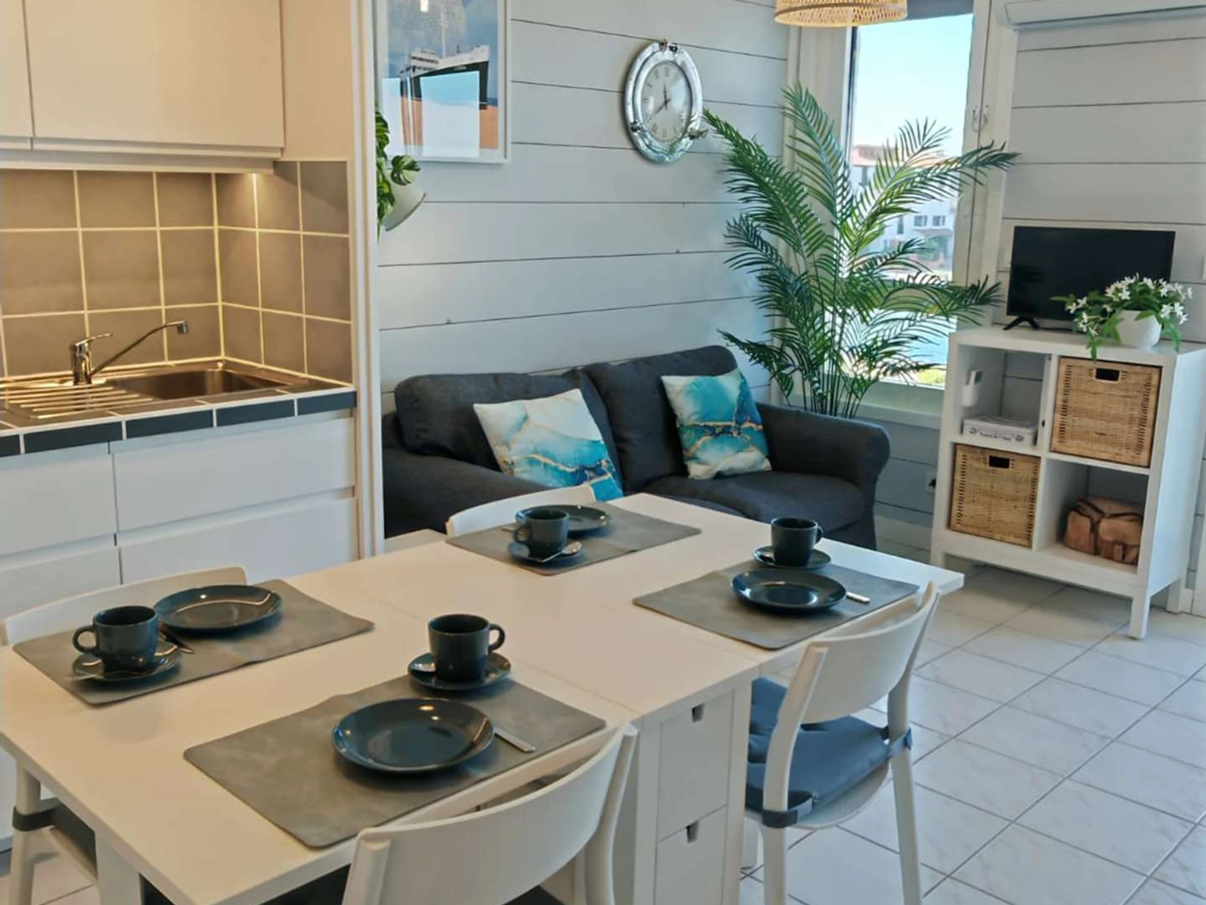 L'appartement est entièrement équipé et est climatisé.