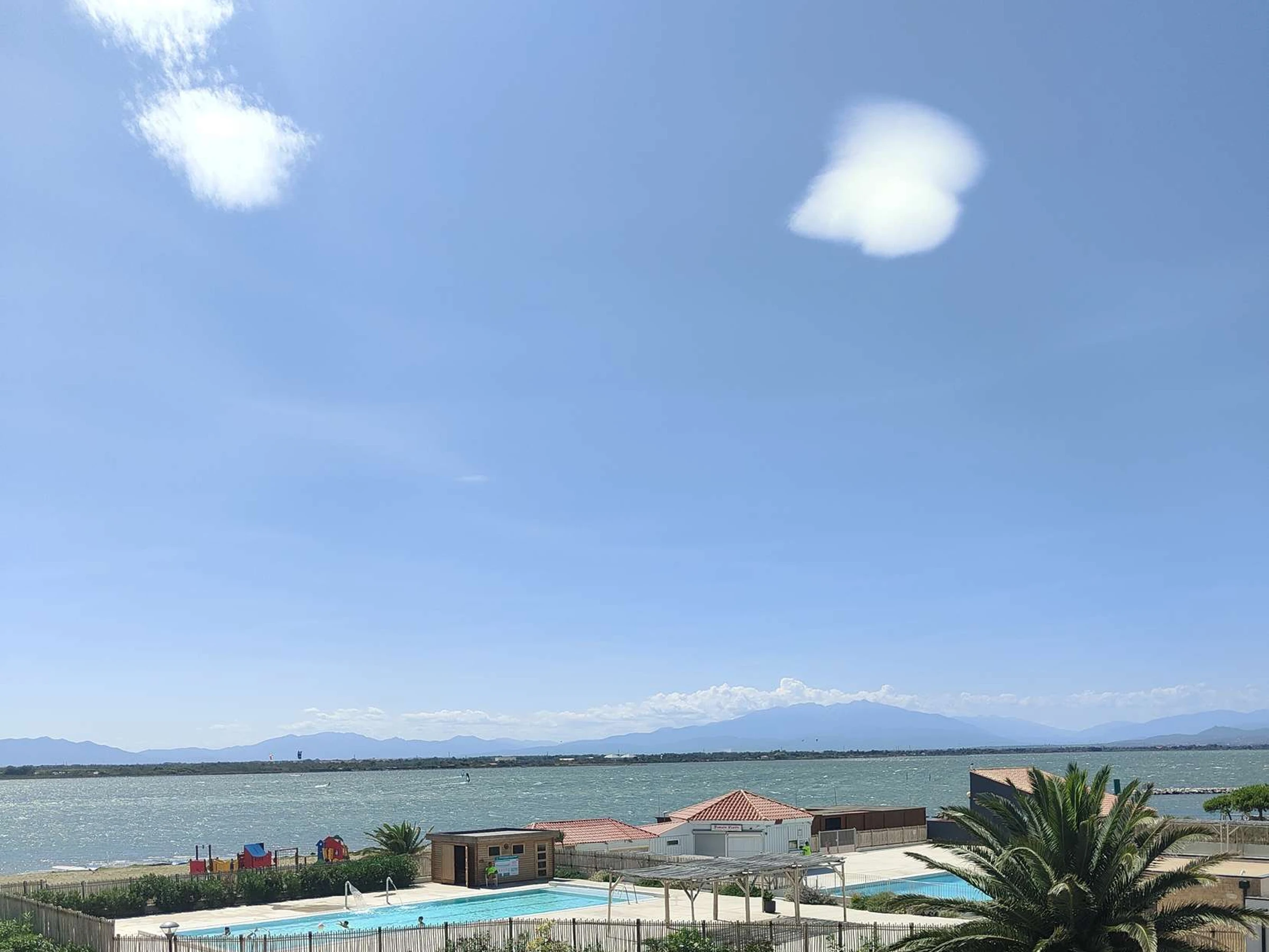 Cet appartement est situé dans la résidence boulevard Martinique et dispose d'une vue exceptionnelle sur le port de la presqu'île de Coudalère, sur les Pyrénées toutes proches et sur le lac marin.